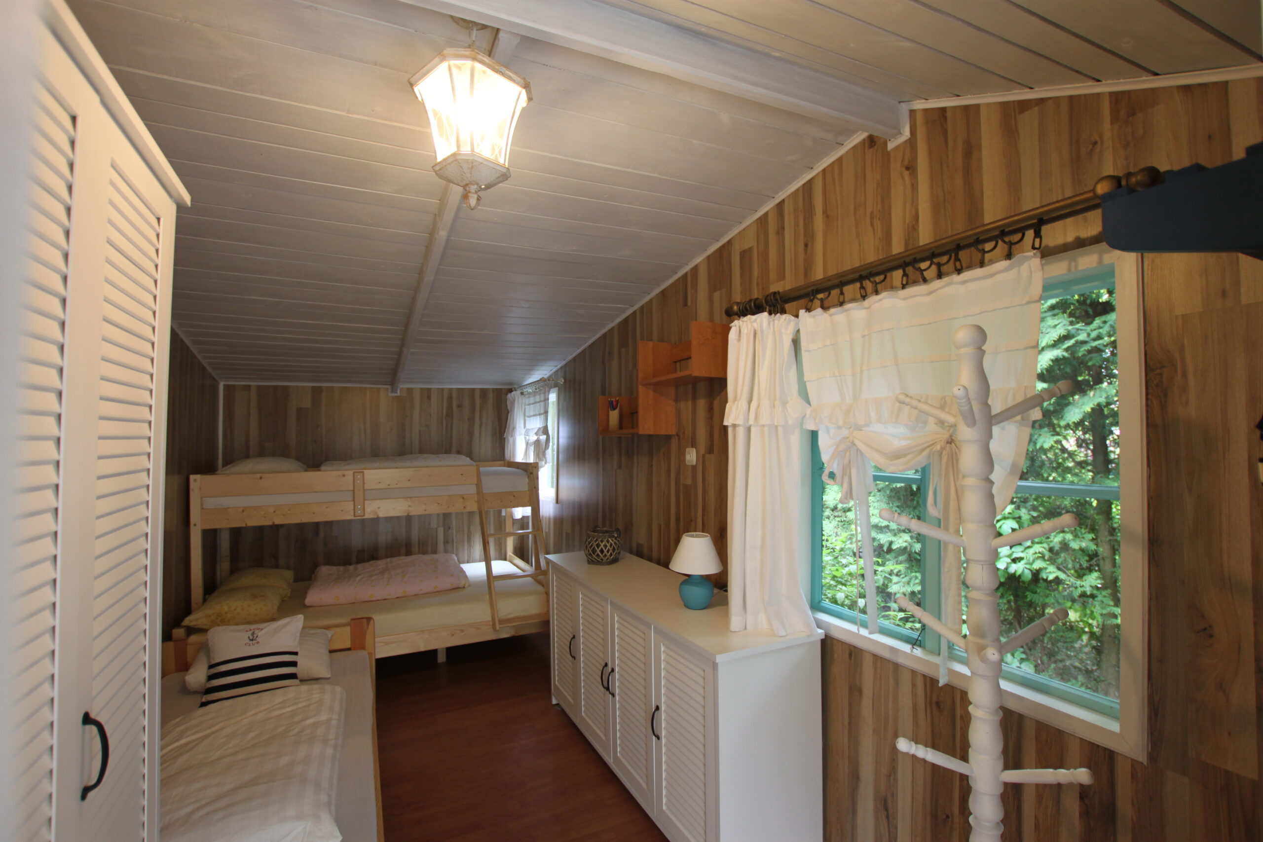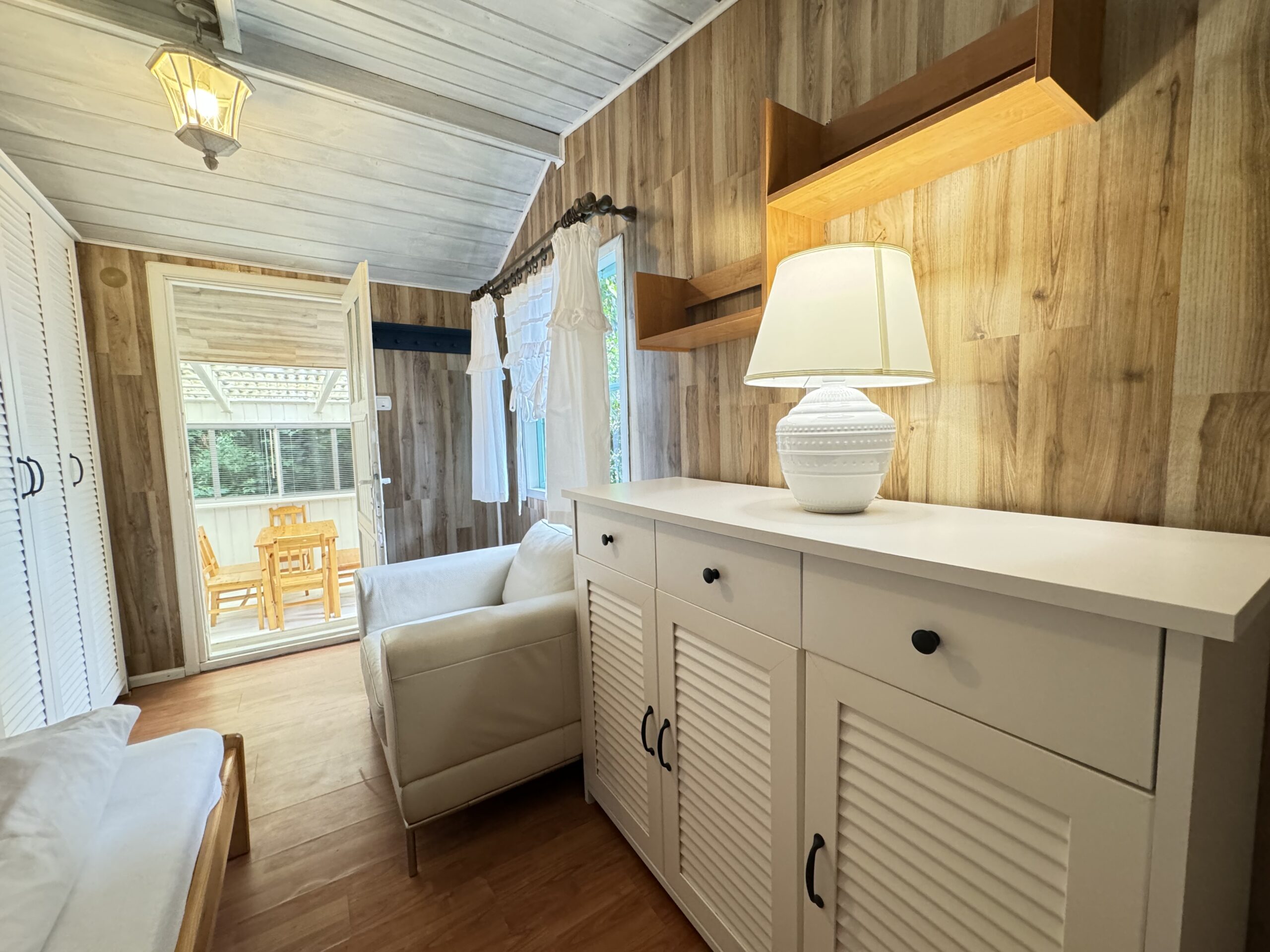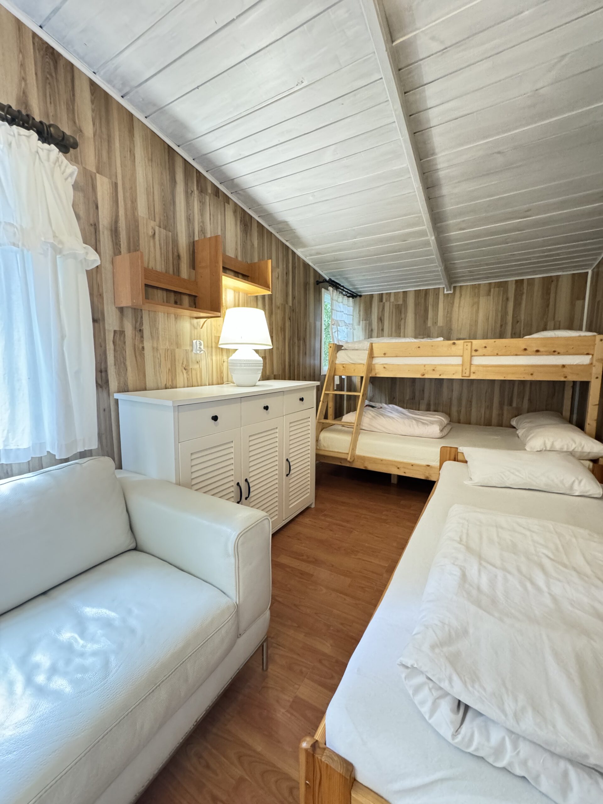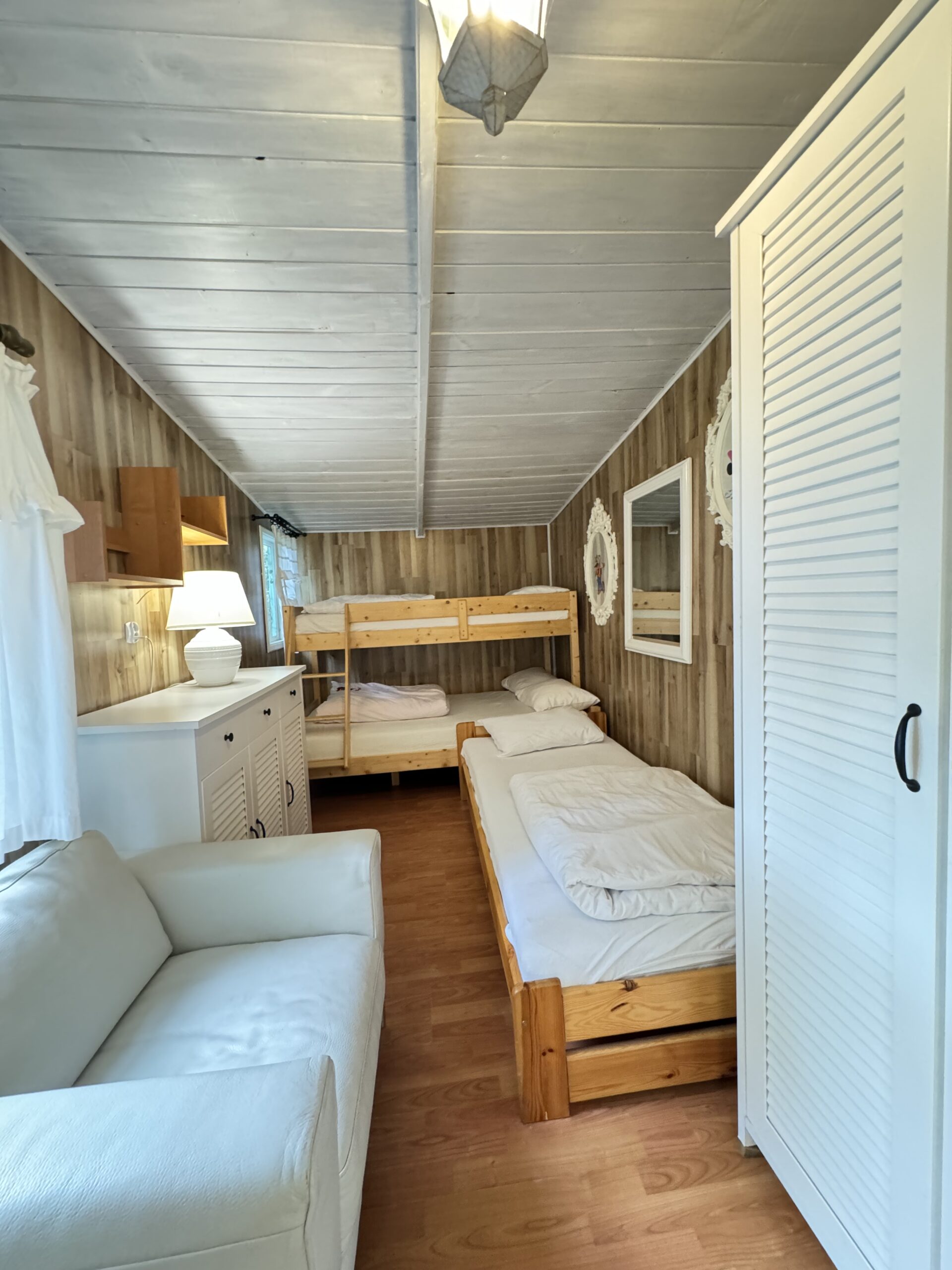 Domek posiada 2 oddzielne sypialnie 4-osobowe, kuchnię, łazienkę z prysznicem oraz WC.