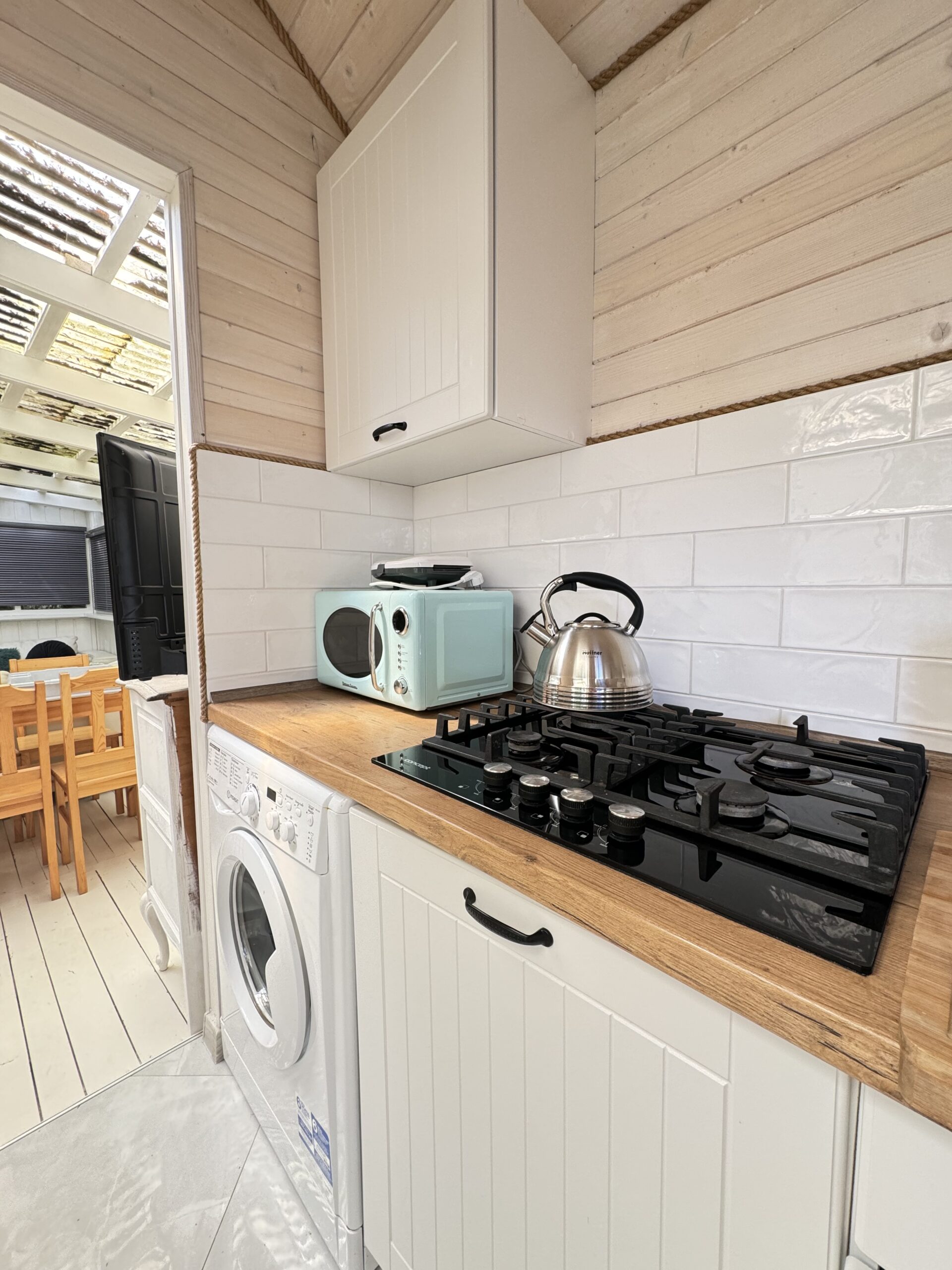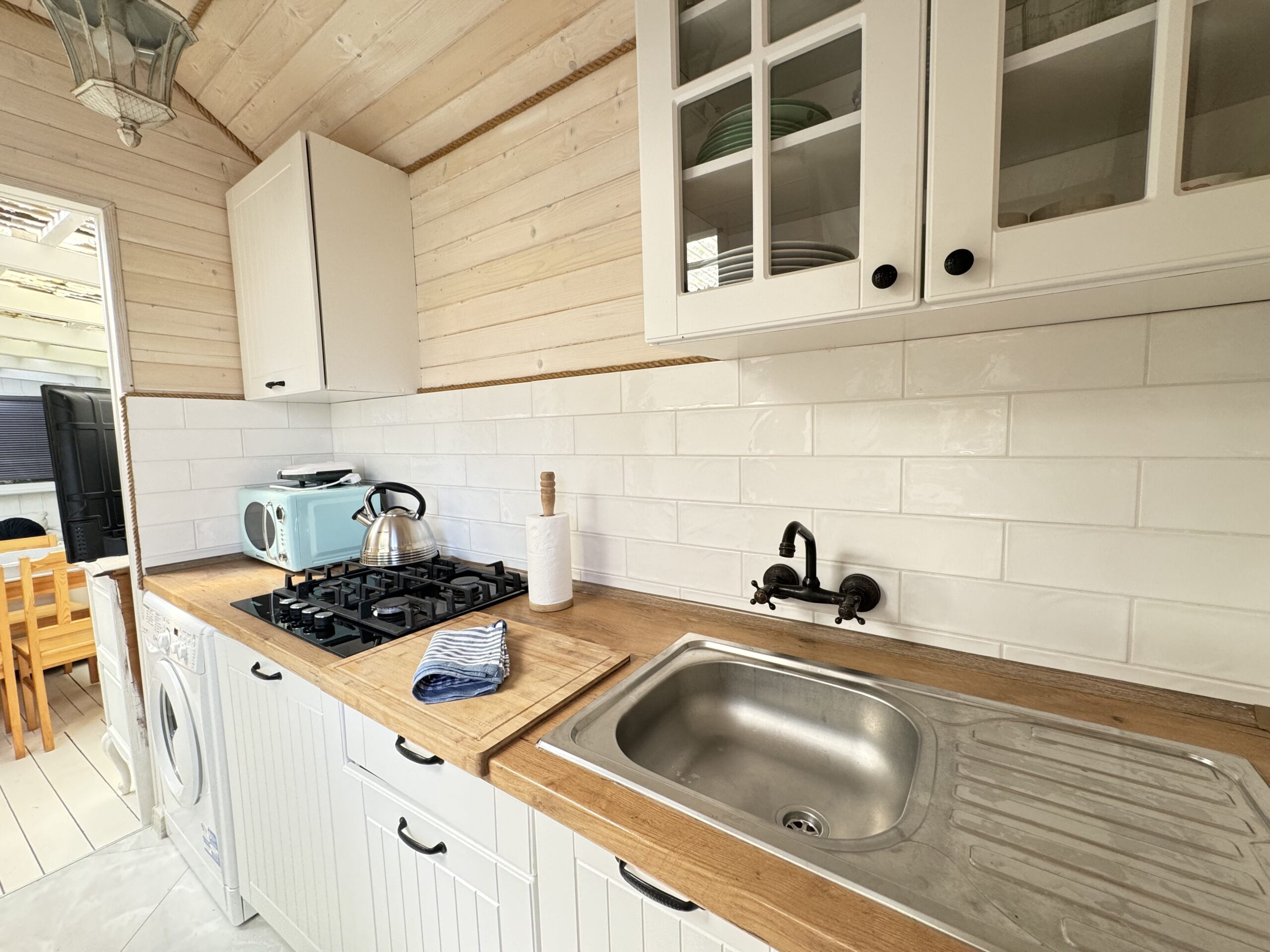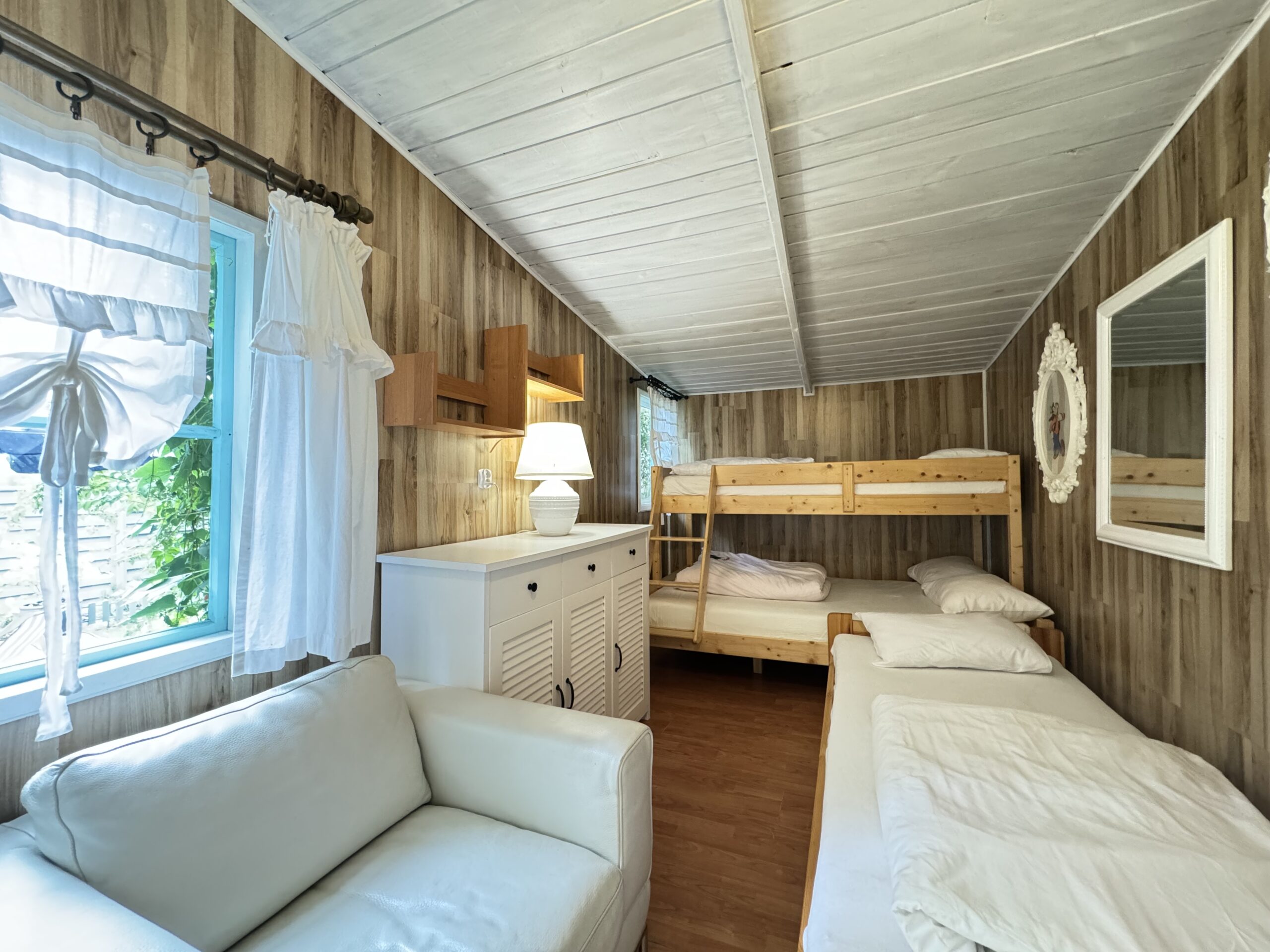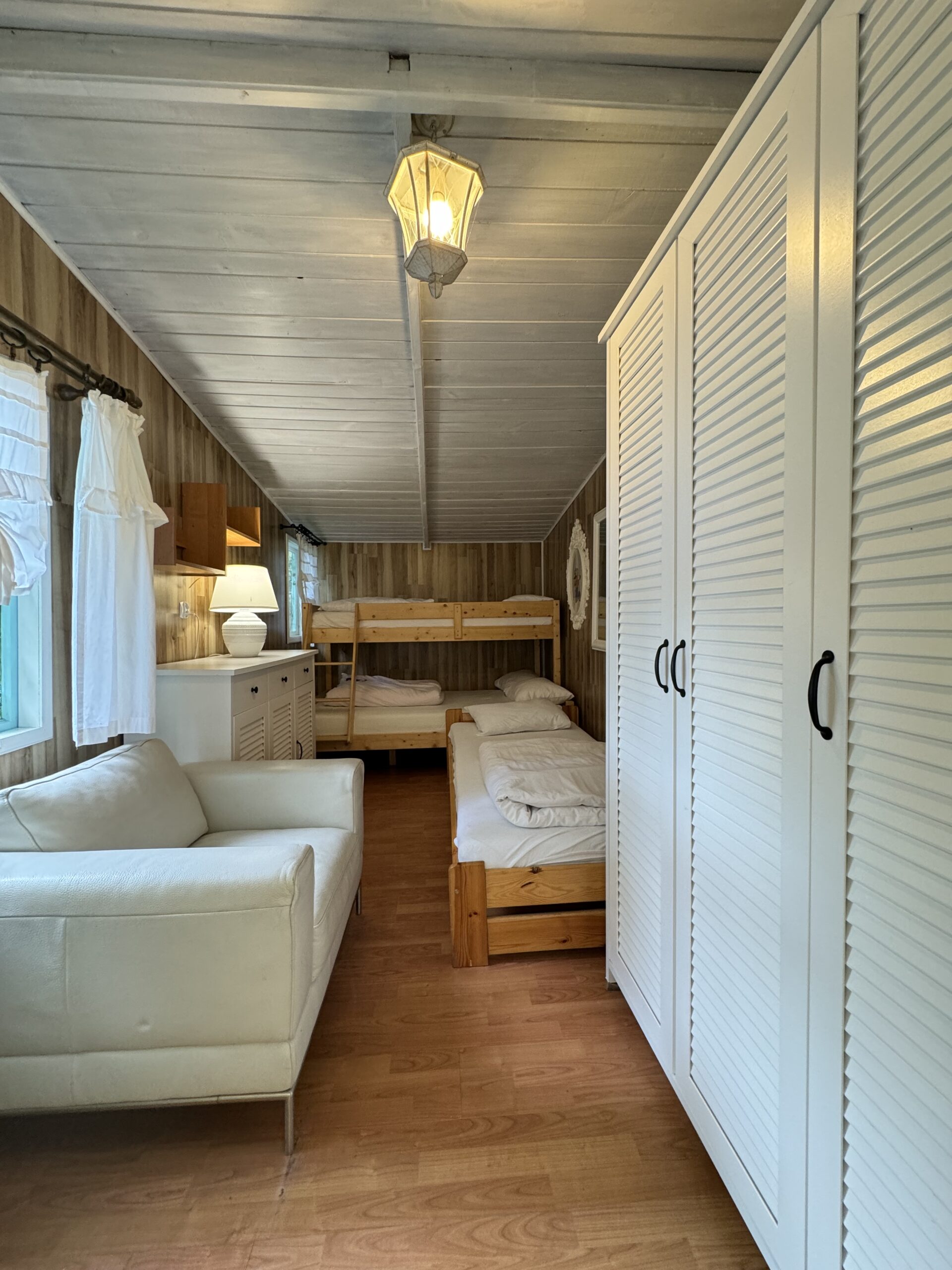 Domek posiada 2 oddzielne sypialnie 4-osobowe, kuchnię, łazienkę z prysznicem oraz WC.
