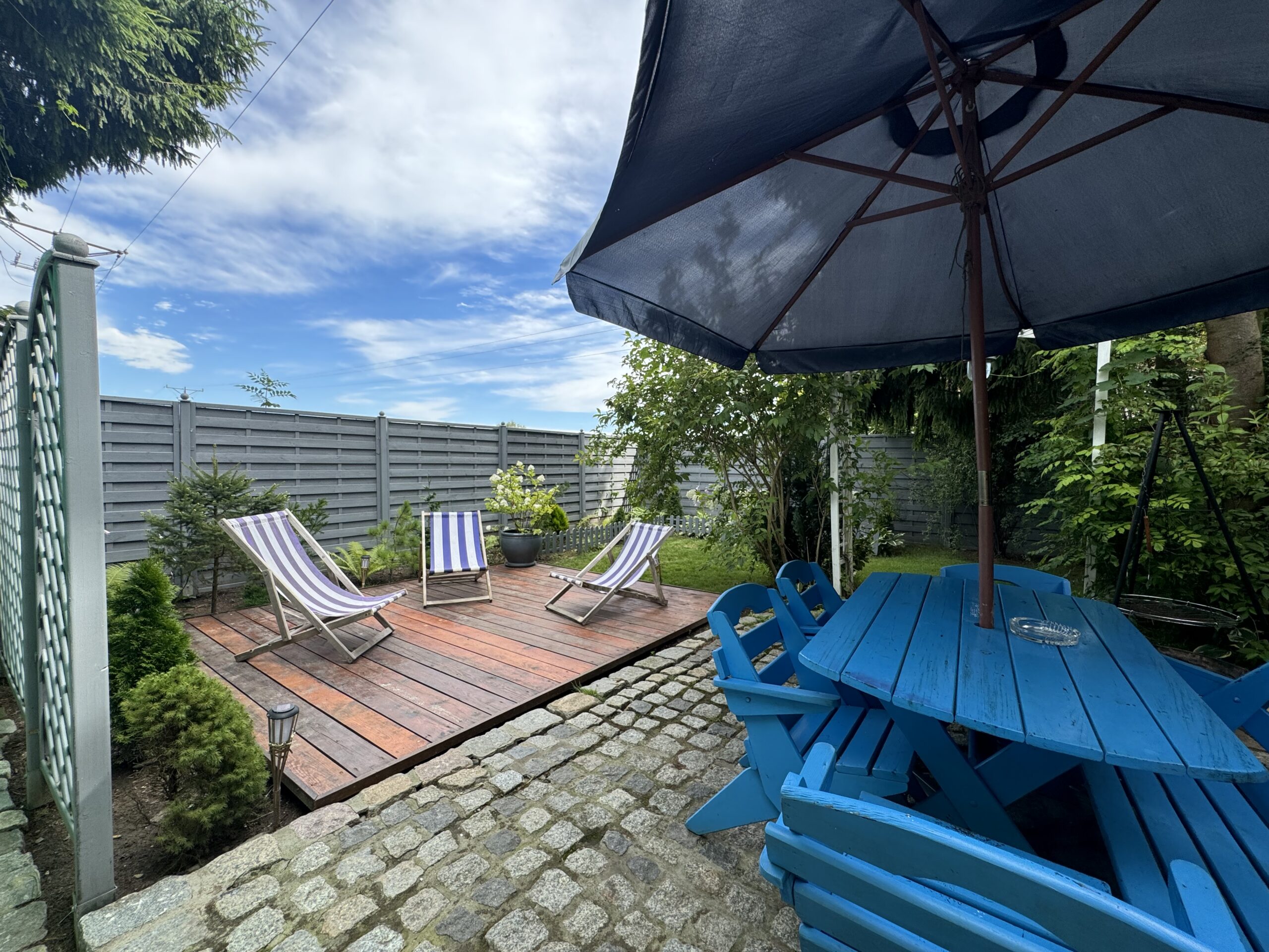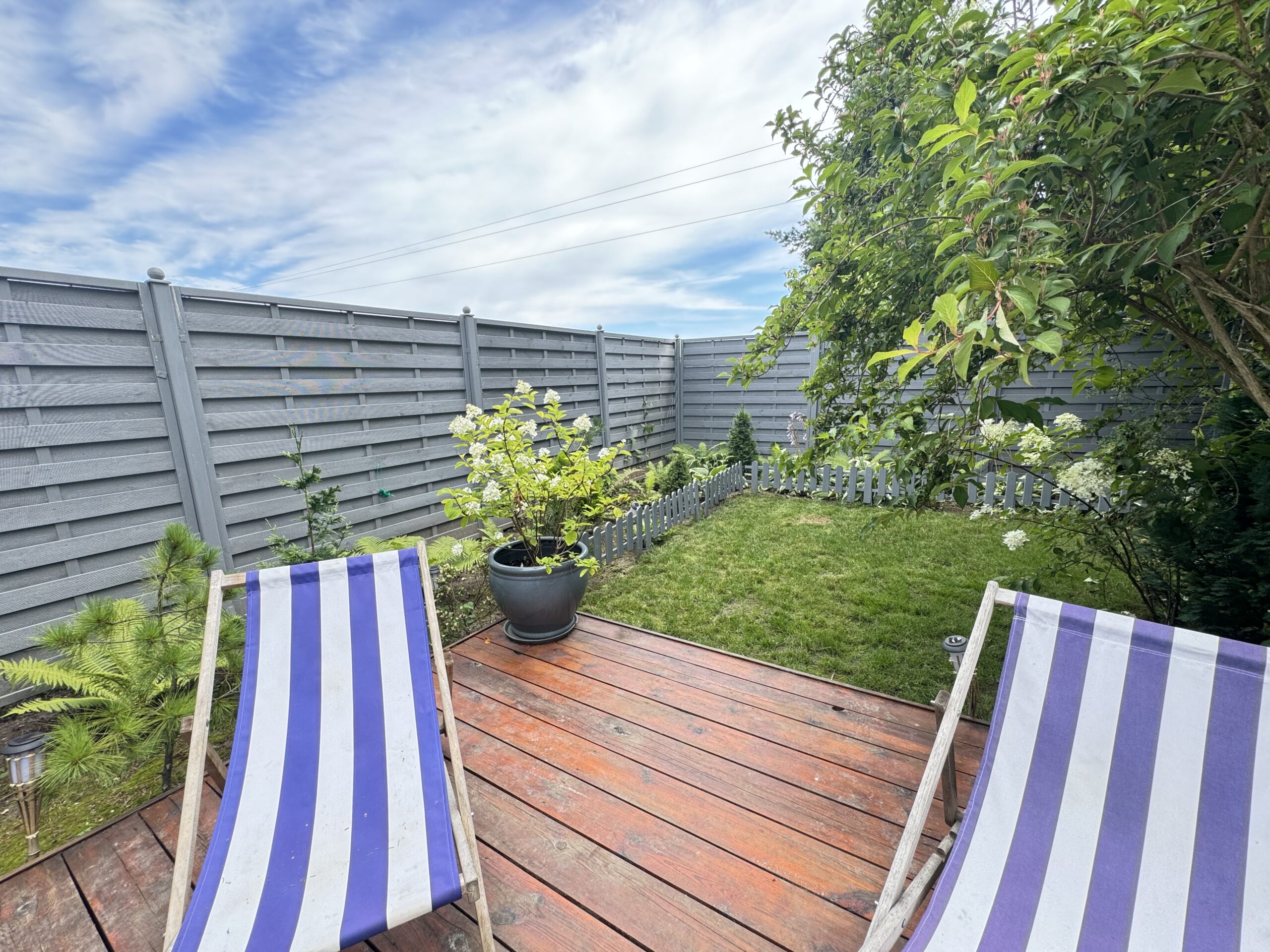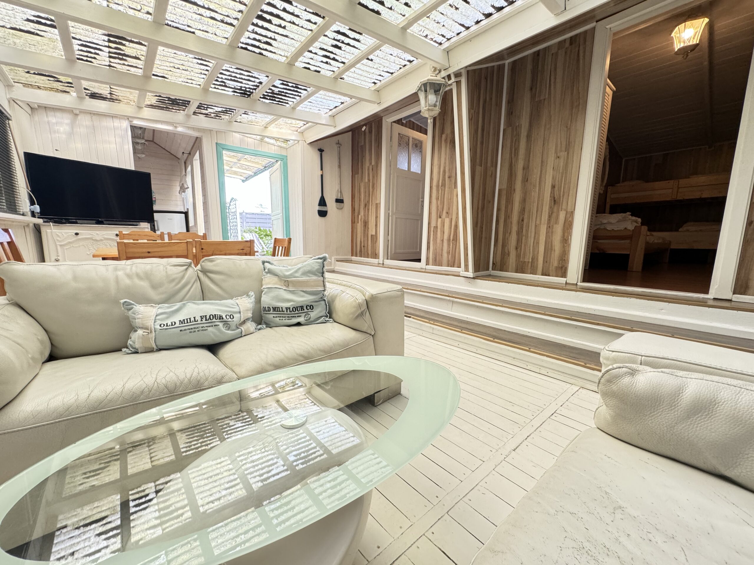 Wyposażony jest w TV, pralkę automatyczną, mikrofalówkę, toster, żelazko z deską do prasowania, grill, suszarka na pranie. Także zestaw plażowy – parawan oraz leżaki.