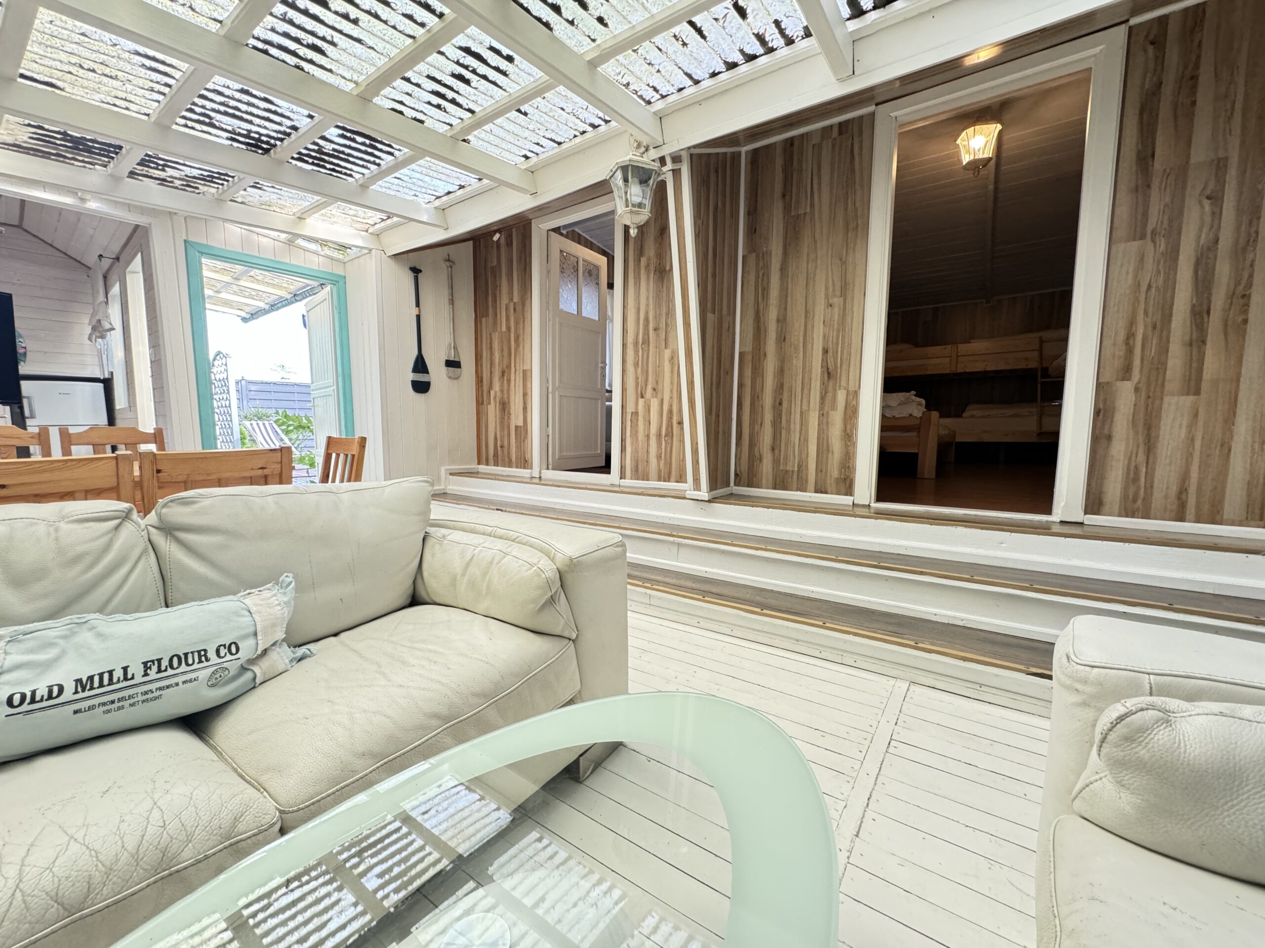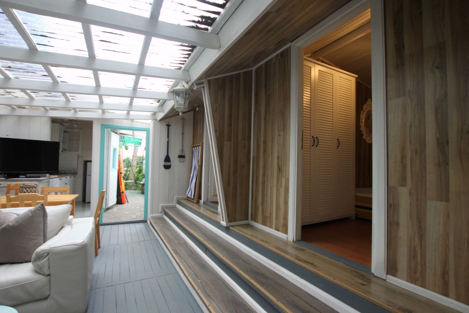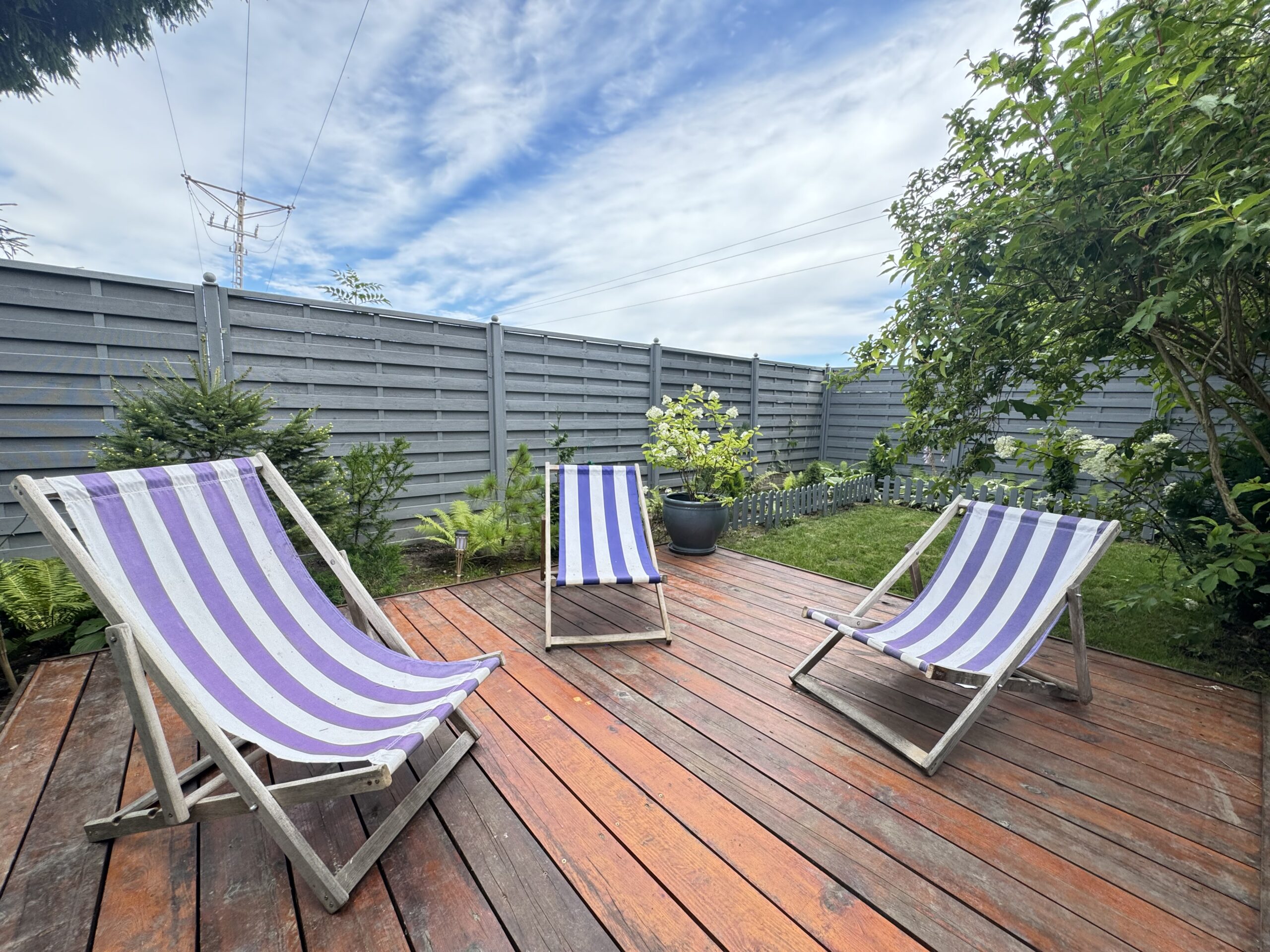 Wyposażony jest w TV, pralkę automatyczną, mikrofalówkę, toster, żelazko z deską do prasowania, grill, suszarka na pranie. Także zestaw plażowy – parawan oraz leżaki.