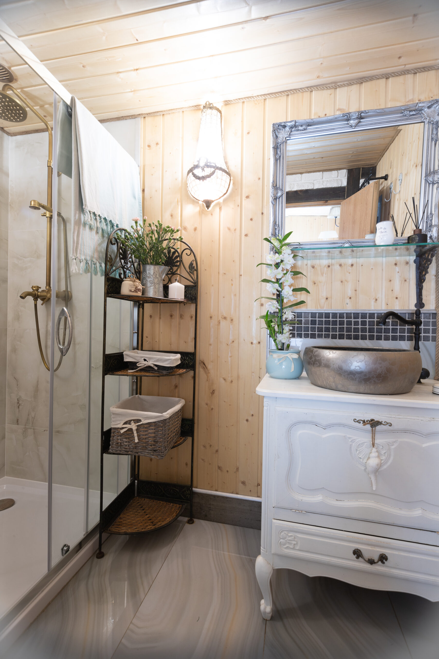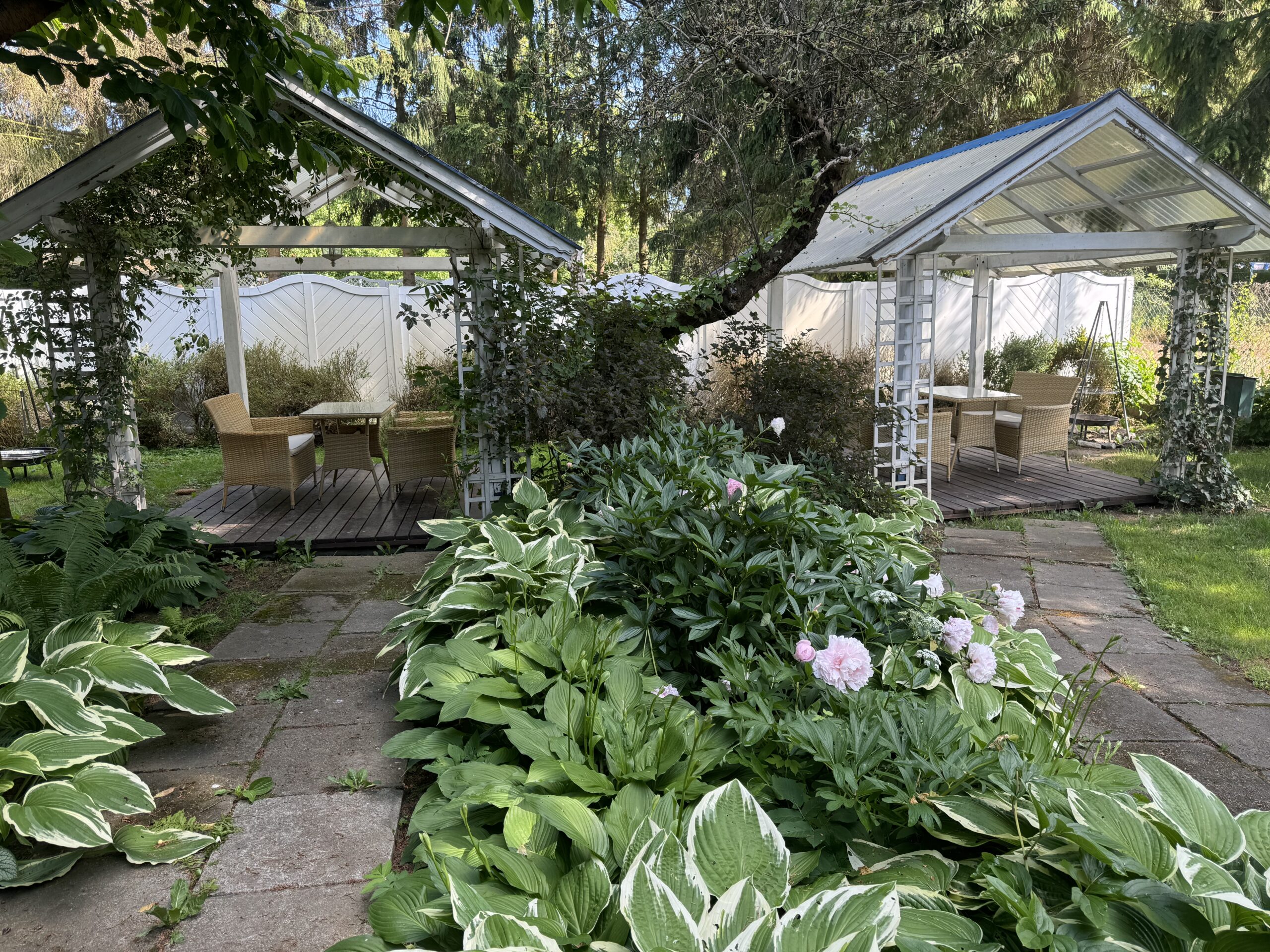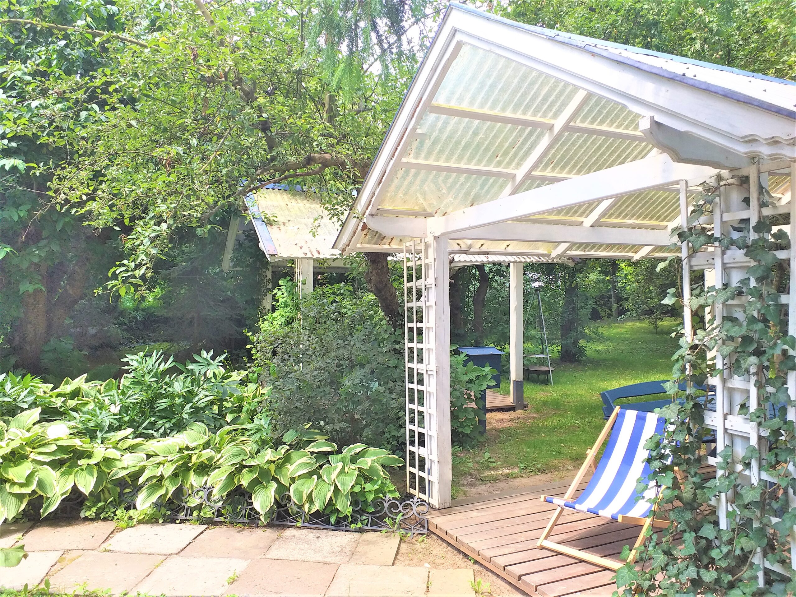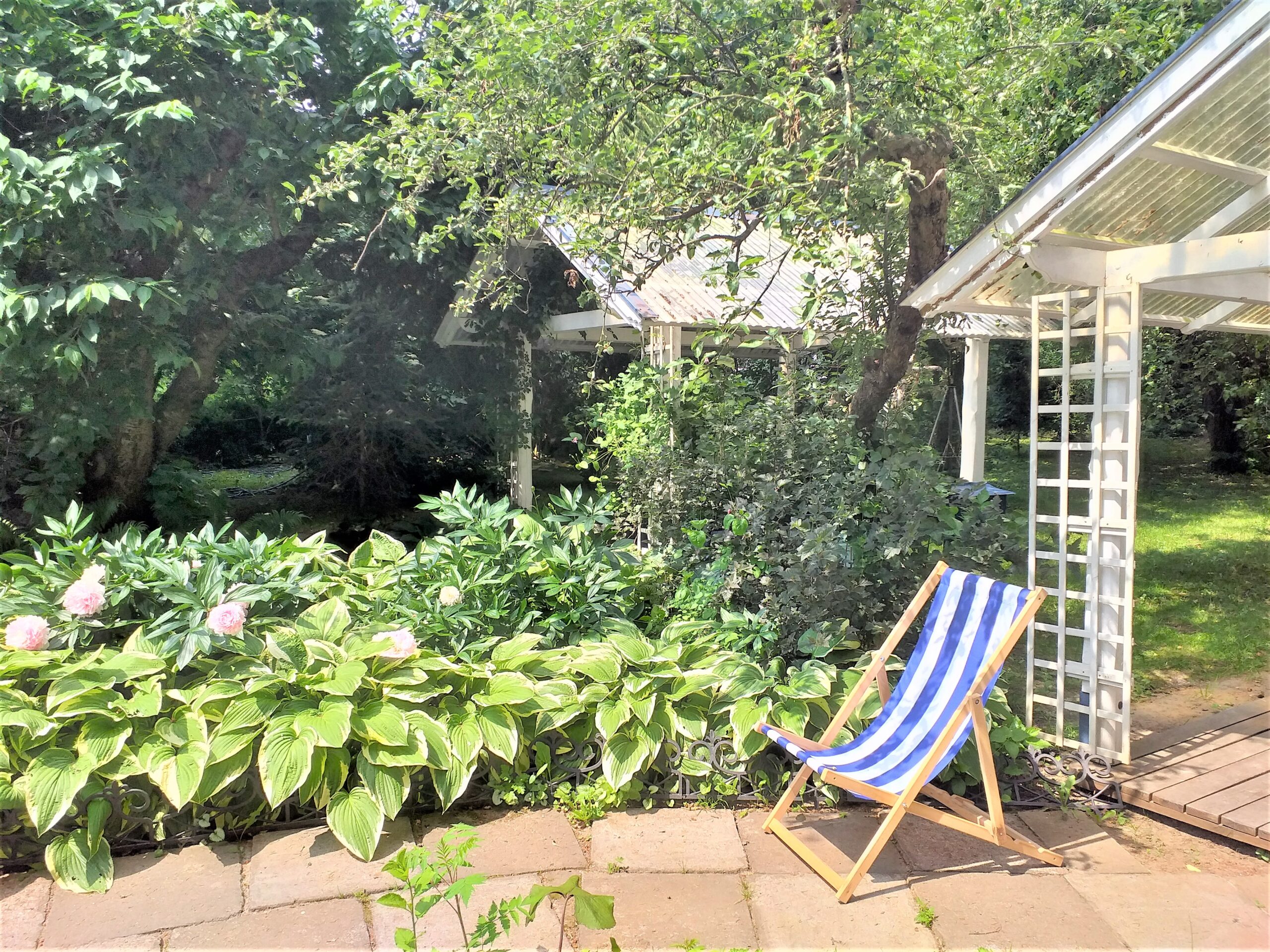 Aneks kuchenny w pełni wyposażony. Łazienka z prysznicem, WC, TV, grill. Dla każdej części dodatkowa altanka pełniąca rolę saloniku do dziennego pobytu i grillowania. Domek drewniany osadzony w starym sadzie niedostępnym dla innych gości, co zapewnia dużo prywatności.