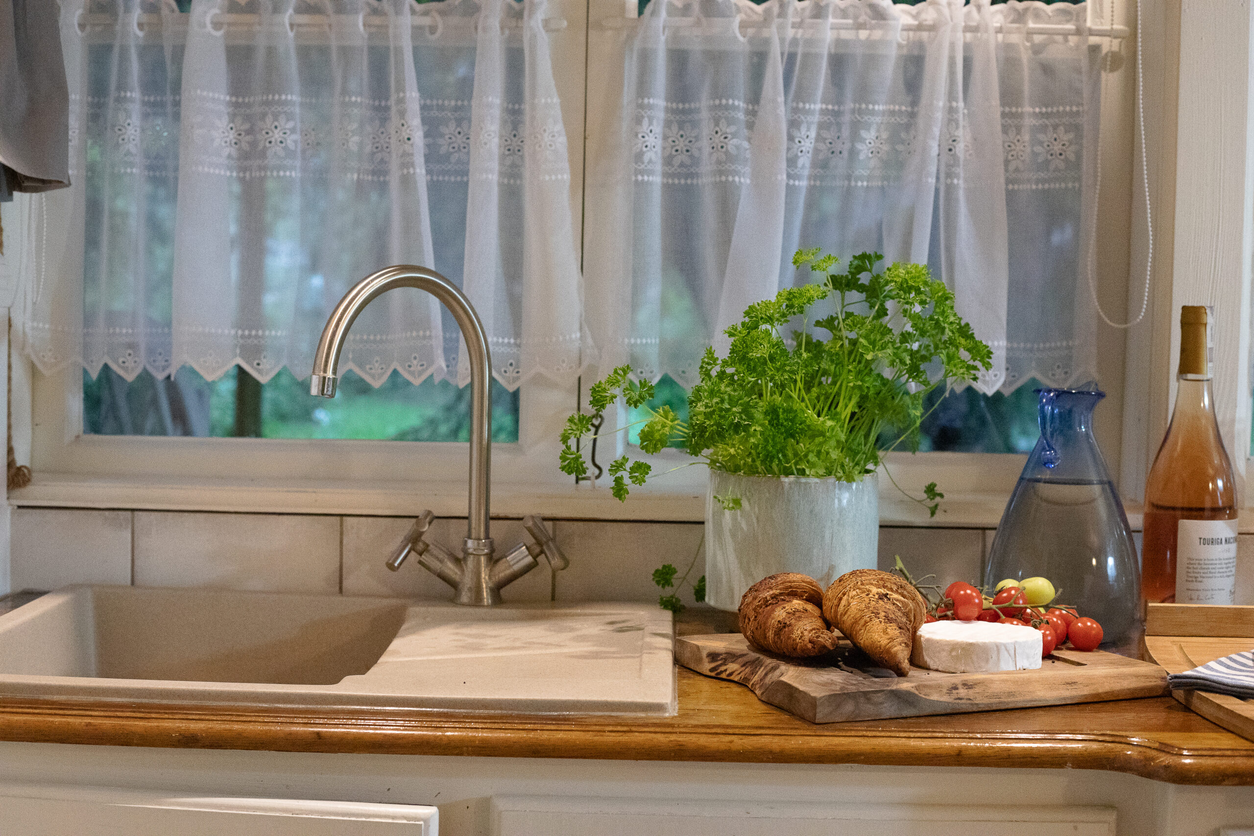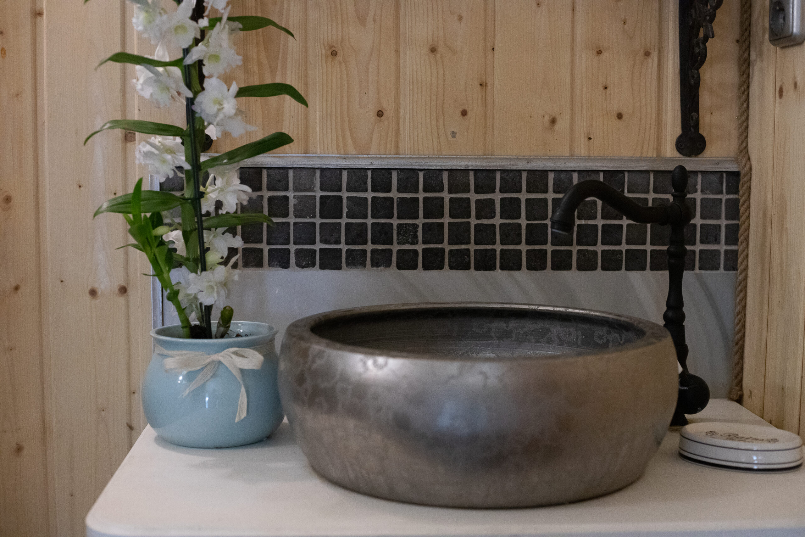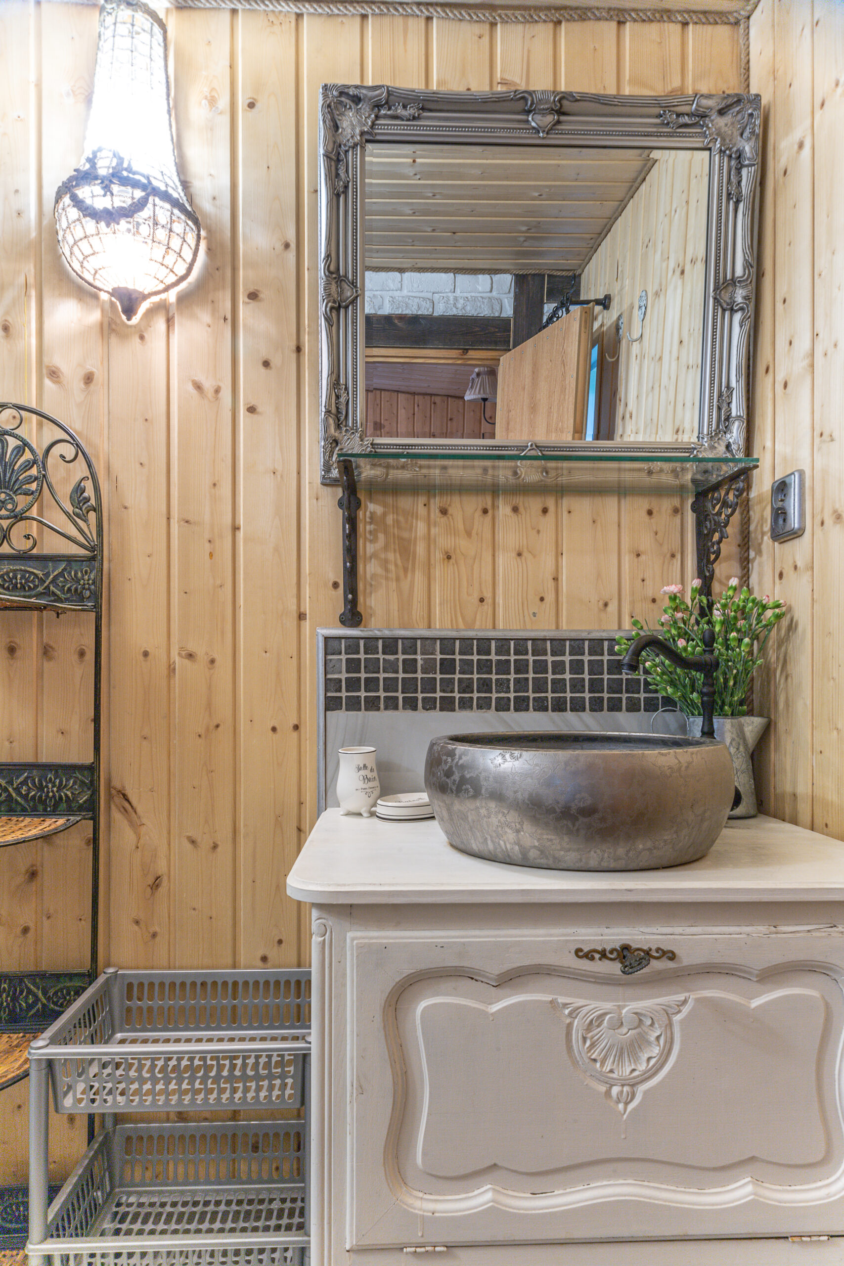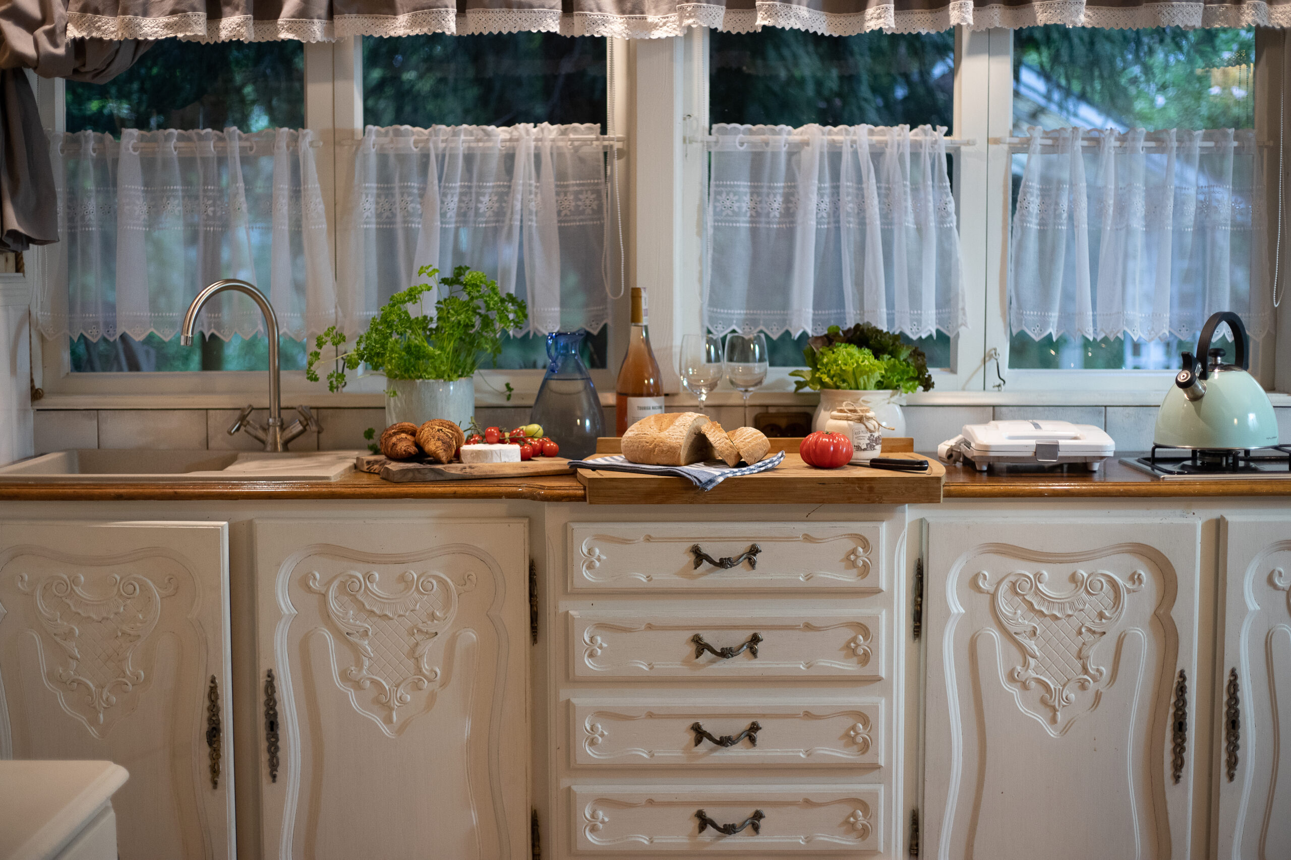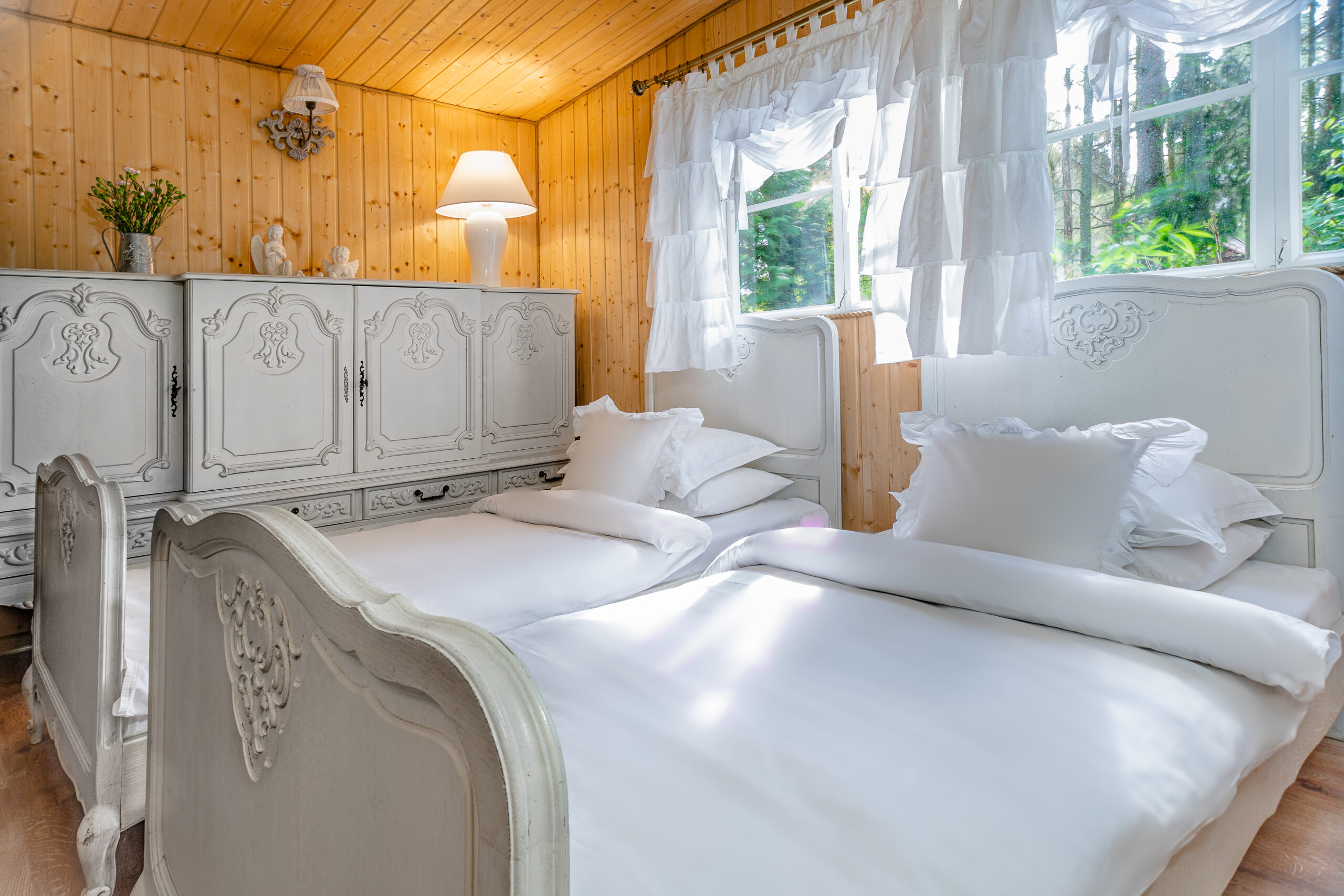 Aneks kuchenny w pełni wyposażony. Łazienka z prysznicem, WC, TV, grill. Dla każdej części dodatkowa altanka pełniąca rolę saloniku do dziennego pobytu i grillowania. Domek drewniany osadzony w starym sadzie niedostępnym dla innych gości, co zapewnia dużo prywatności.