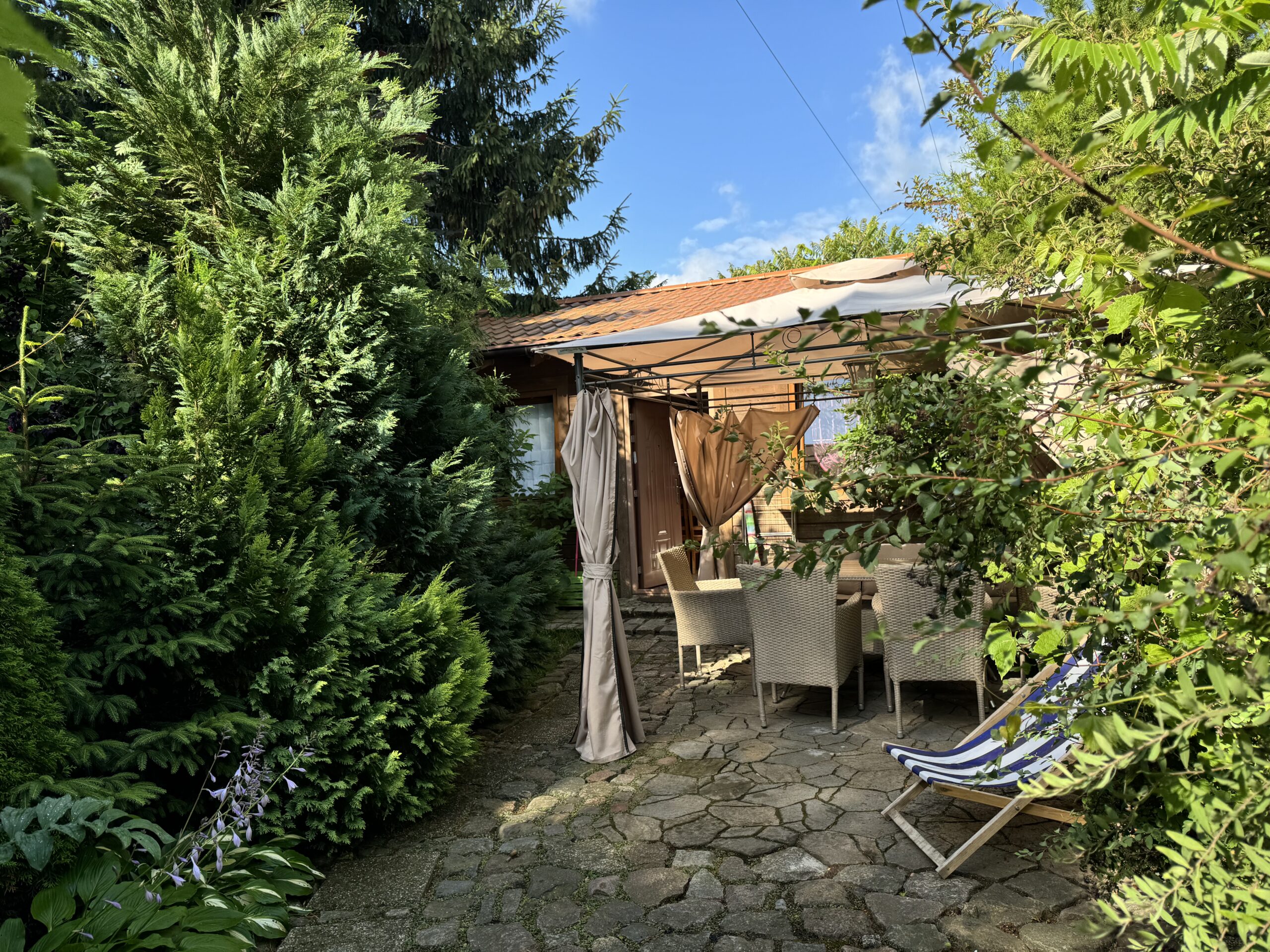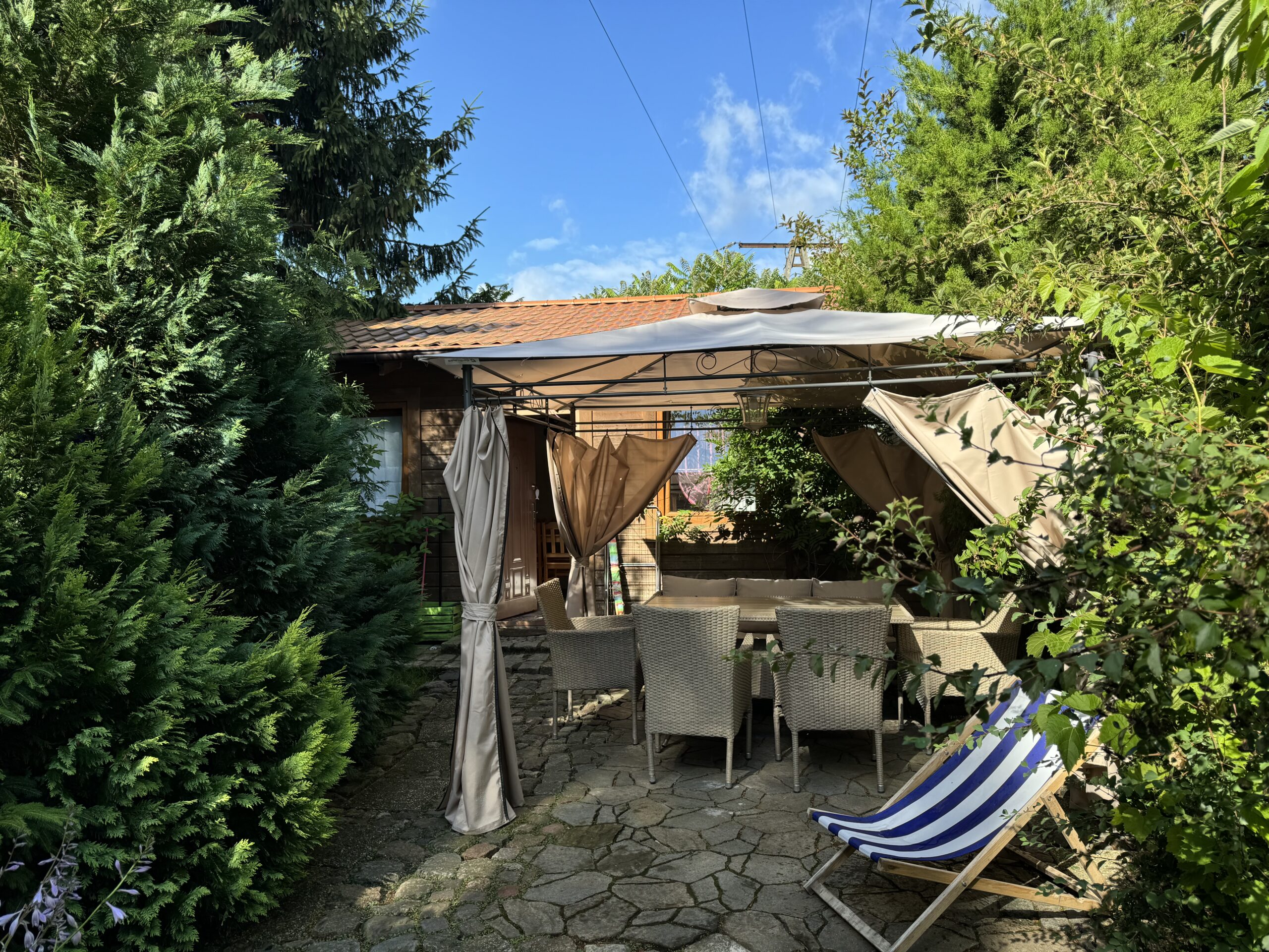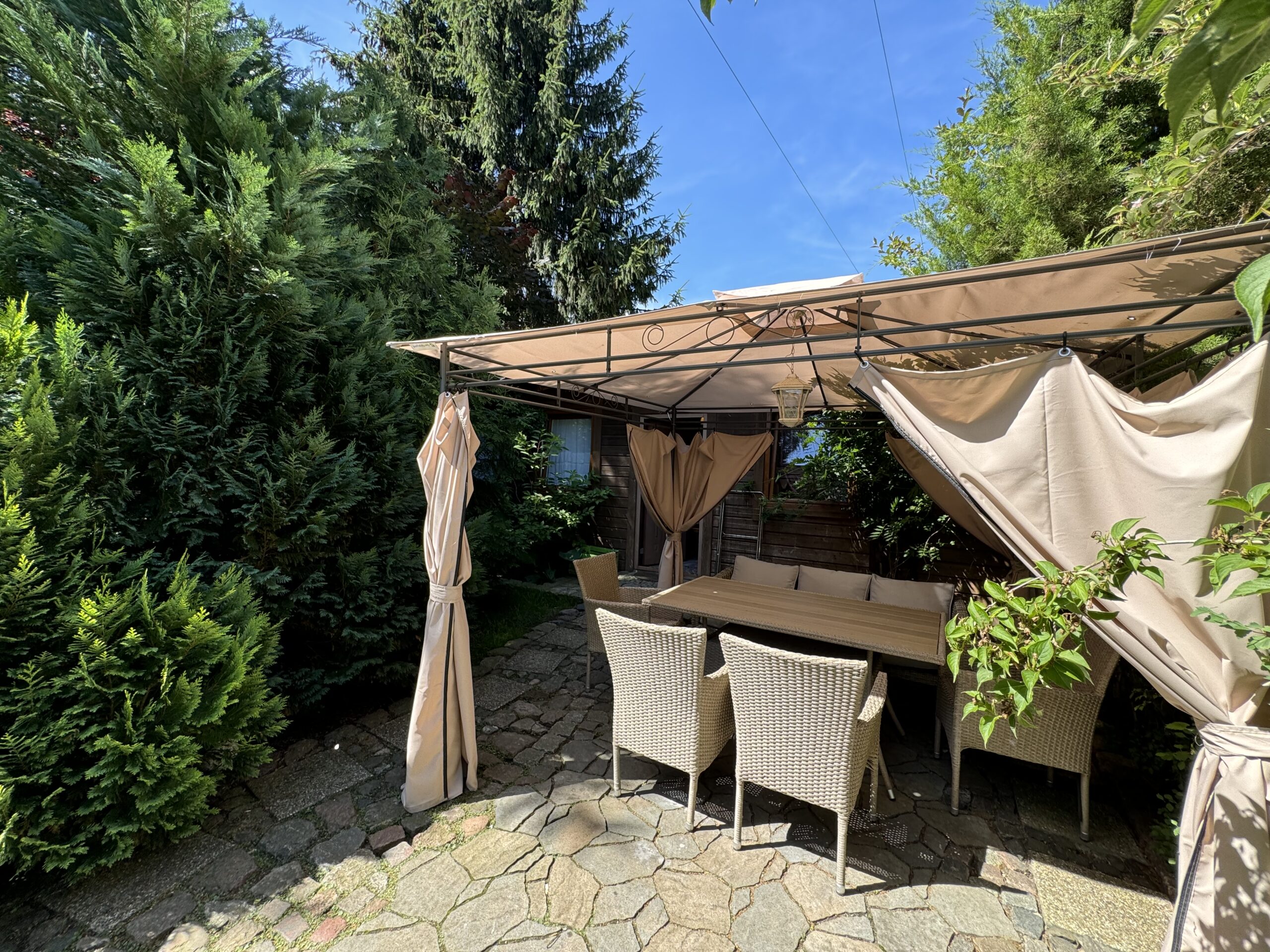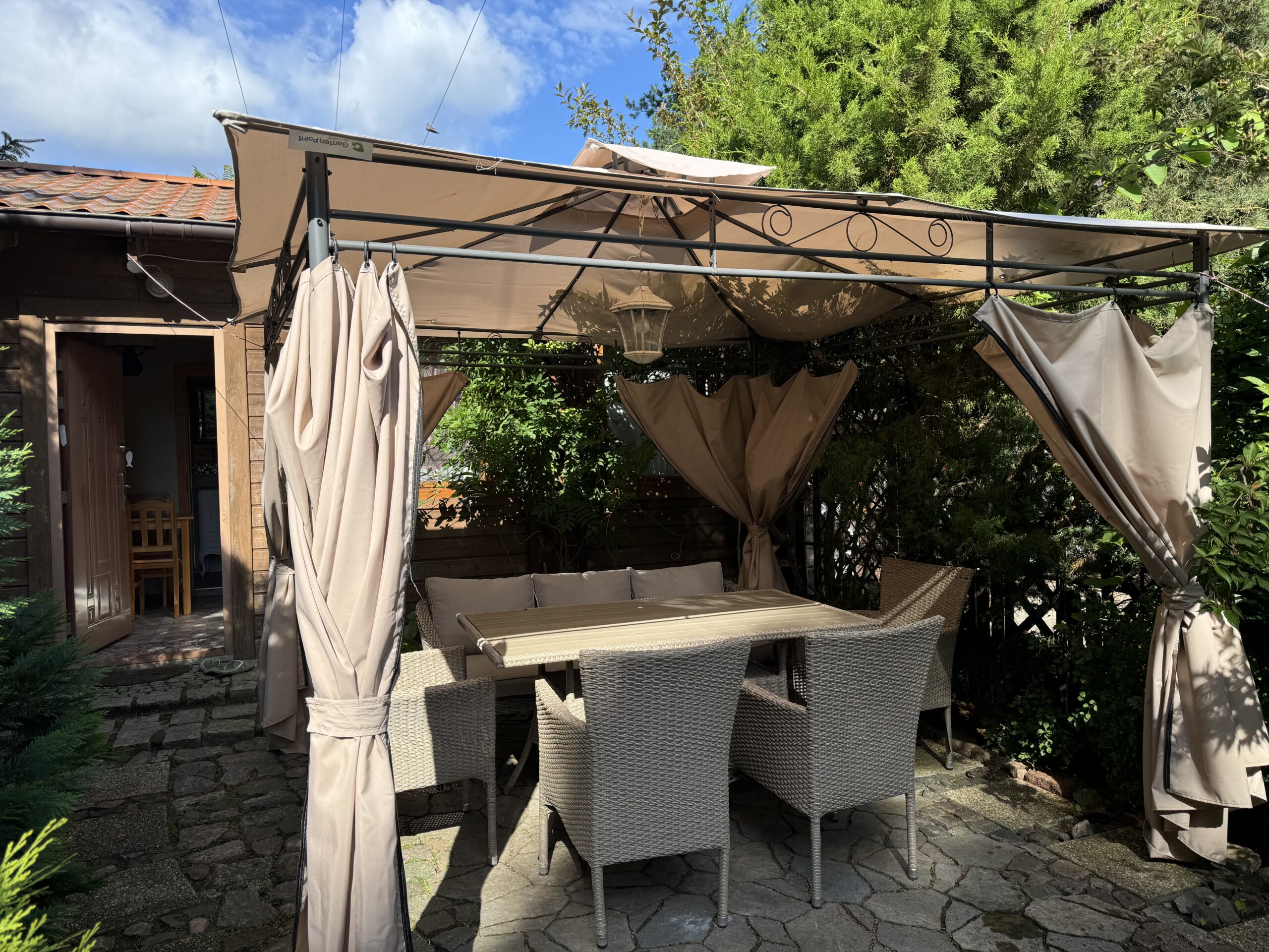 Prywatny ogródek ok 50 m2 z altanką 12 m2 z zestawem mebli ogrodowych, grillowanie.