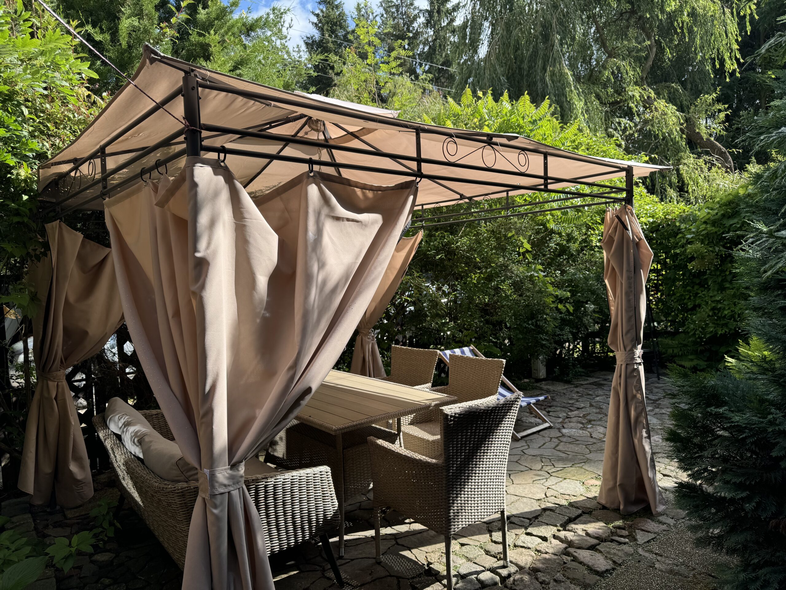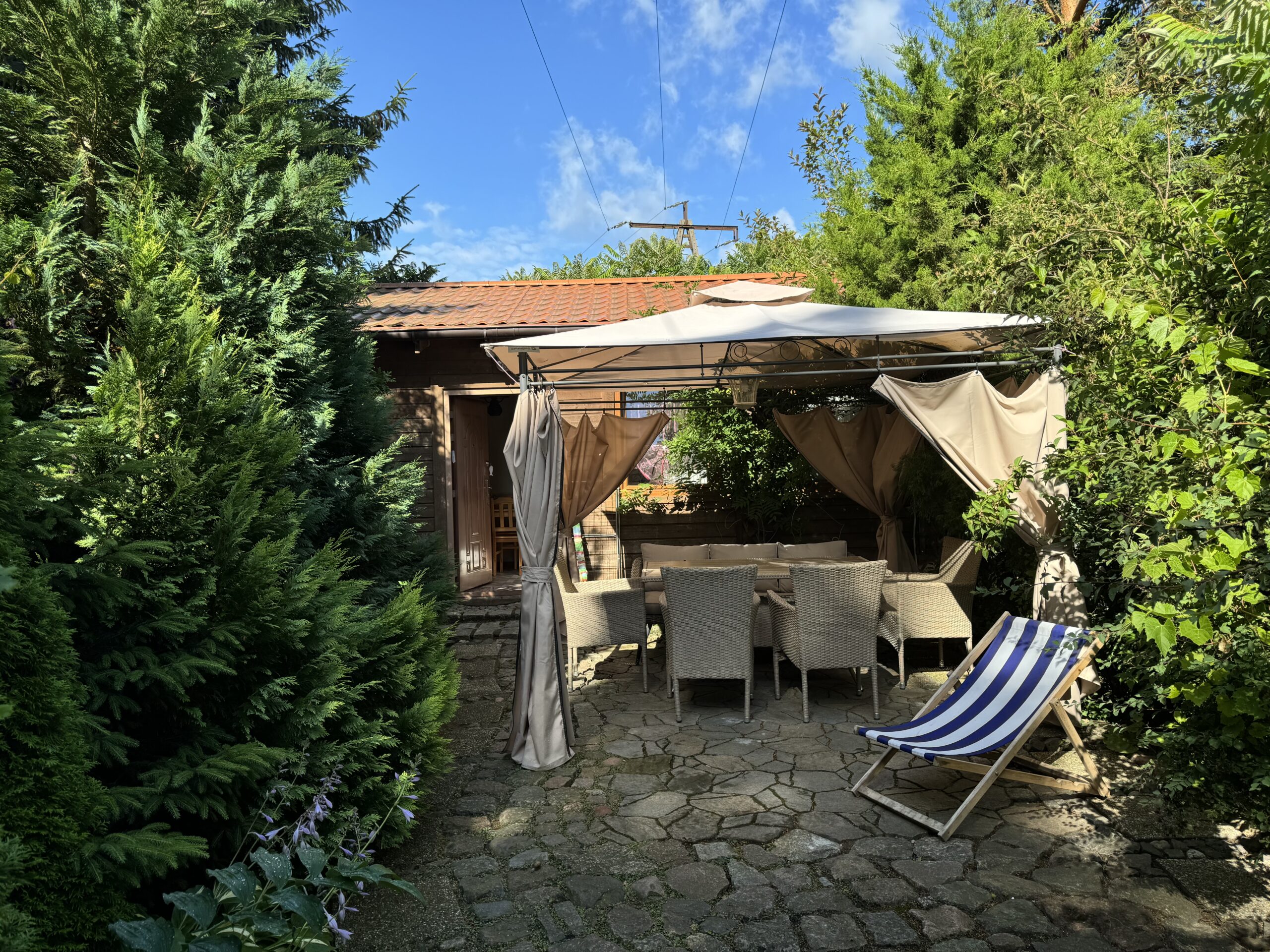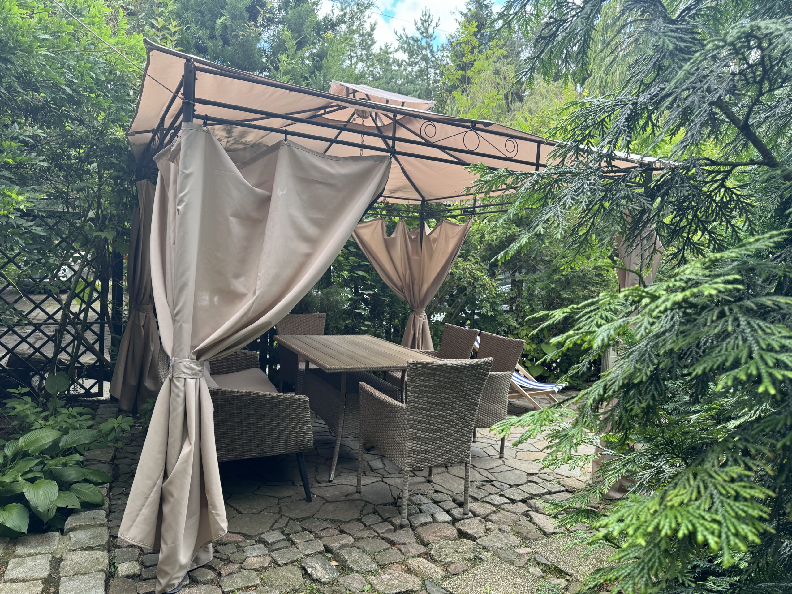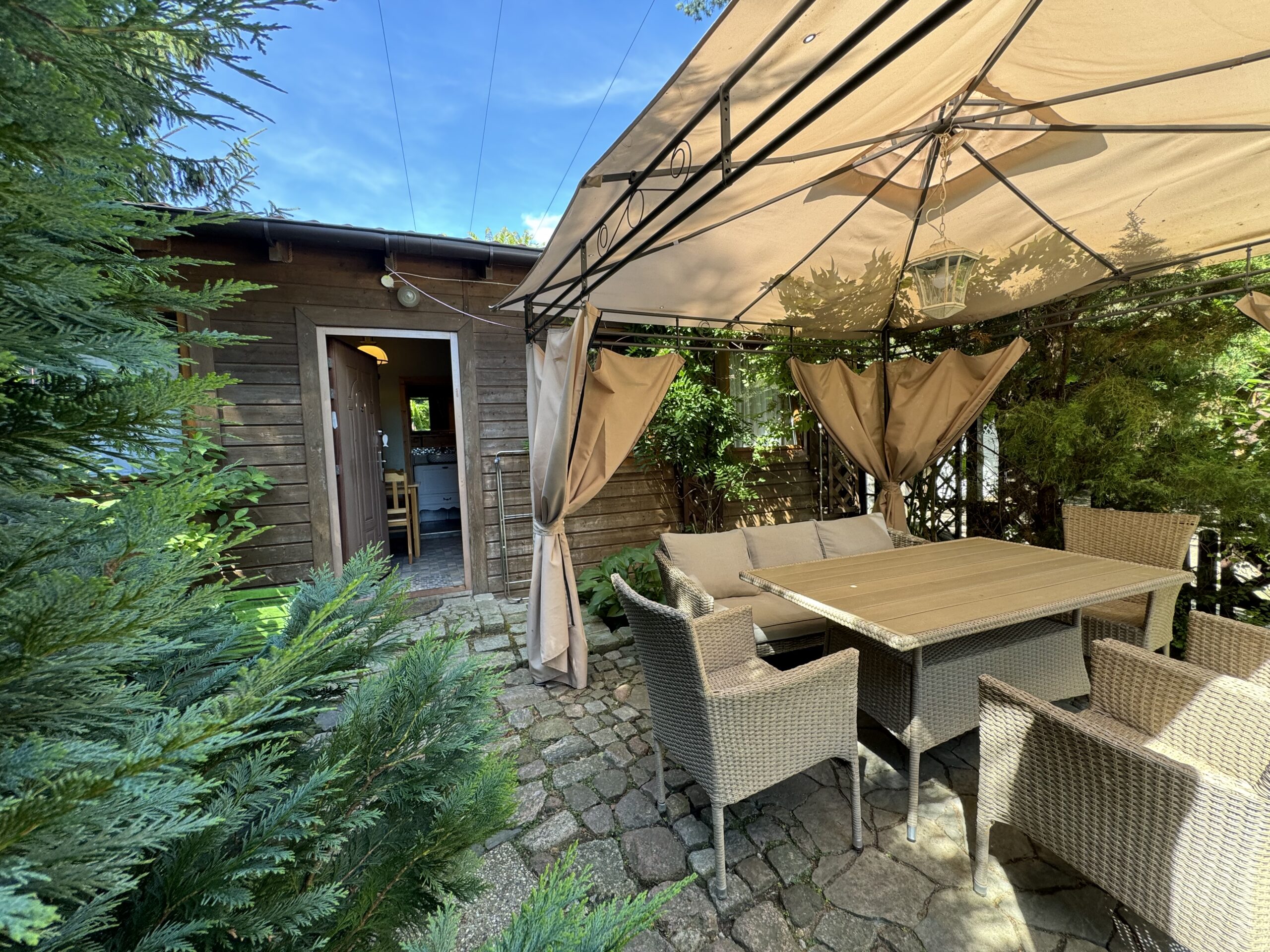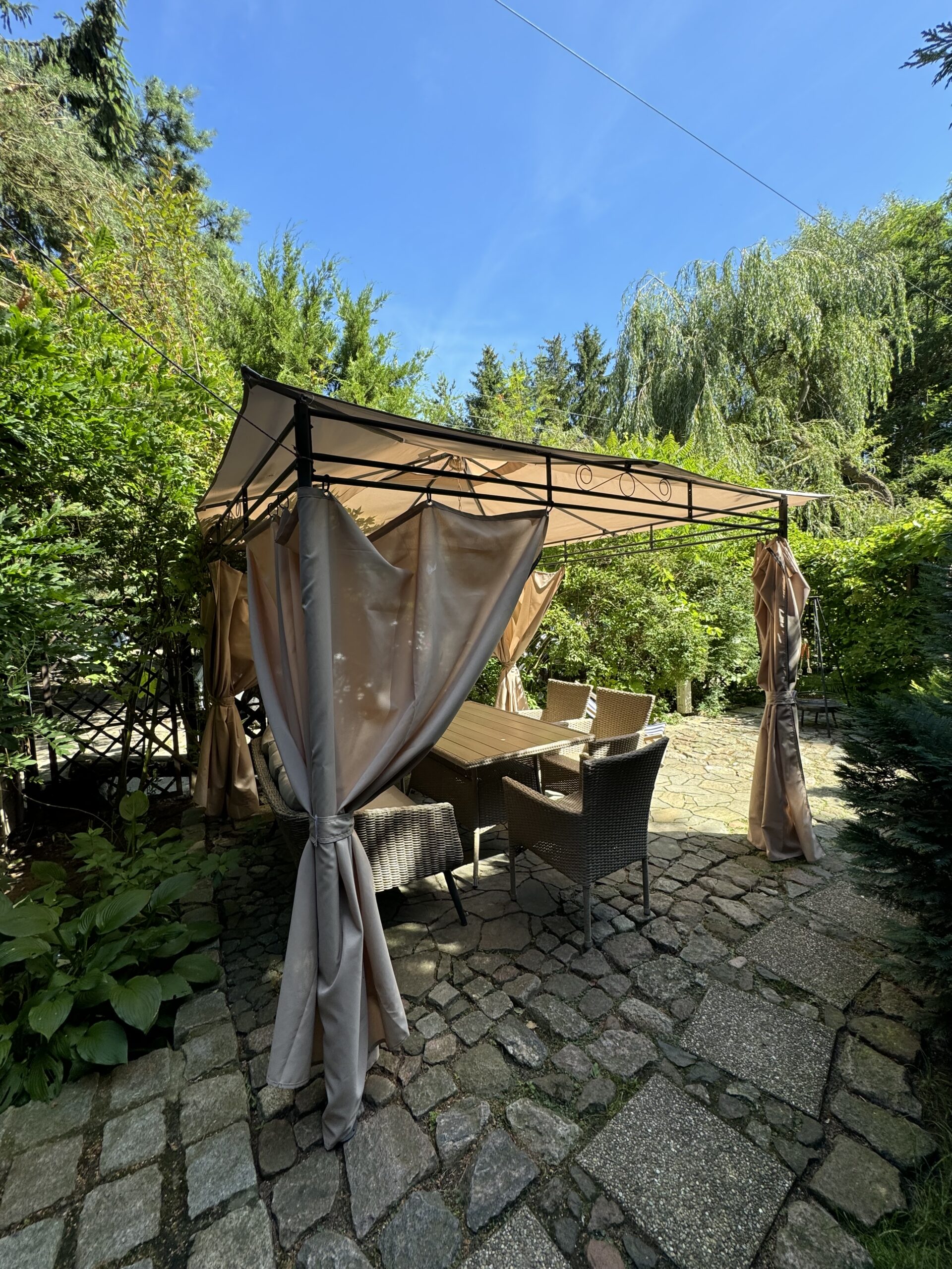 Prywatny ogródek ok 50 m2 z altanką 12 m2 z zestawem mebli ogrodowych, grillowanie.
