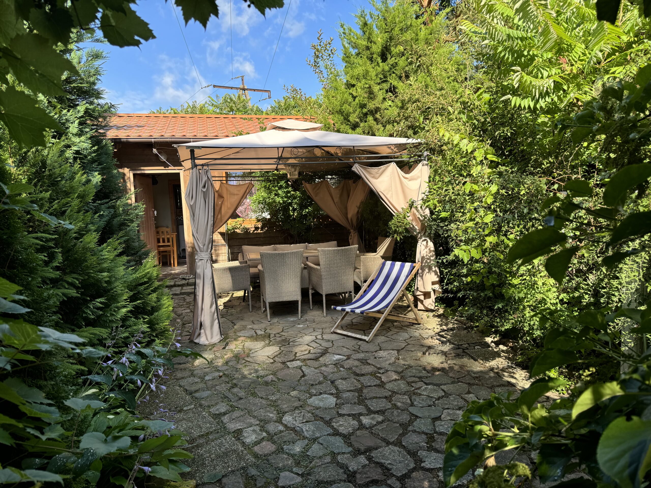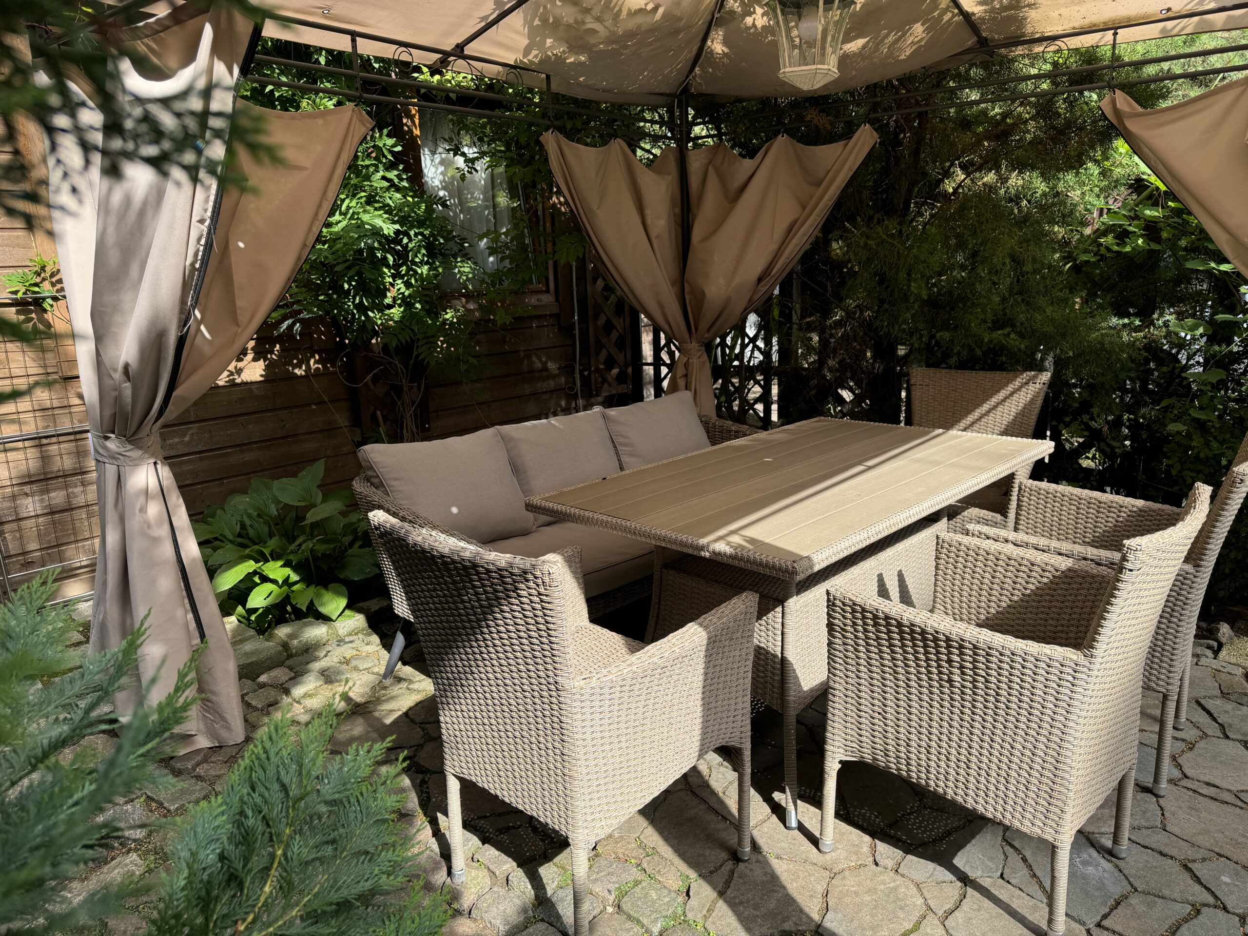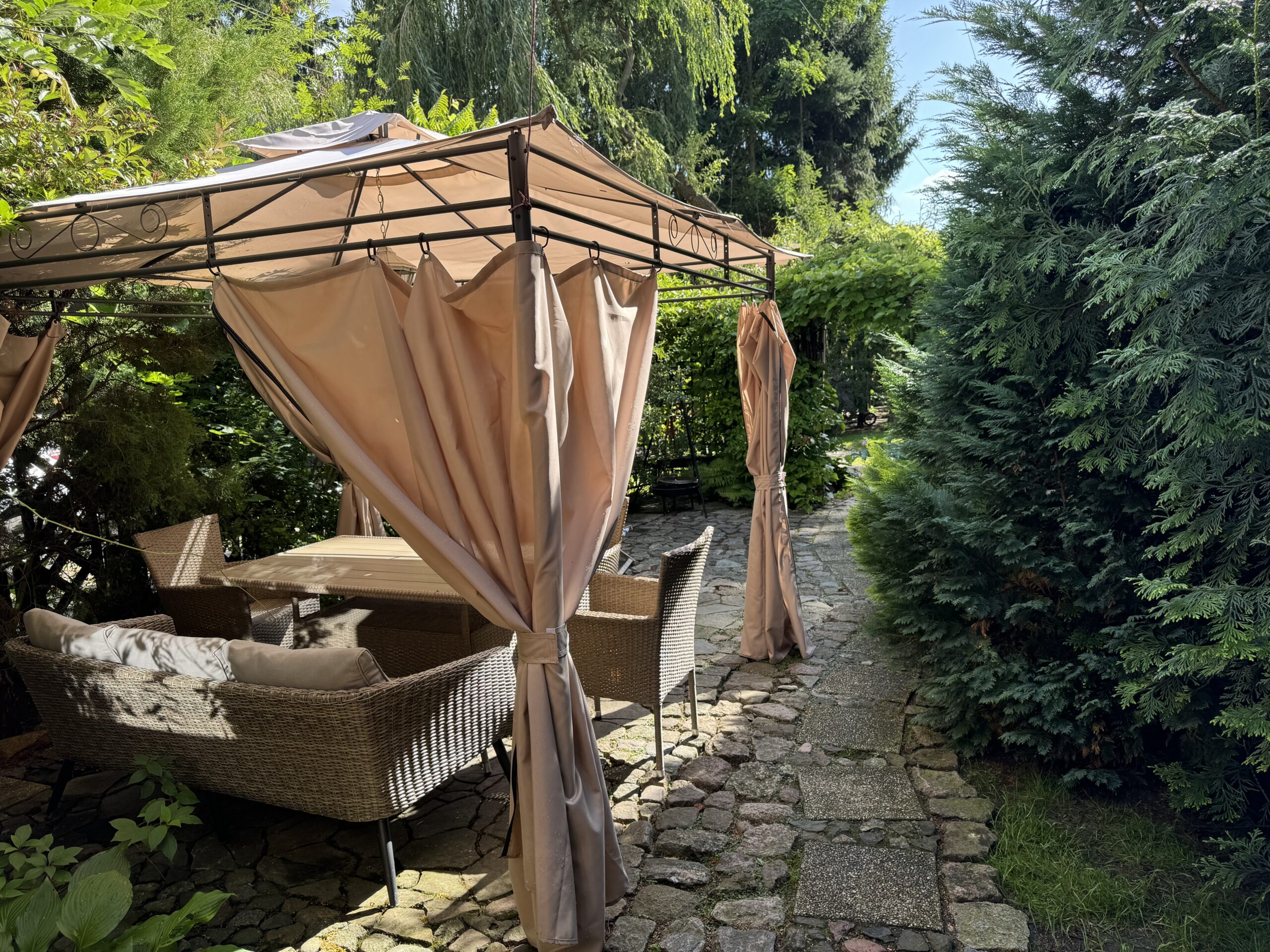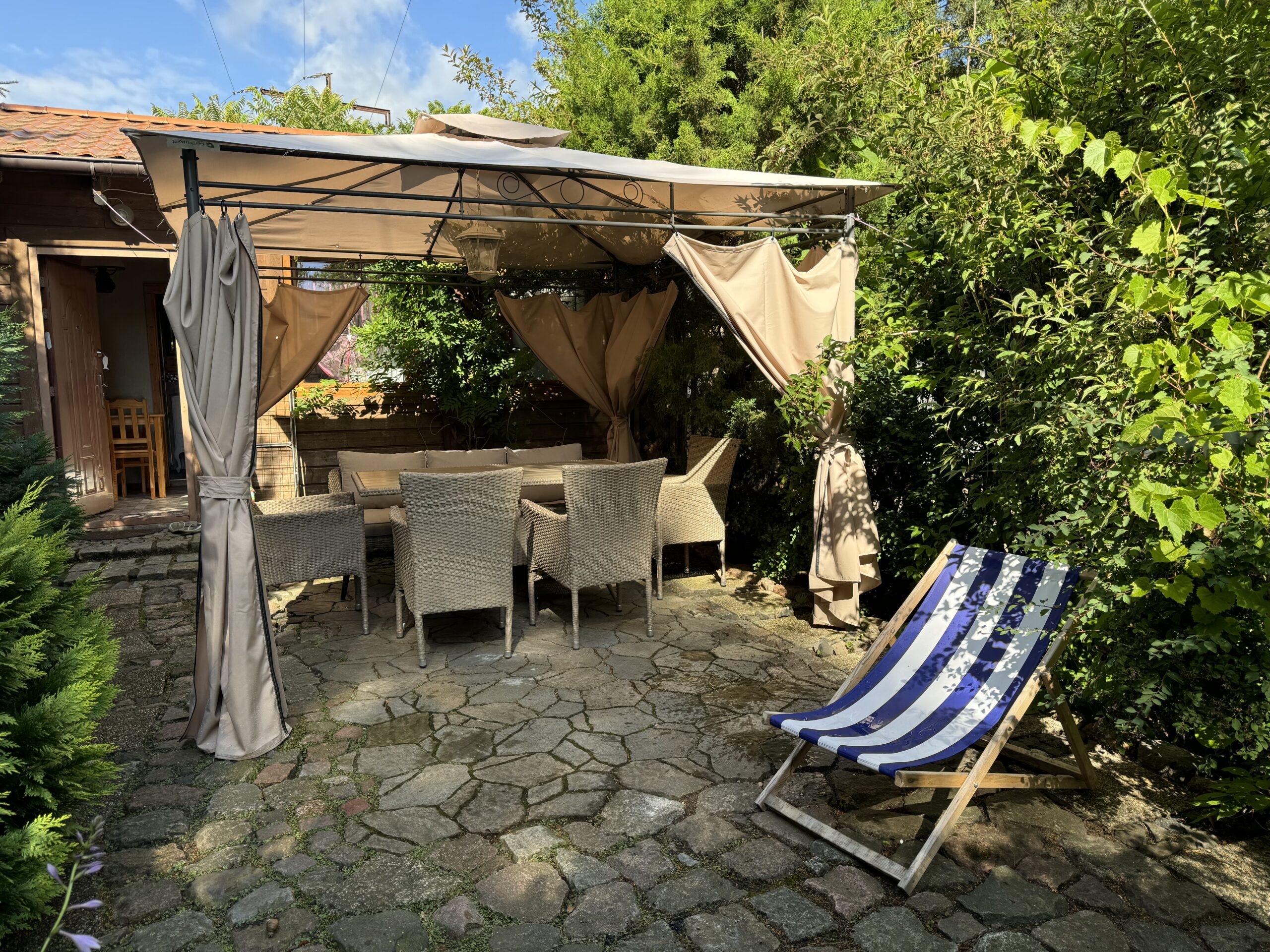 Prywatny ogródek ok 50 m2 z altanką 12 m2 z zestawem mebli ogrodowych, grillowanie.