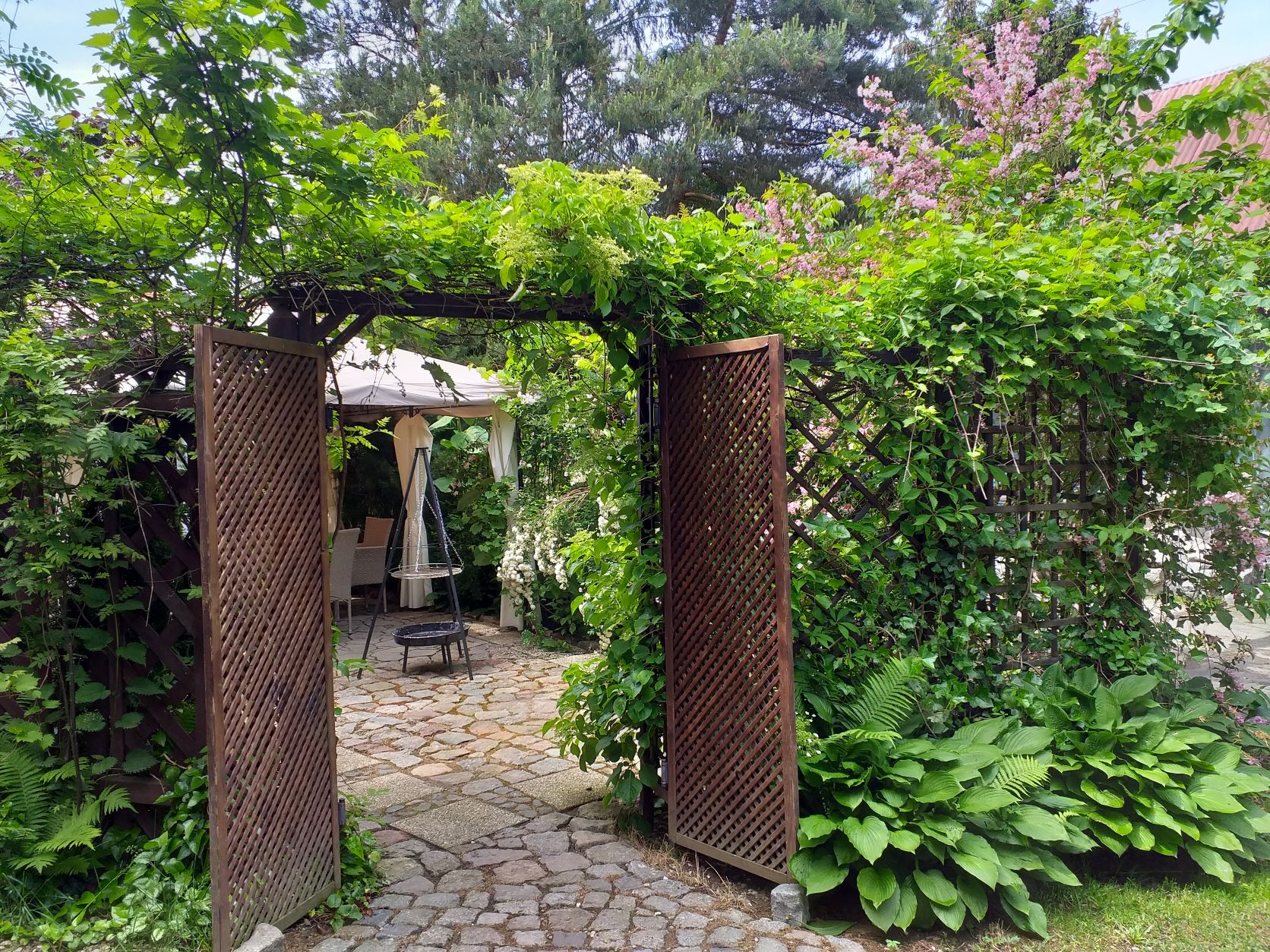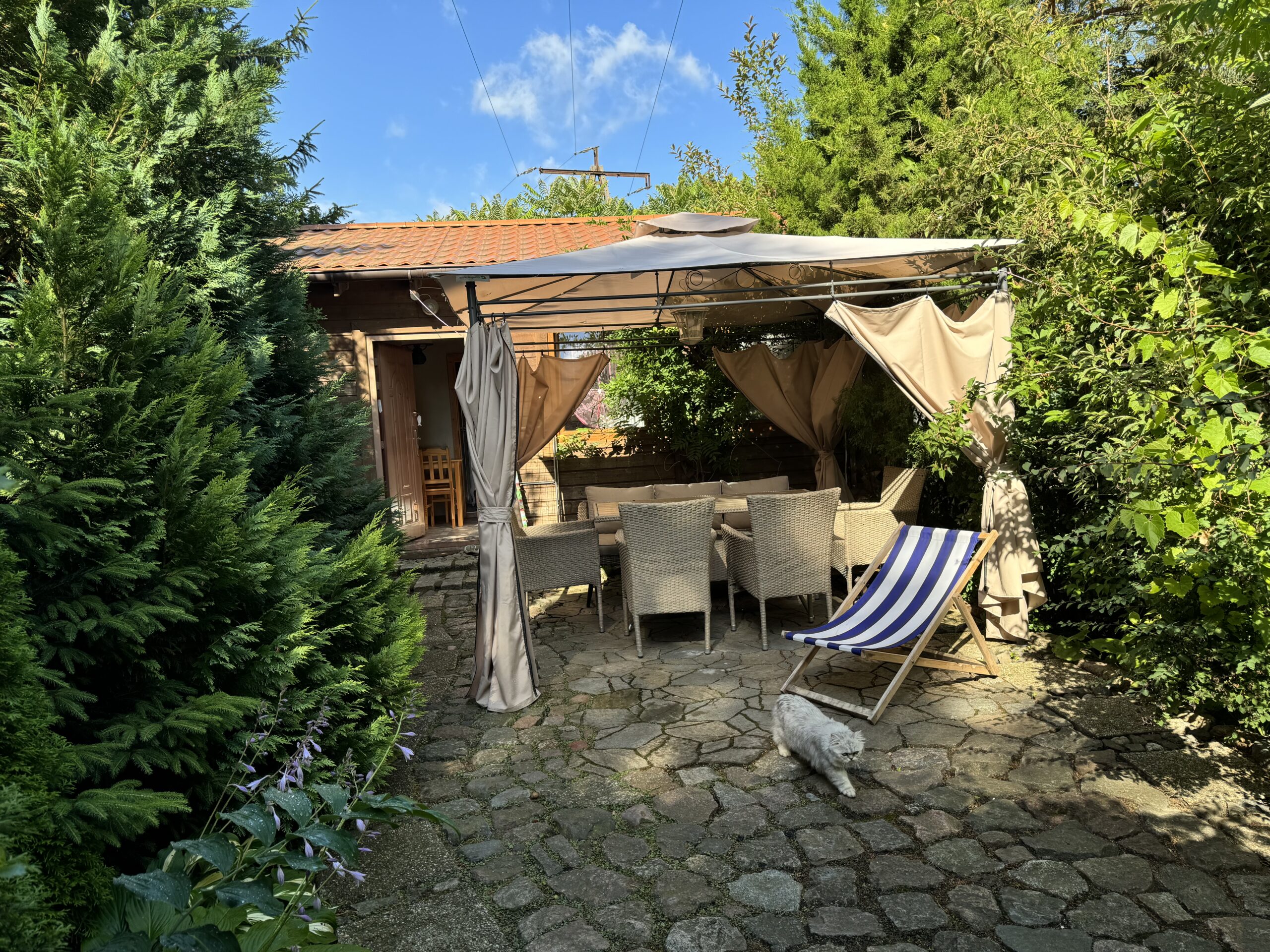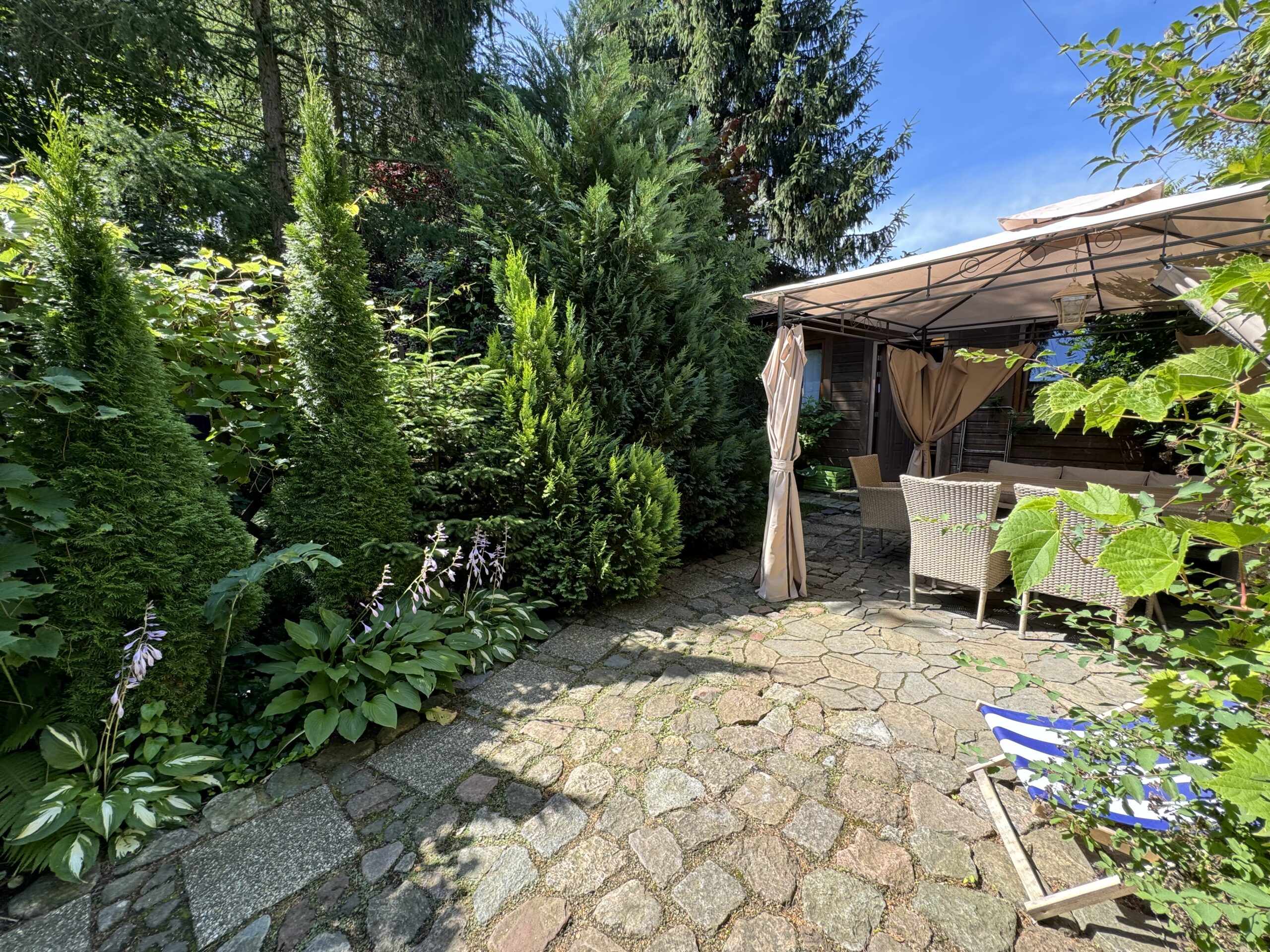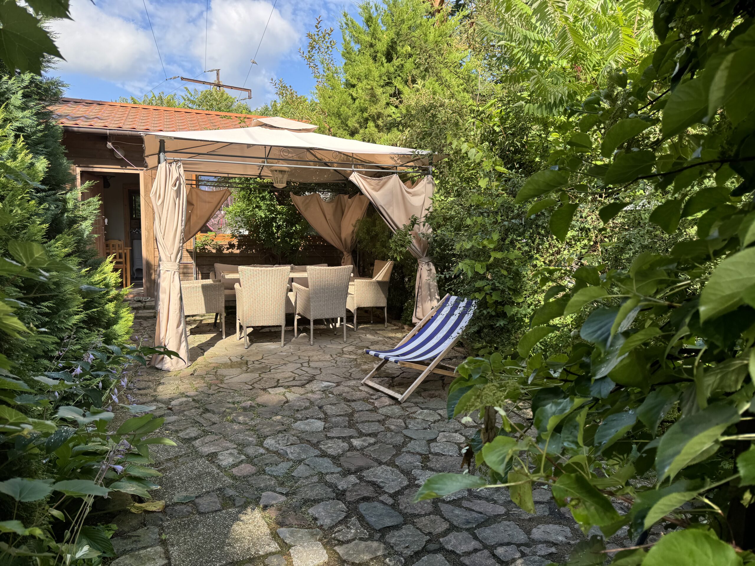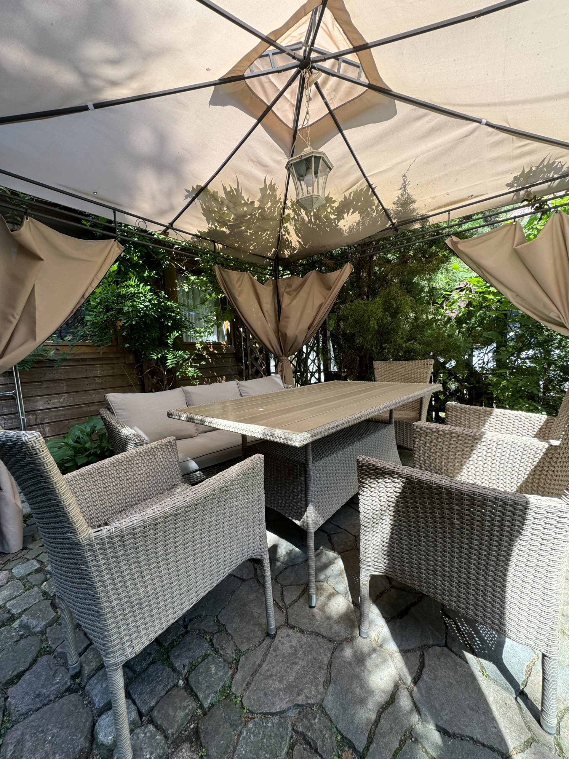 Prywatny ogródek ok 50 m2 z altanką 12 m2 z zestawem mebli ogrodowych, grillowanie.