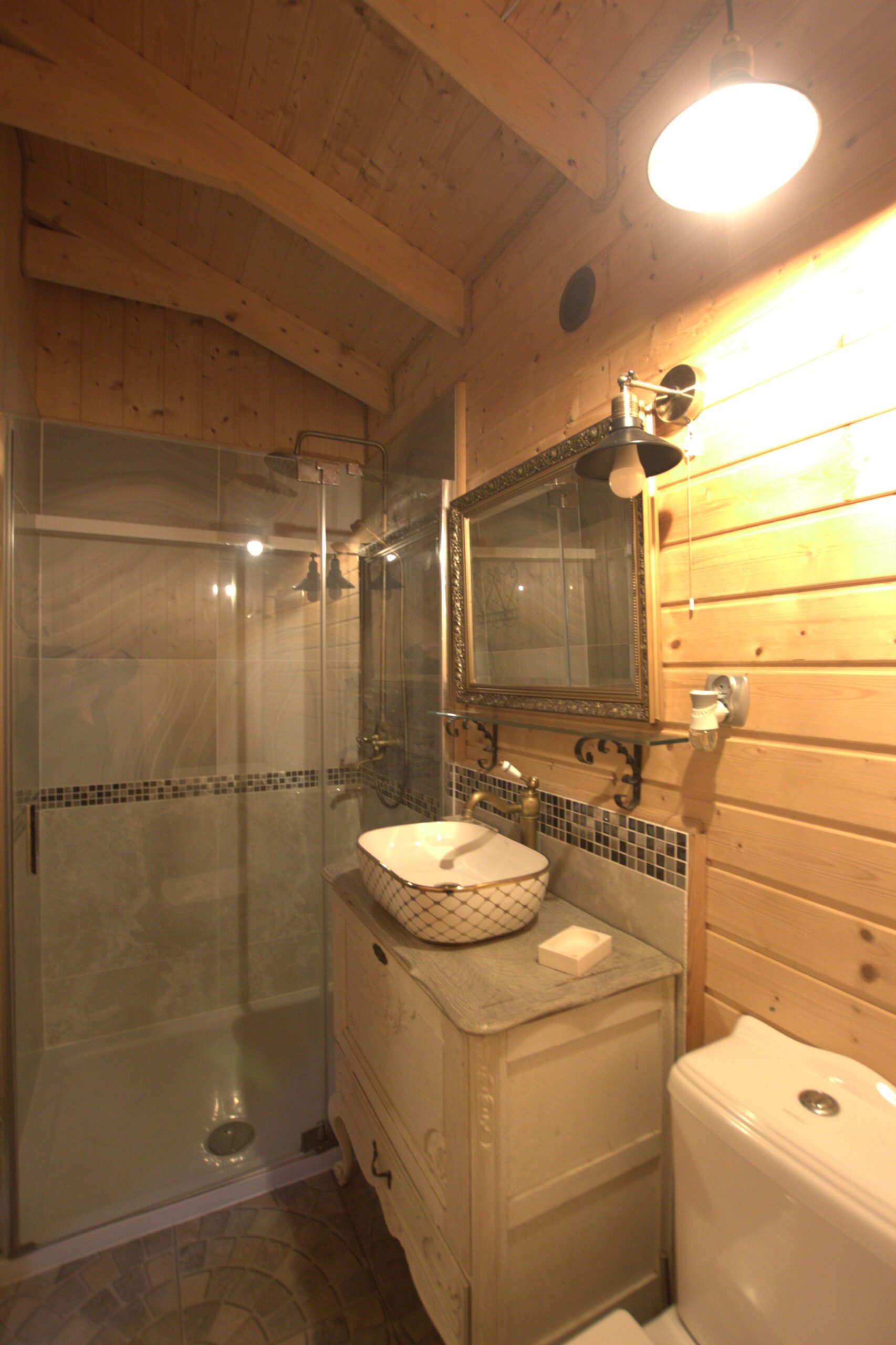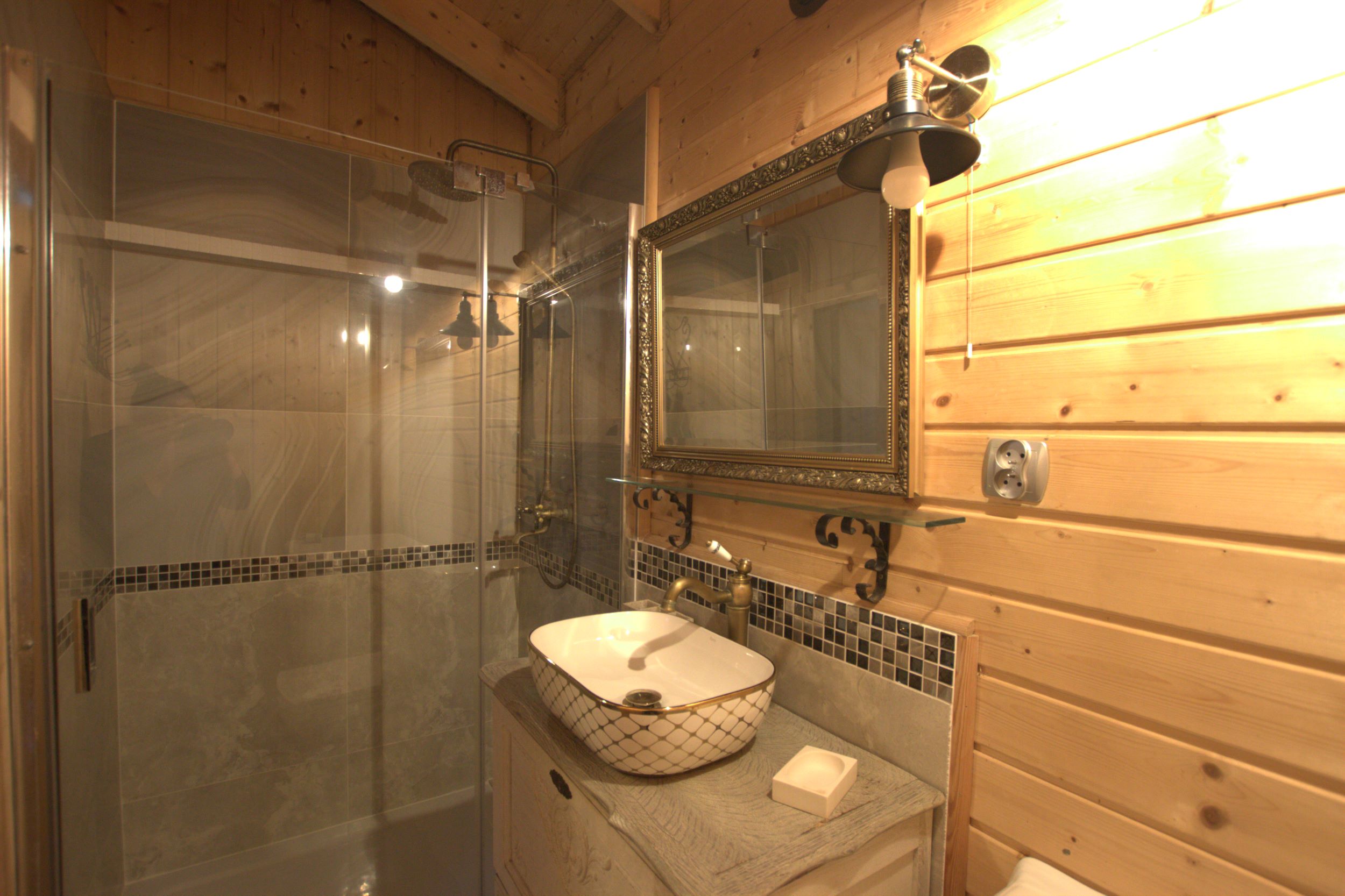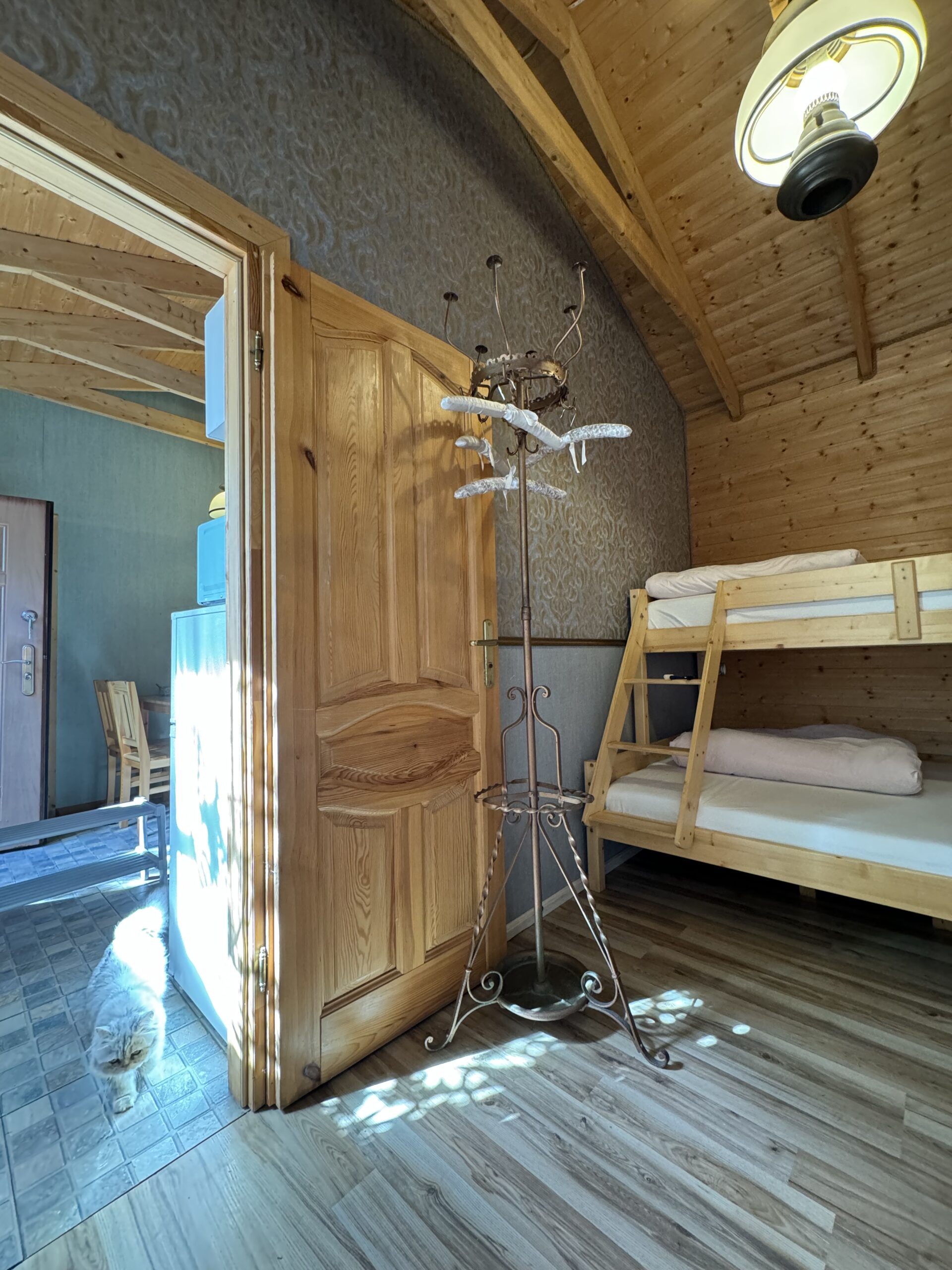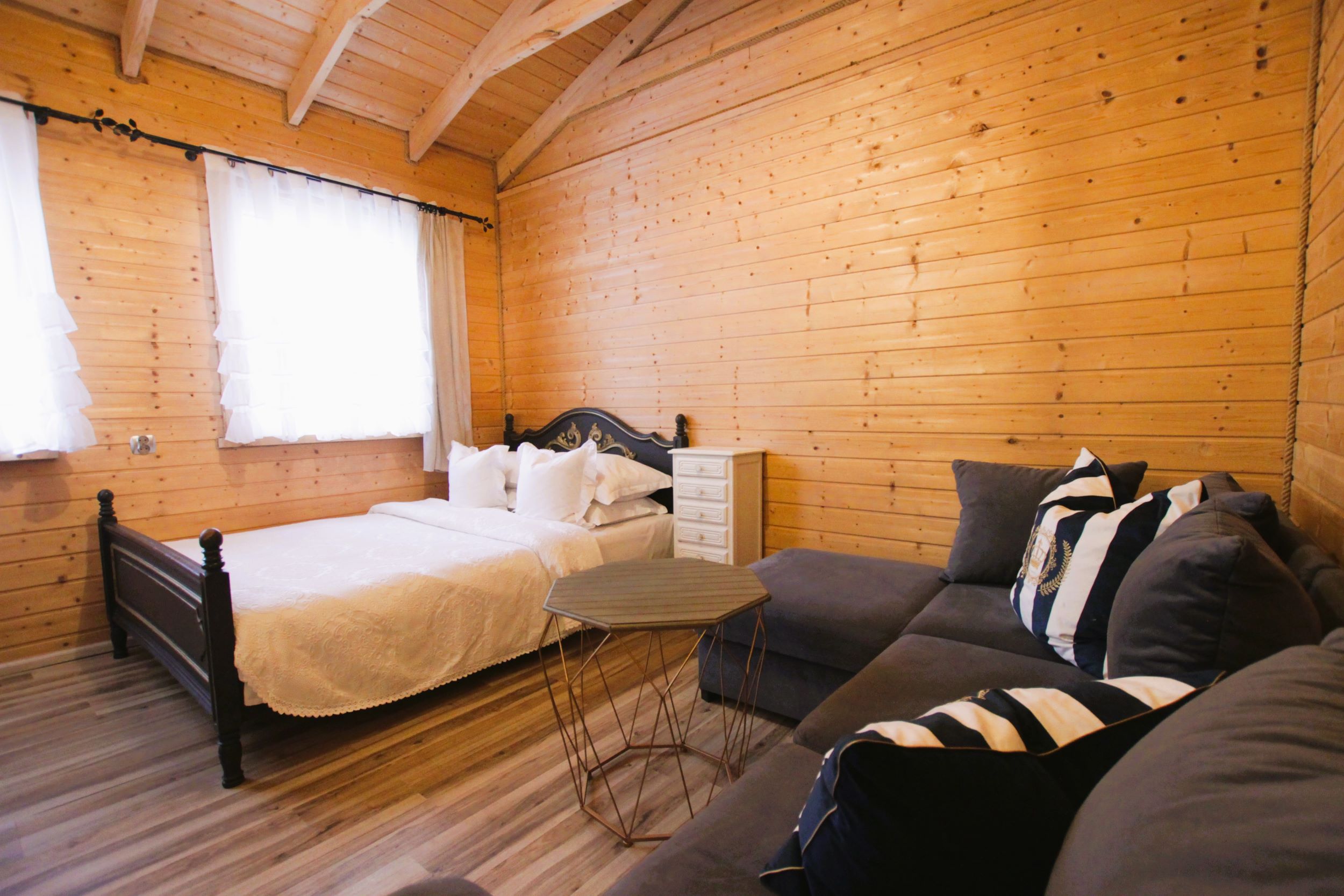 Dwie sypialnie: pierwsza 2-osobowa z możliwością spania dla dwóch dodatkowych osób (sofa narożna z funkcją spania), także możliwość dostawienia łóżeczka dziecięcego oraz drga 3-osobowa. Łazienka z prysznicem, WC. Kompletna kuchnia.
