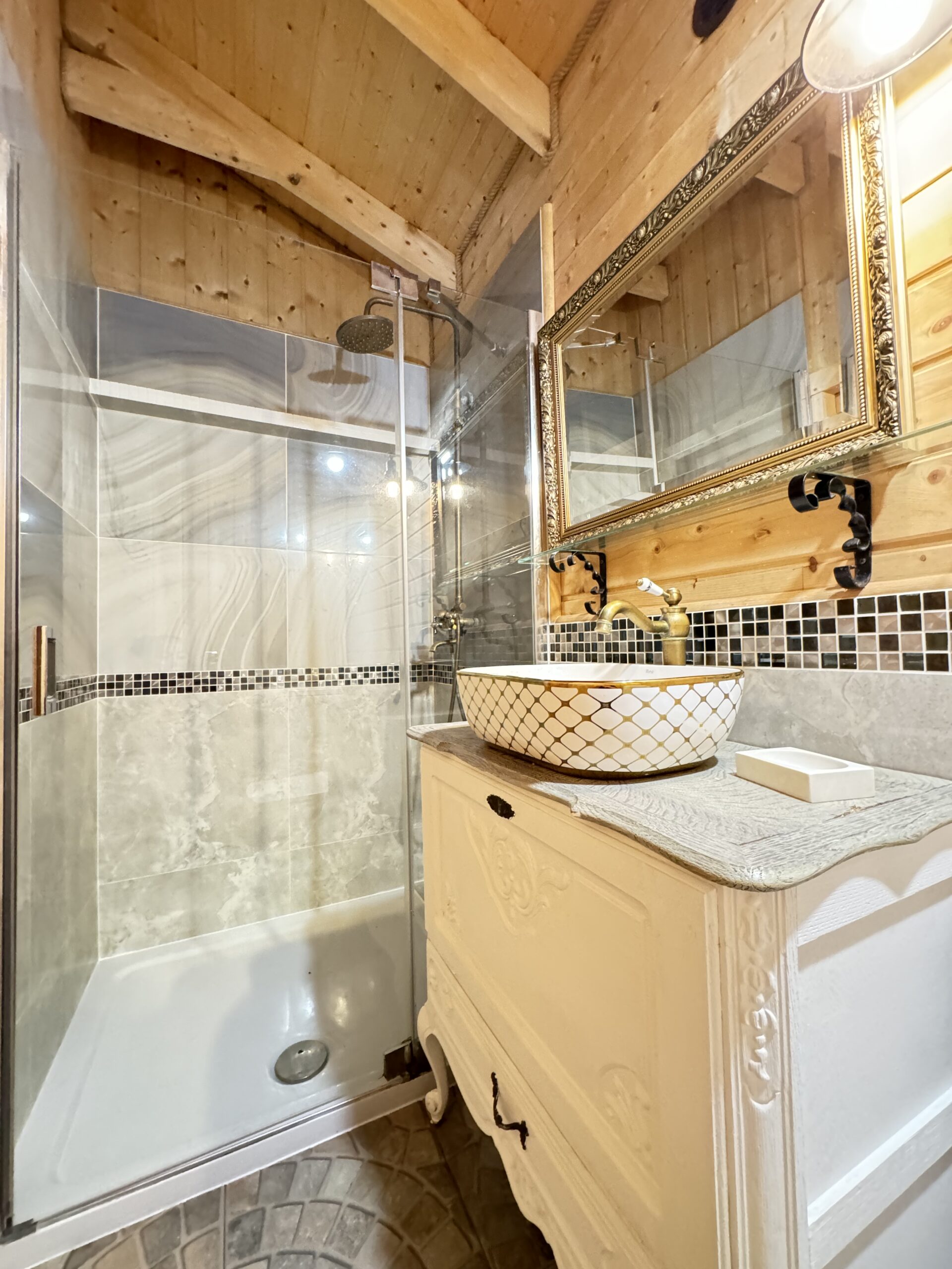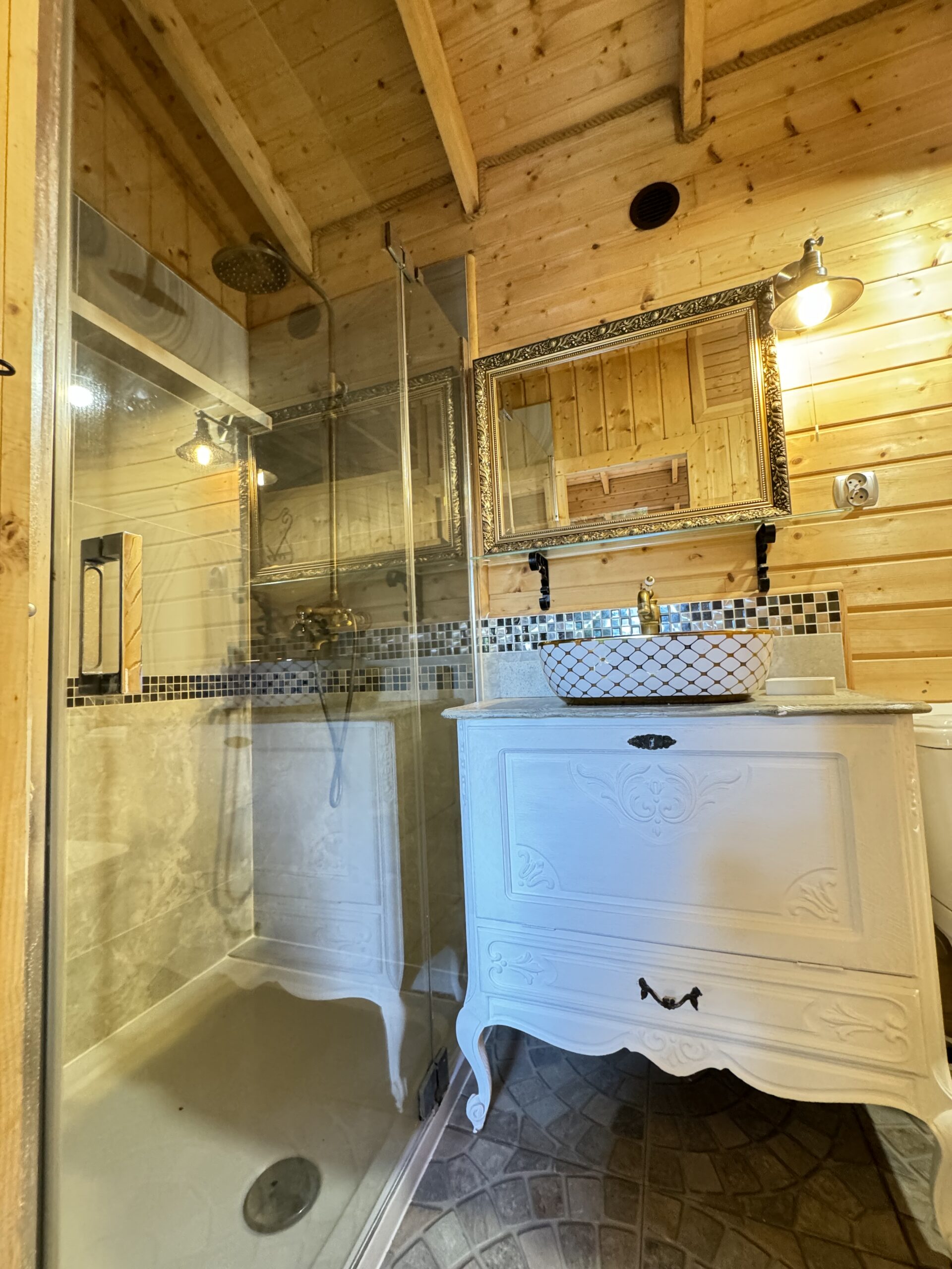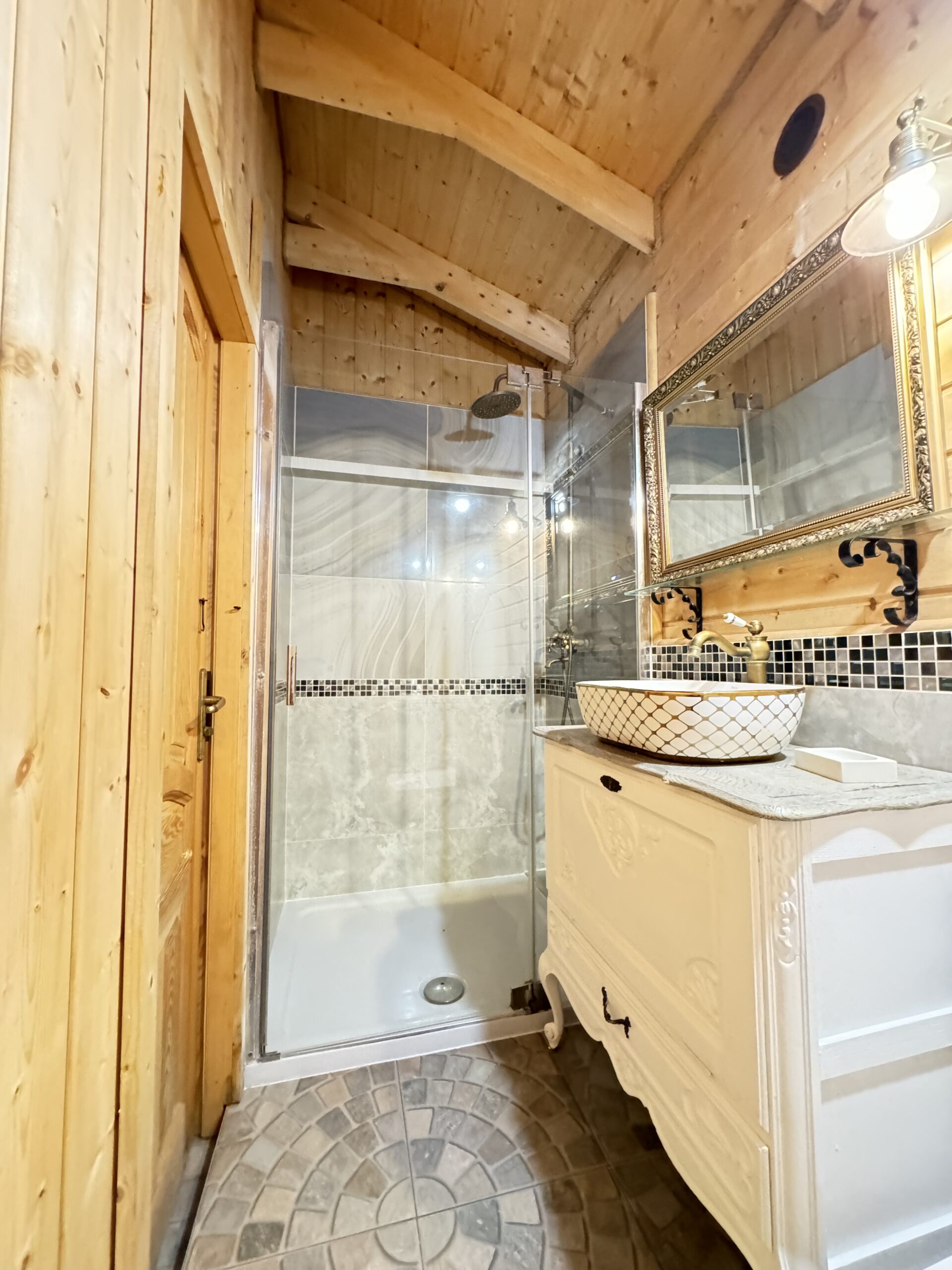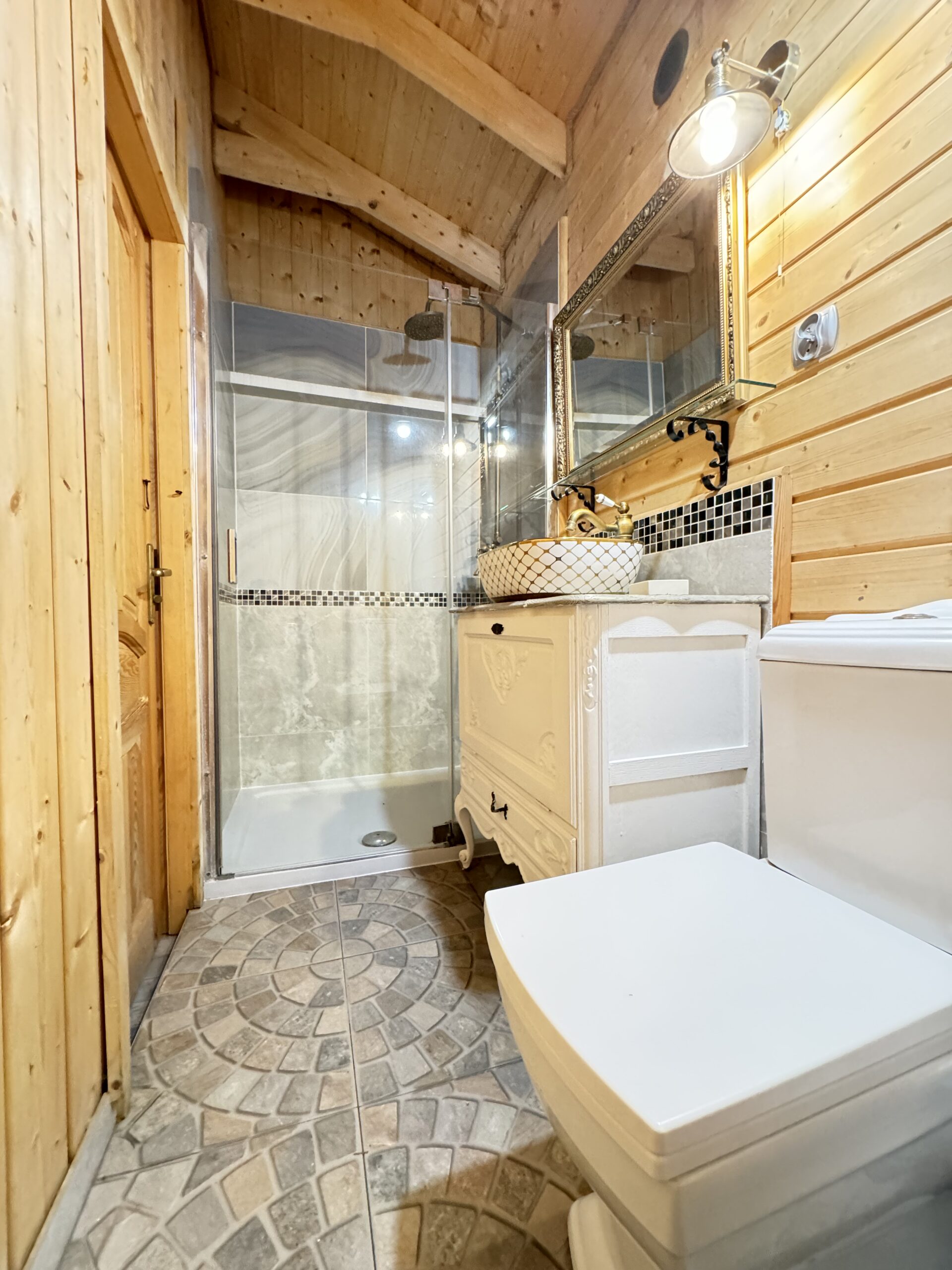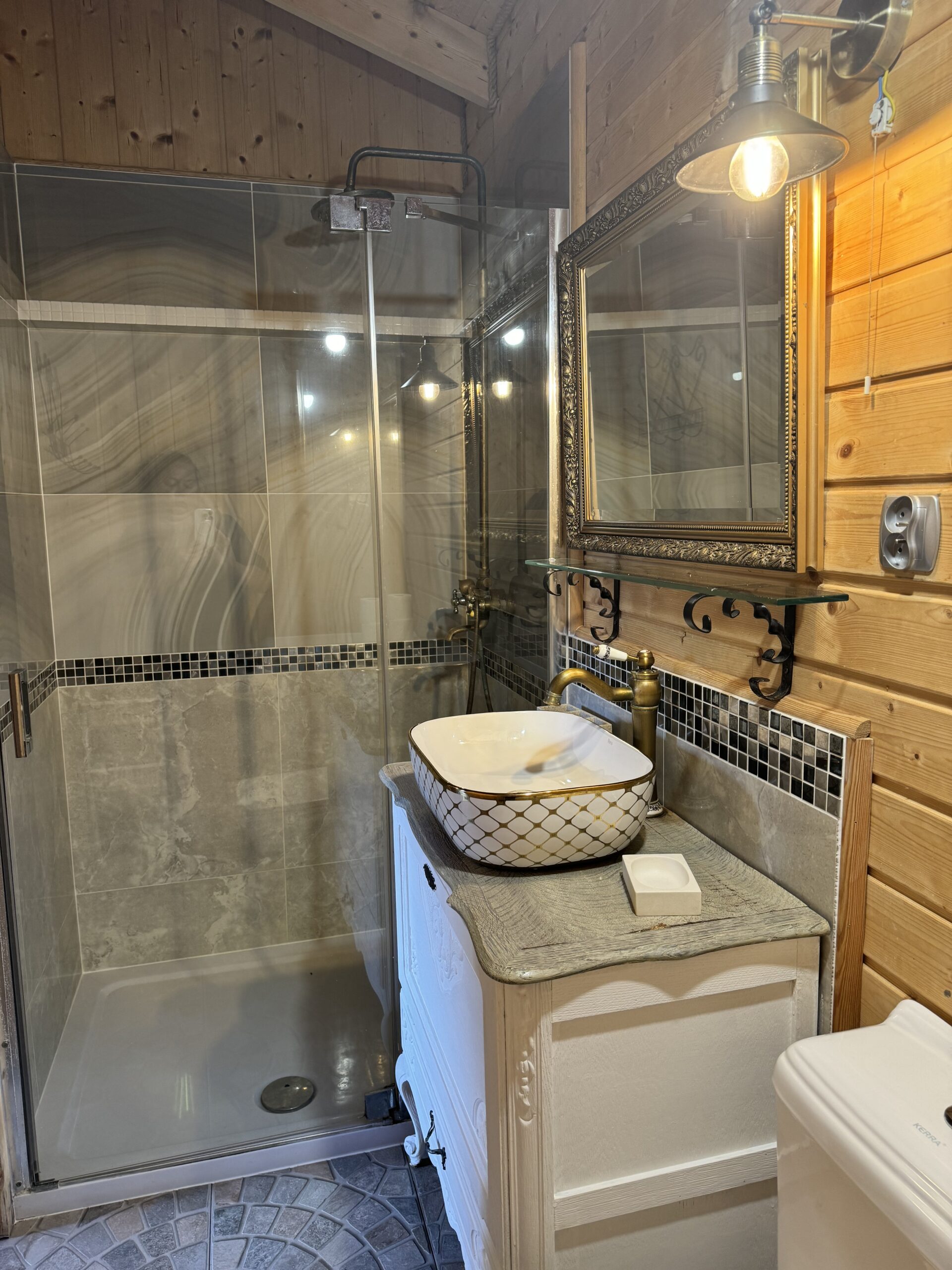 Dwie sypialnie: pierwsza 2-osobowa z możliwością spania dla dwóch dodatkowych osób (sofa narożna z funkcją spania), także możliwość dostawienia łóżeczka dziecięcego oraz drga 3-osobowa. Łazienka z prysznicem, WC. Kompletna kuchnia.