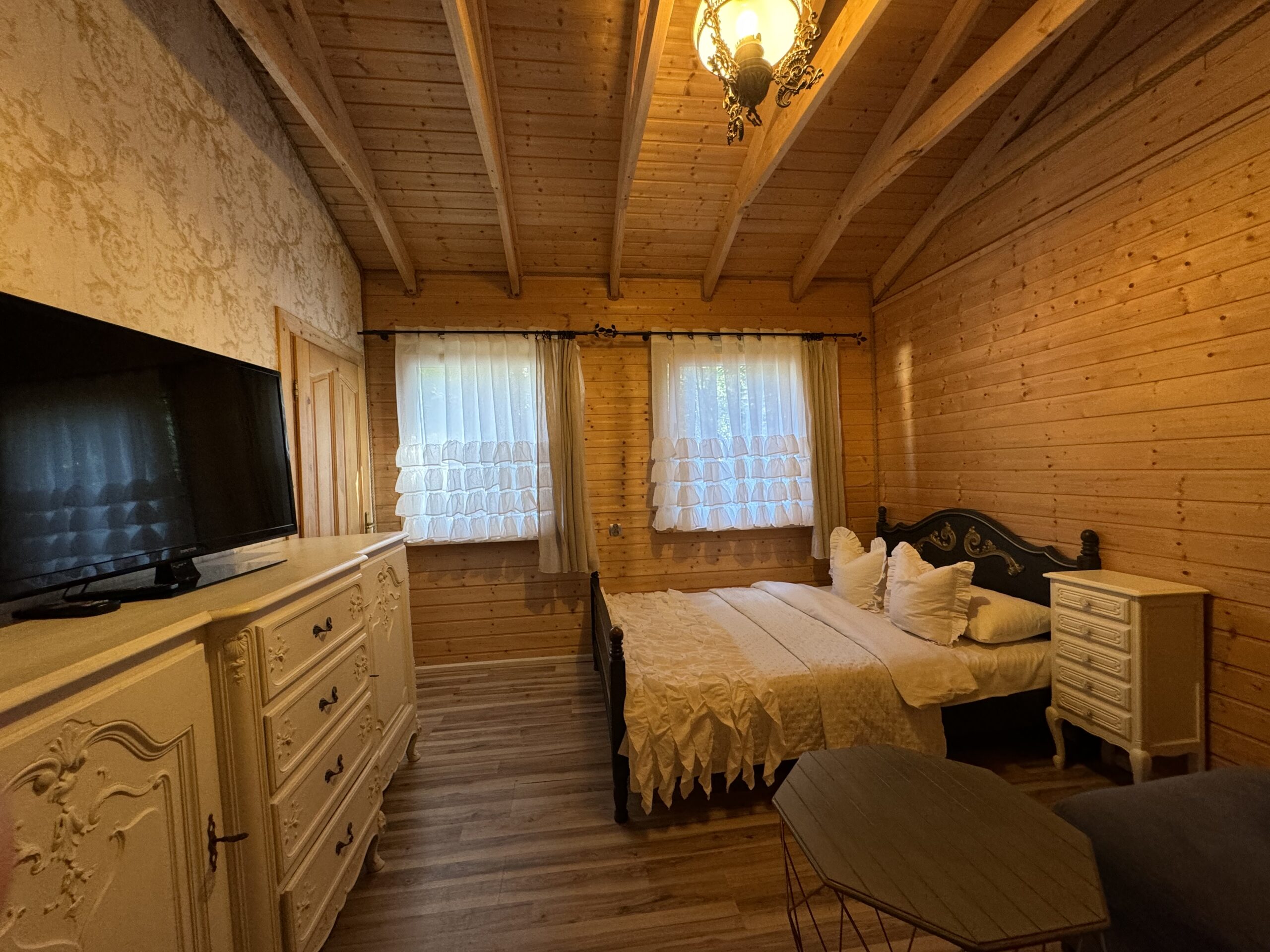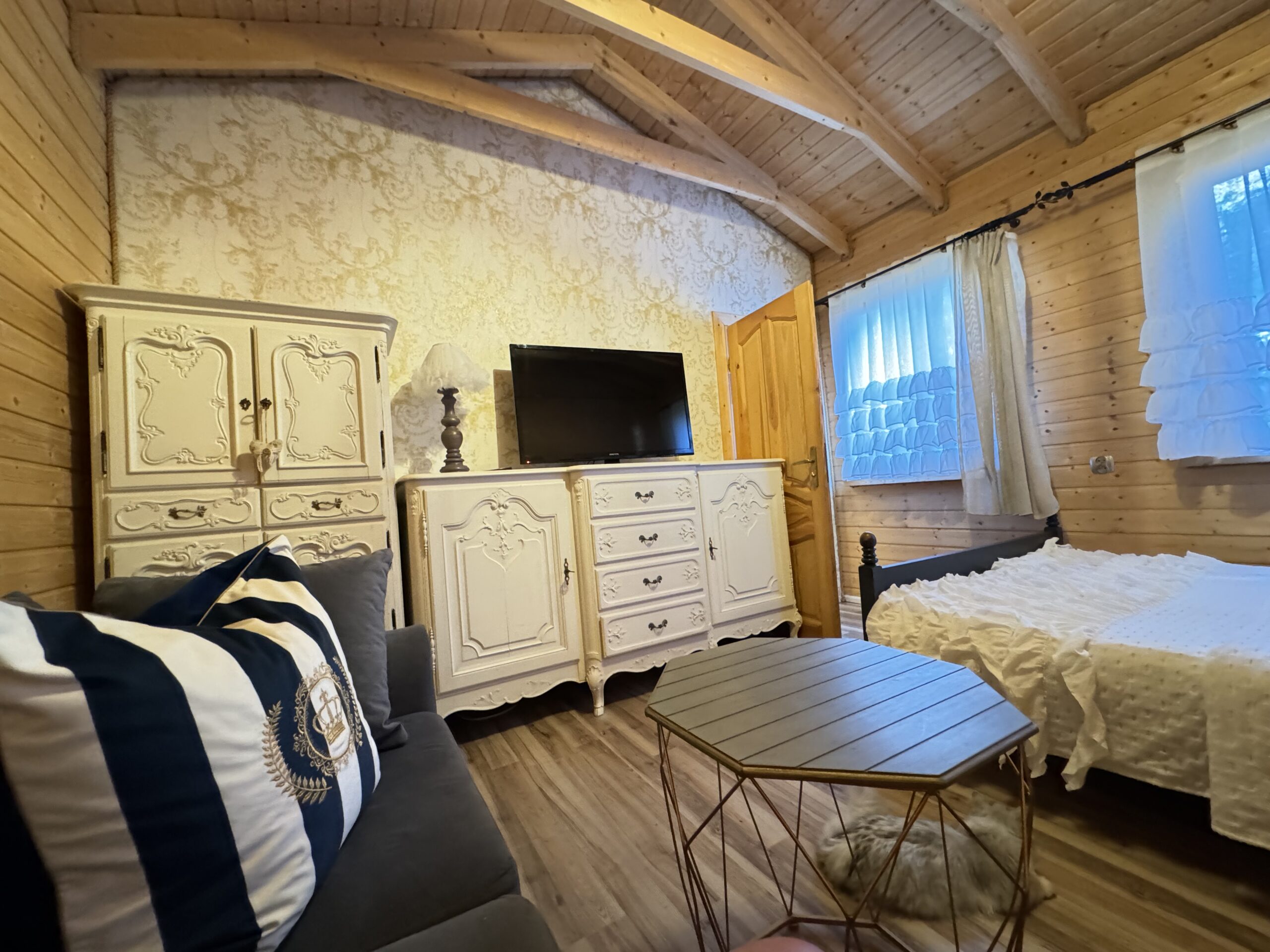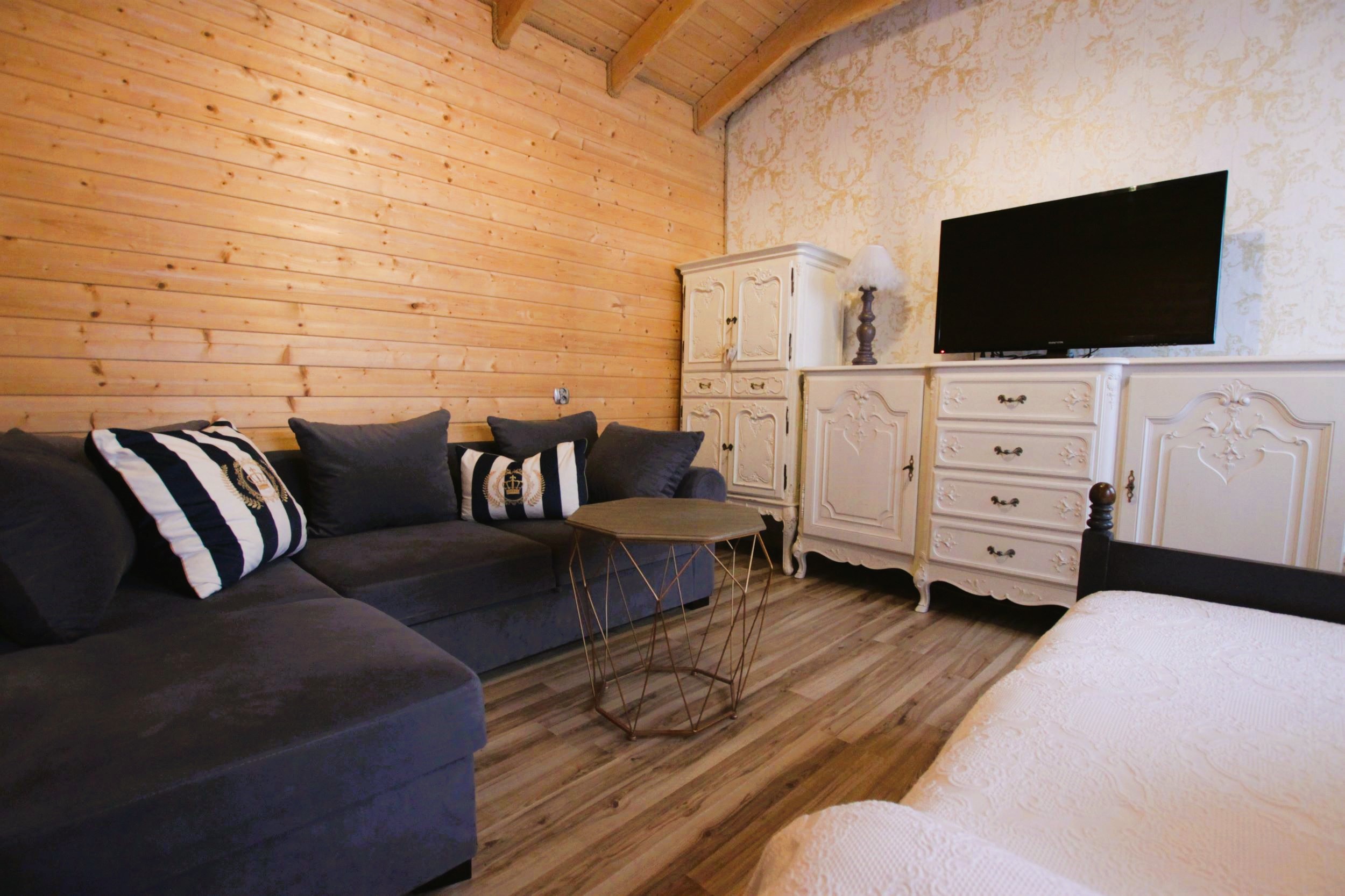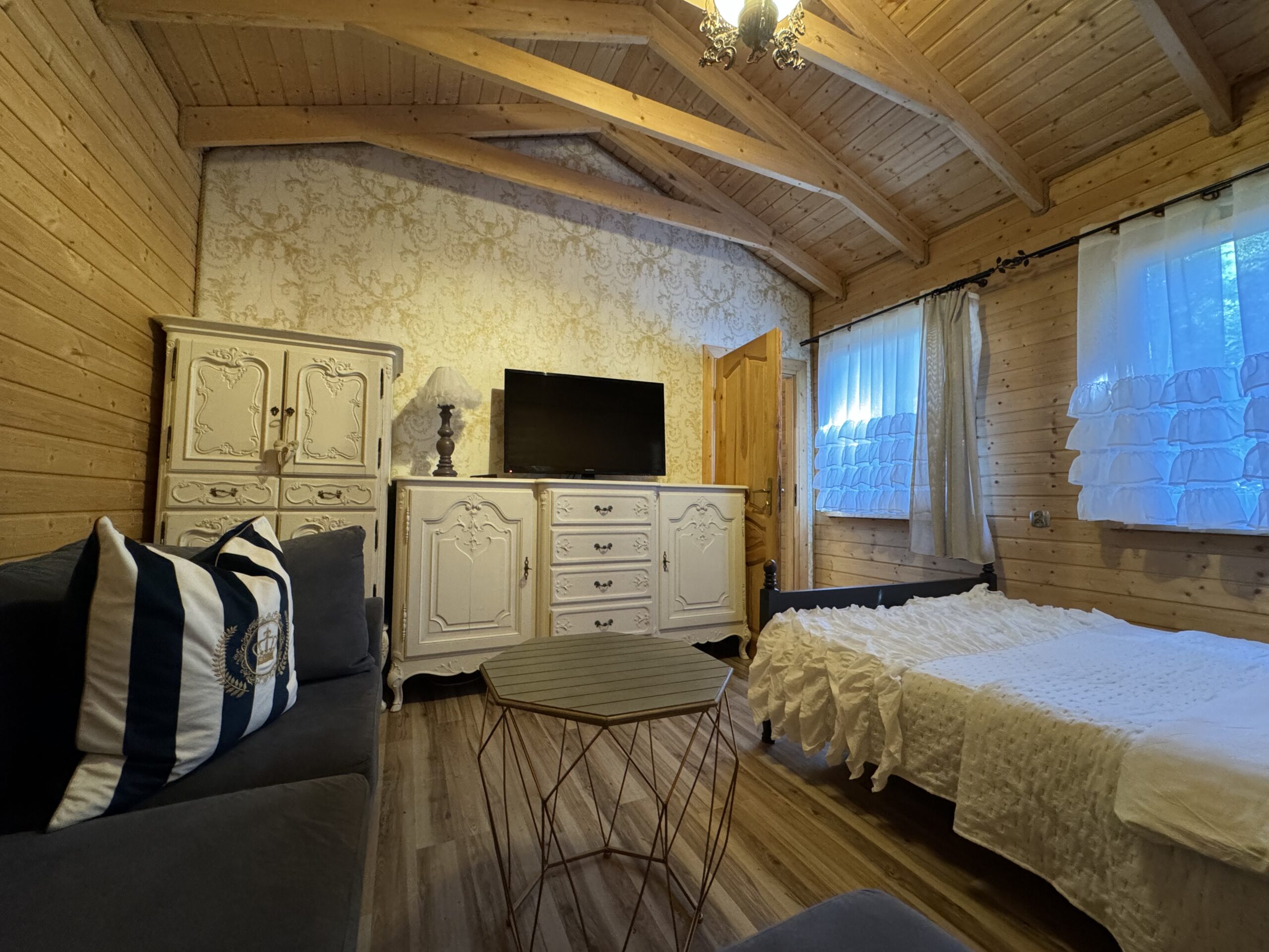 Wyposażenie rozszerzone o TV w każdym pokoju, mikrofalówka, toster, żelazko z deską do prasowania, grill, suszarka na pranie.
