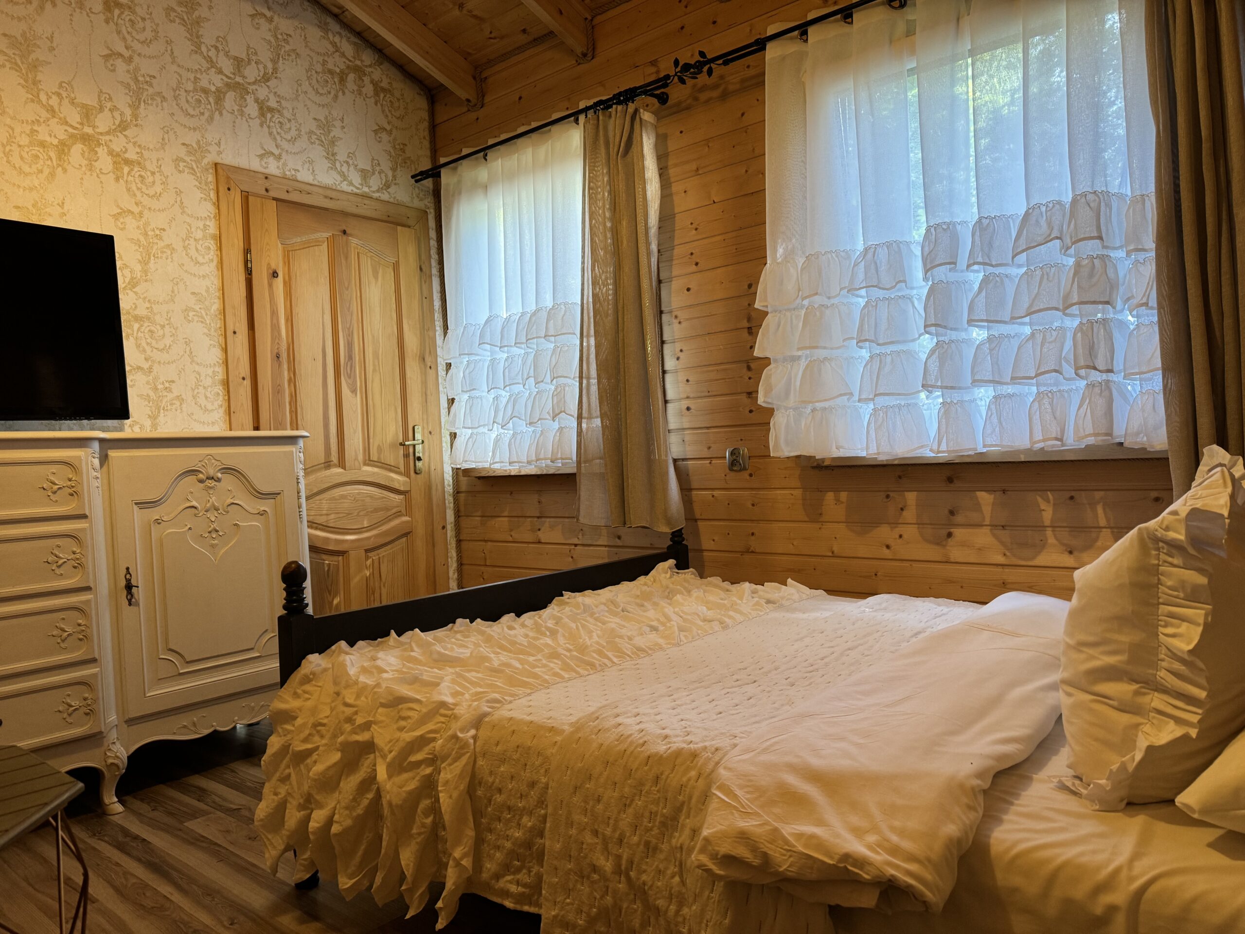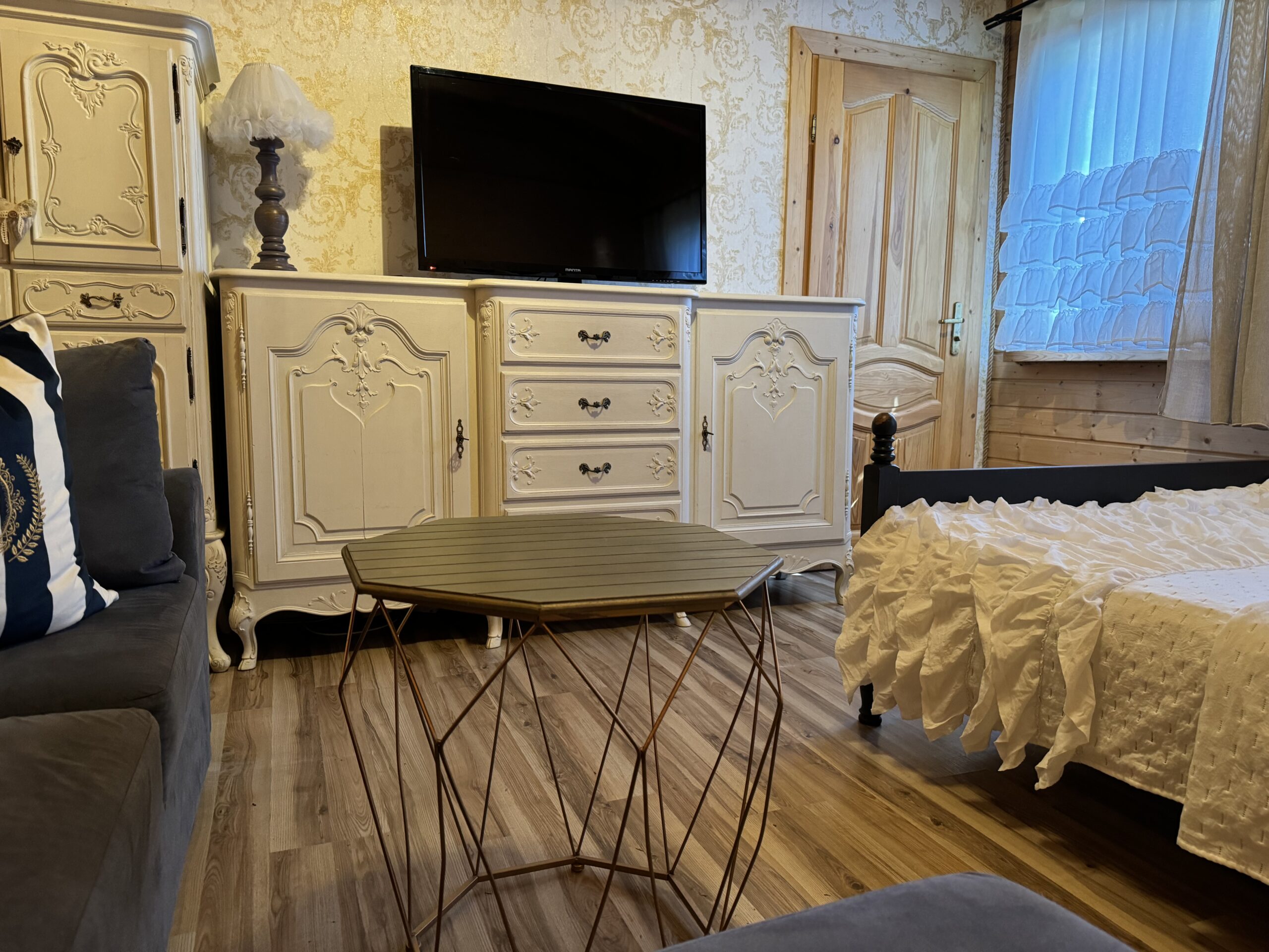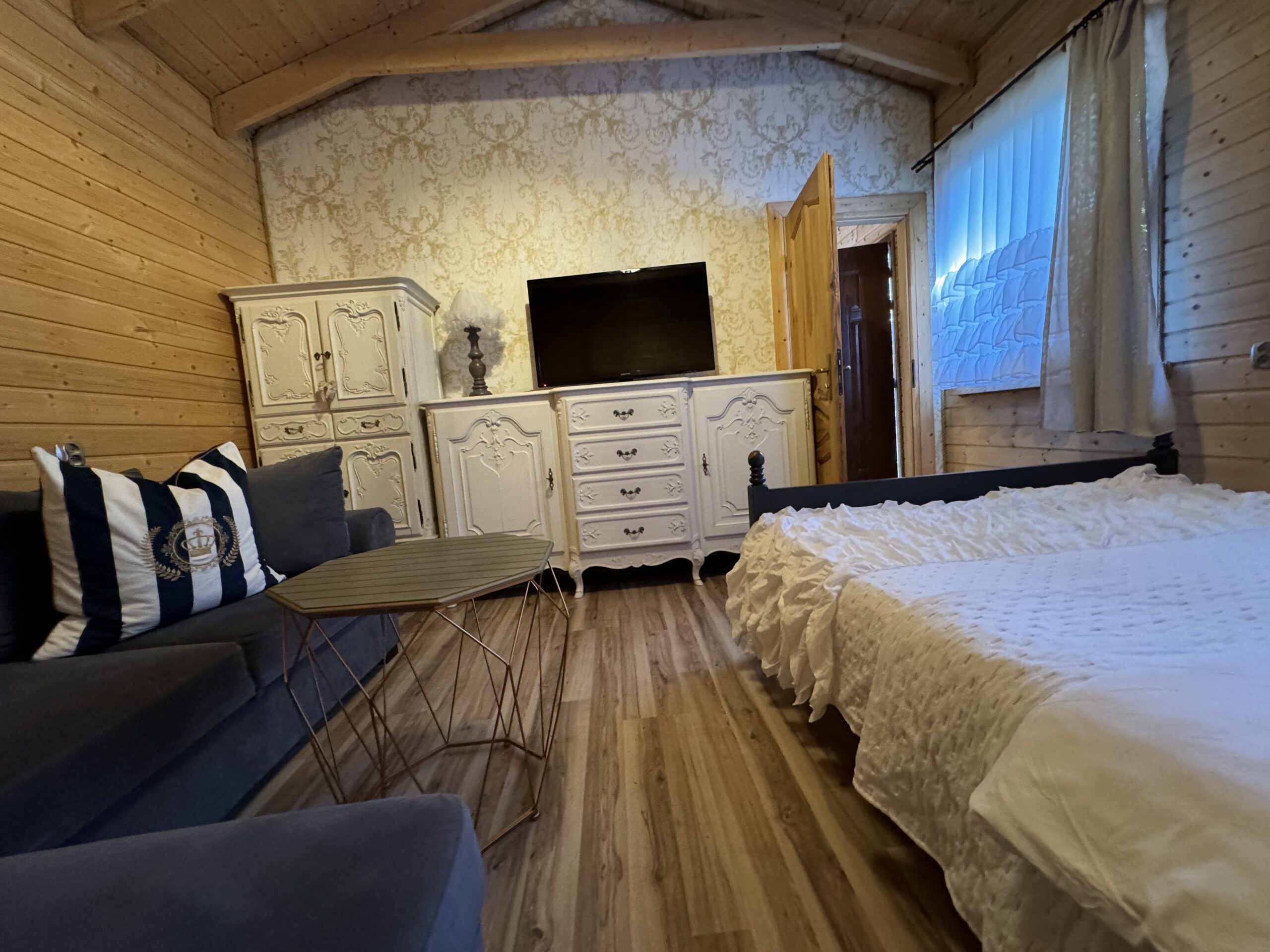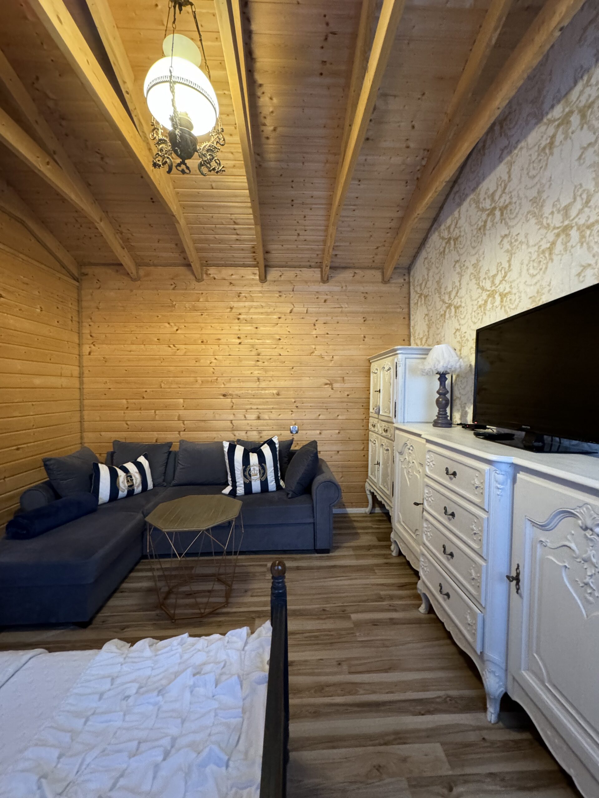 Wyposażenie rozszerzone o TV w każdym pokoju, mikrofalówka, toster, żelazko z deską do prasowania, grill, suszarka na pranie.