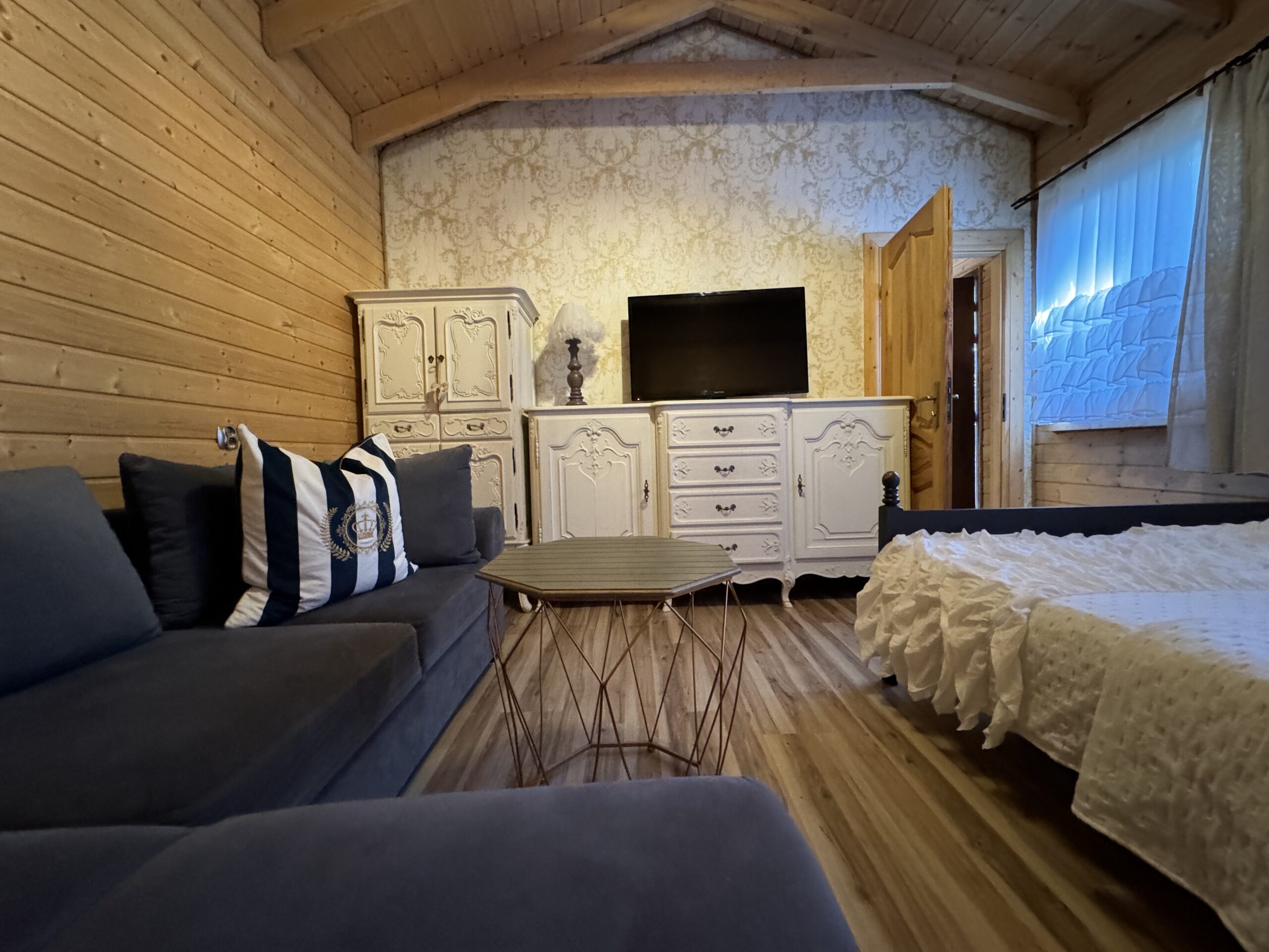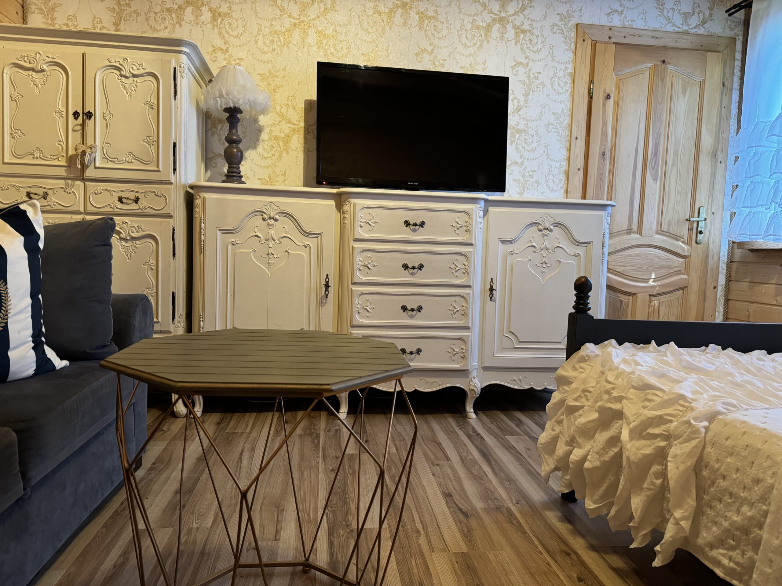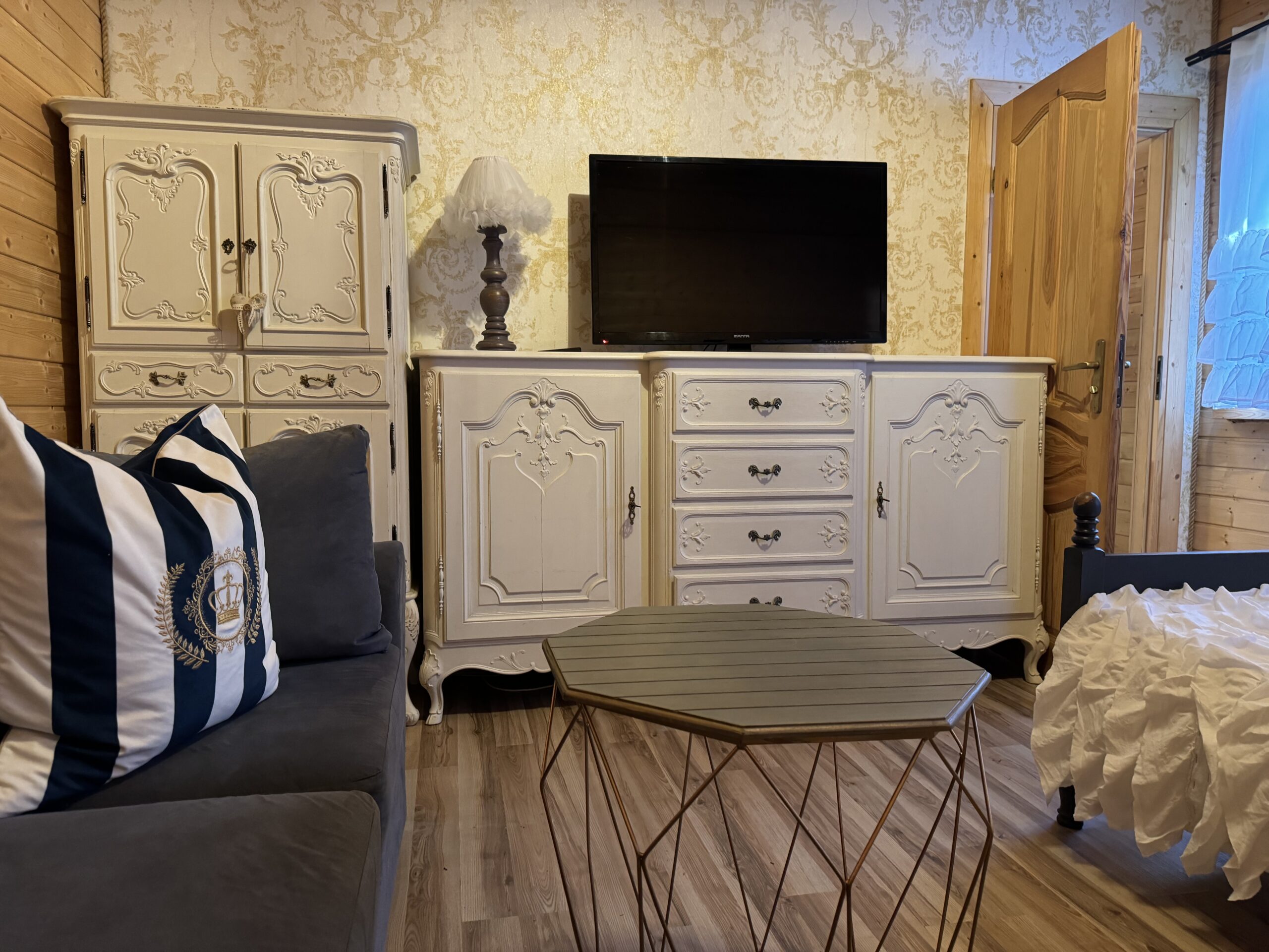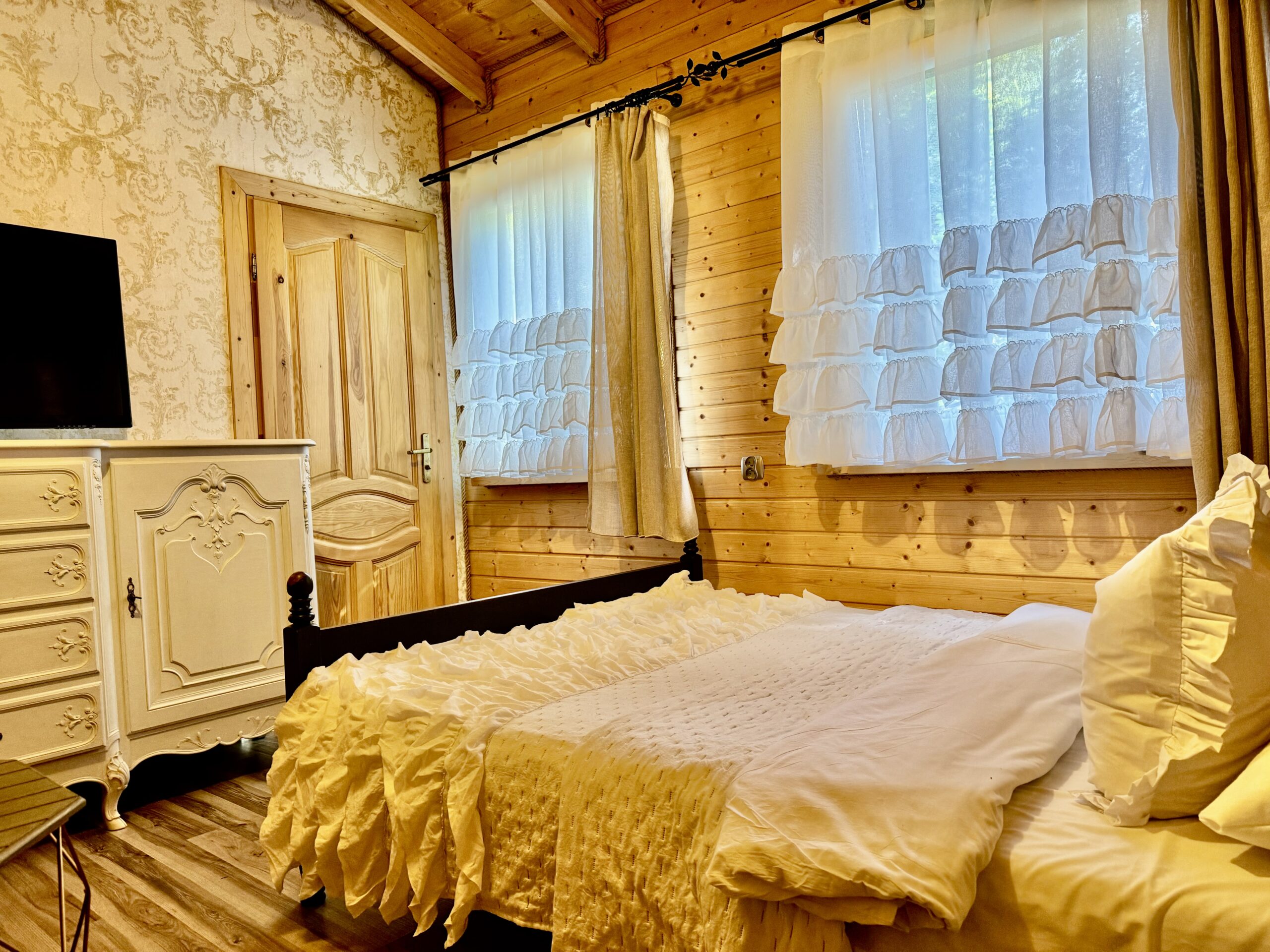 Wyposażenie rozszerzone o TV w każdym pokoju, mikrofalówka, toster, żelazko z deską do prasowania, grill, suszarka na pranie.