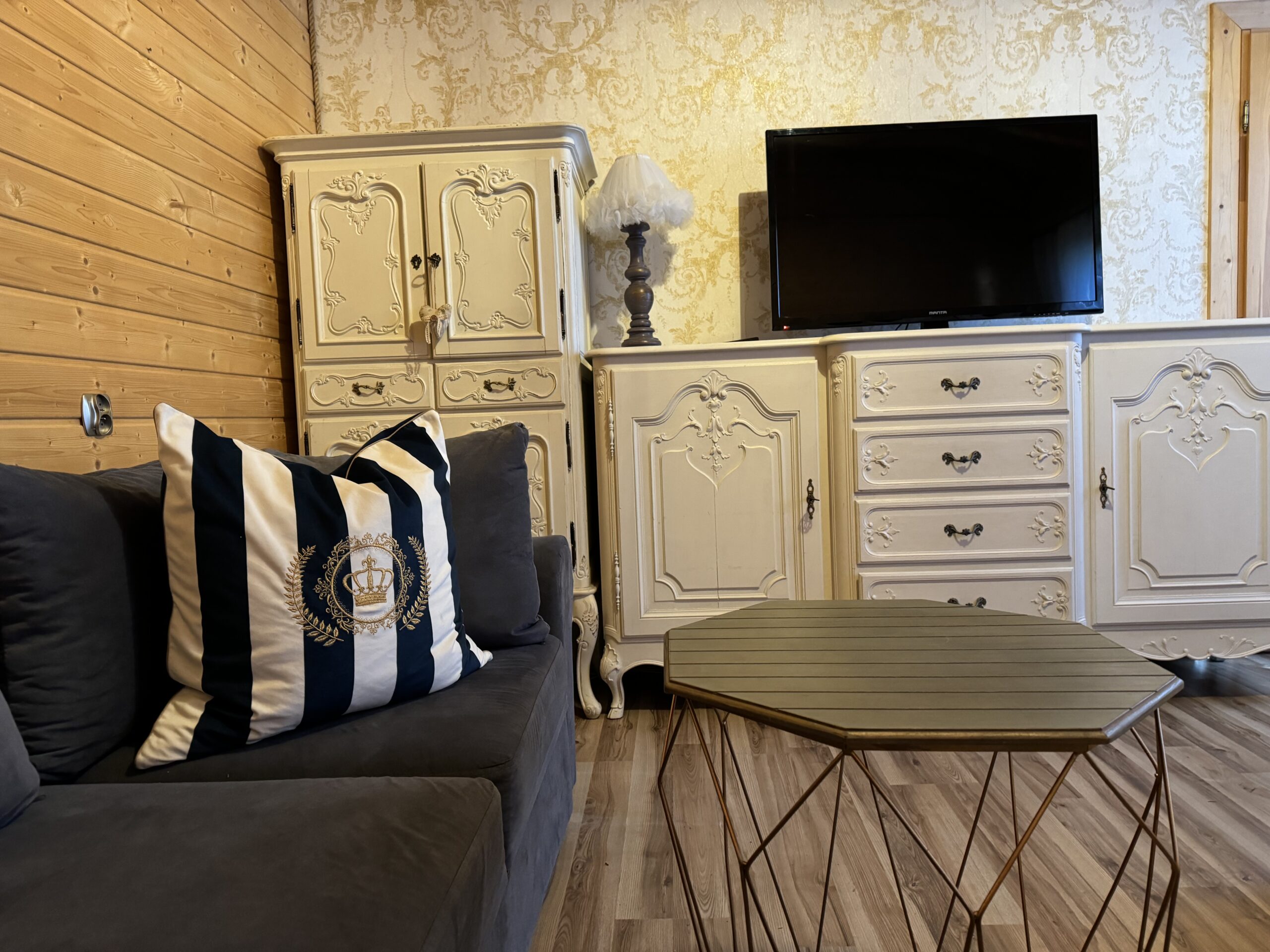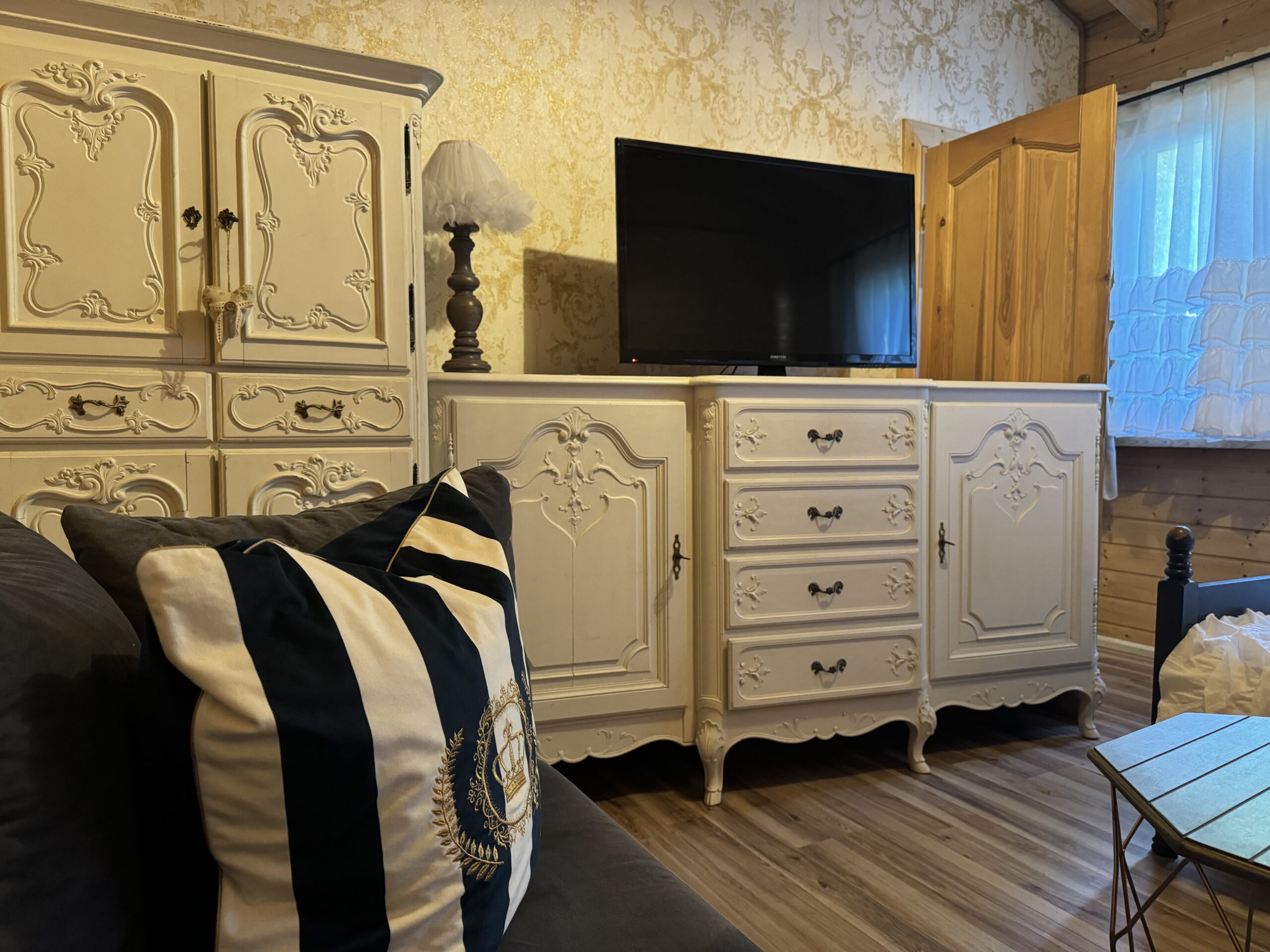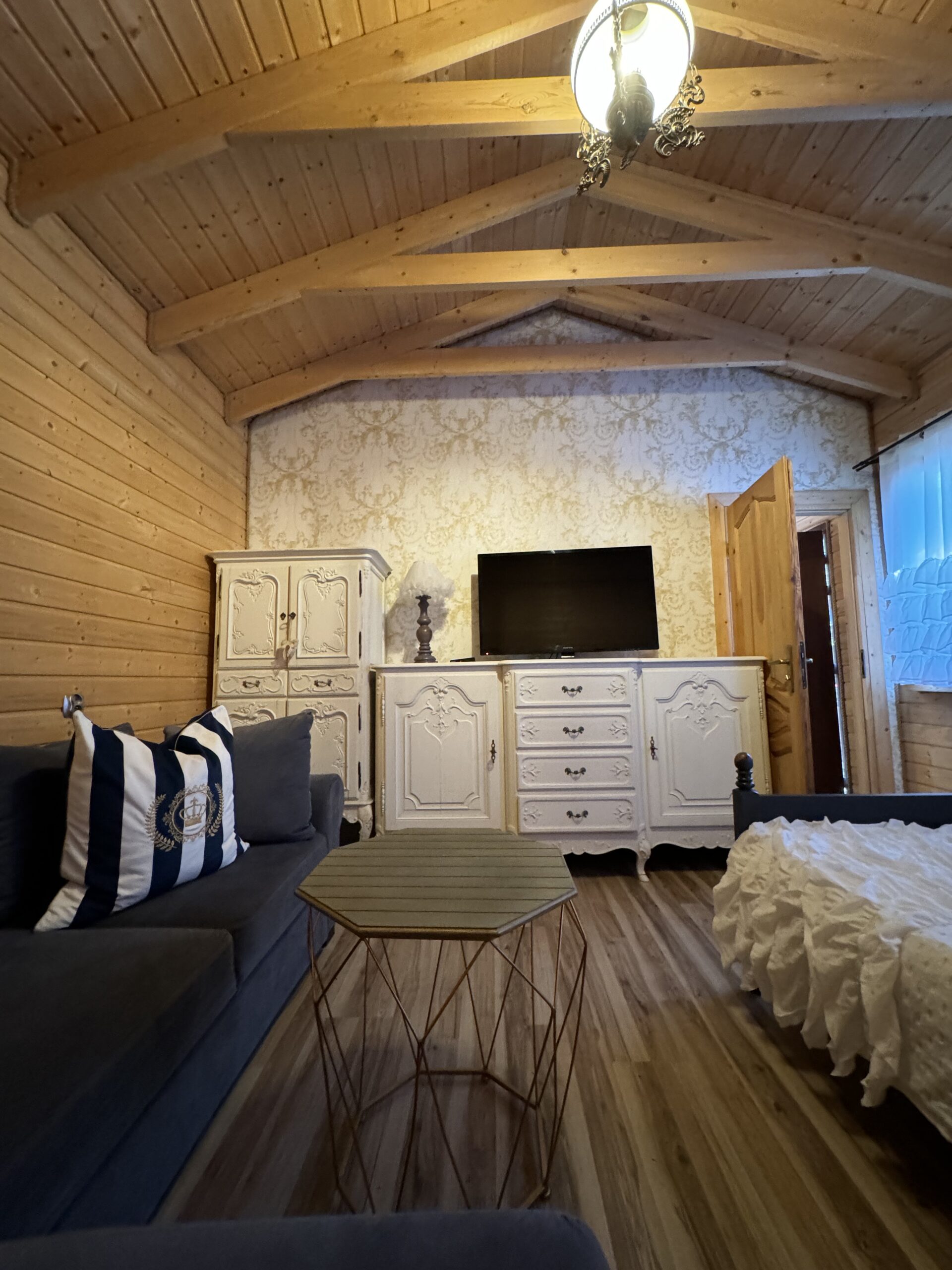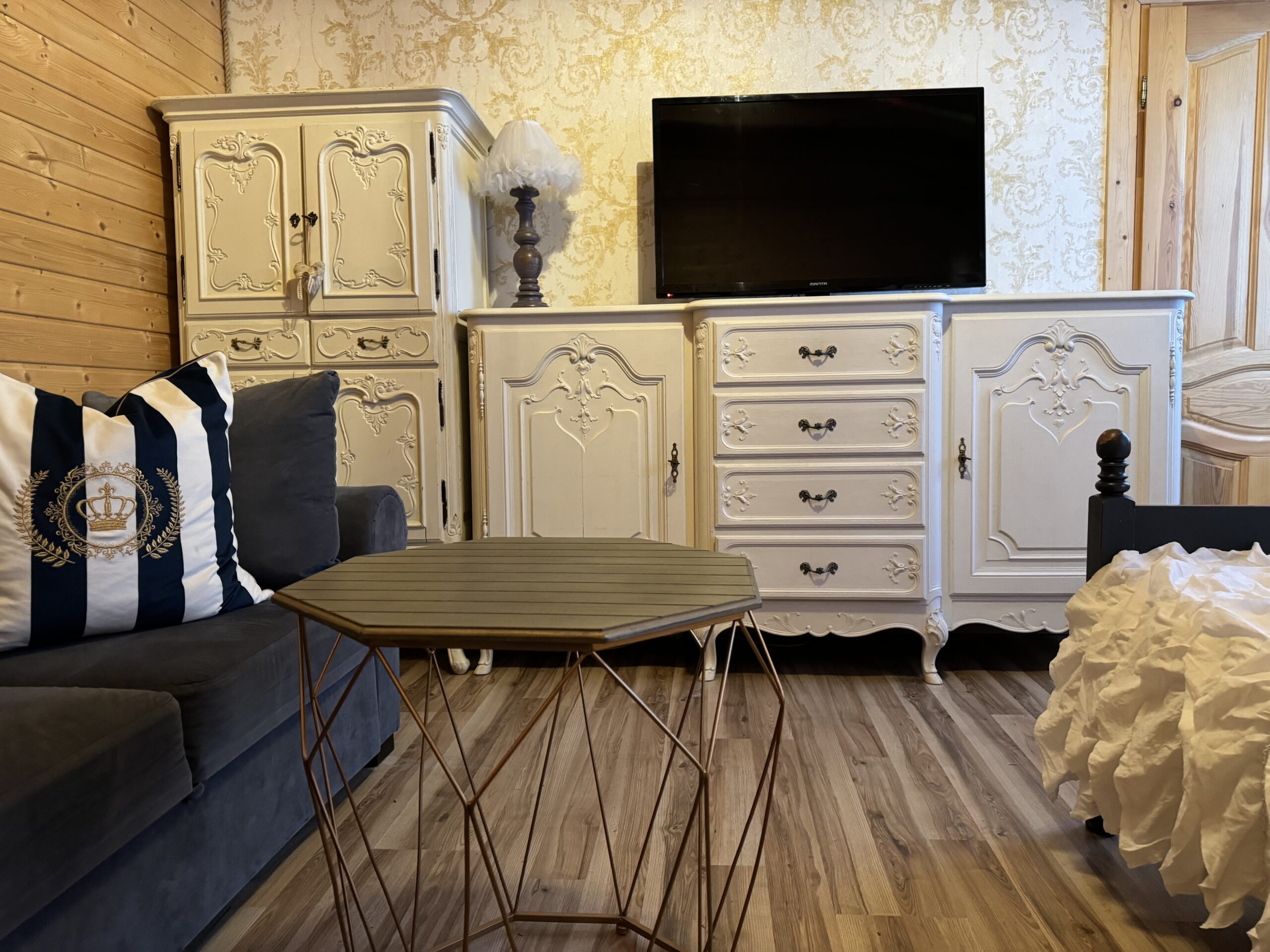 Wyposażenie rozszerzone o TV w każdym pokoju, mikrofalówka, toster, żelazko z deską do prasowania, grill, suszarka na pranie.