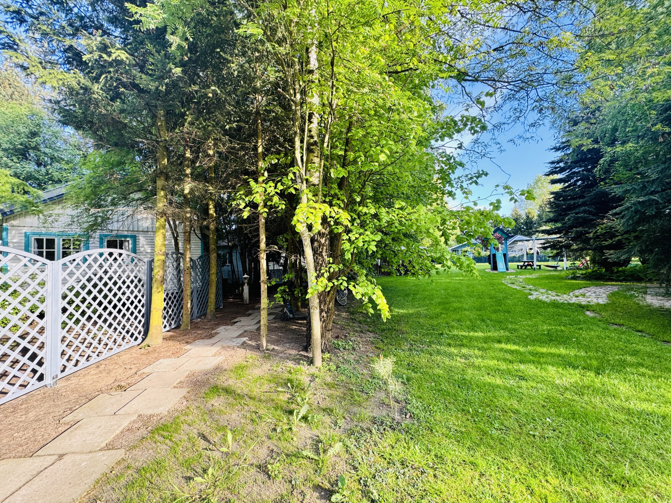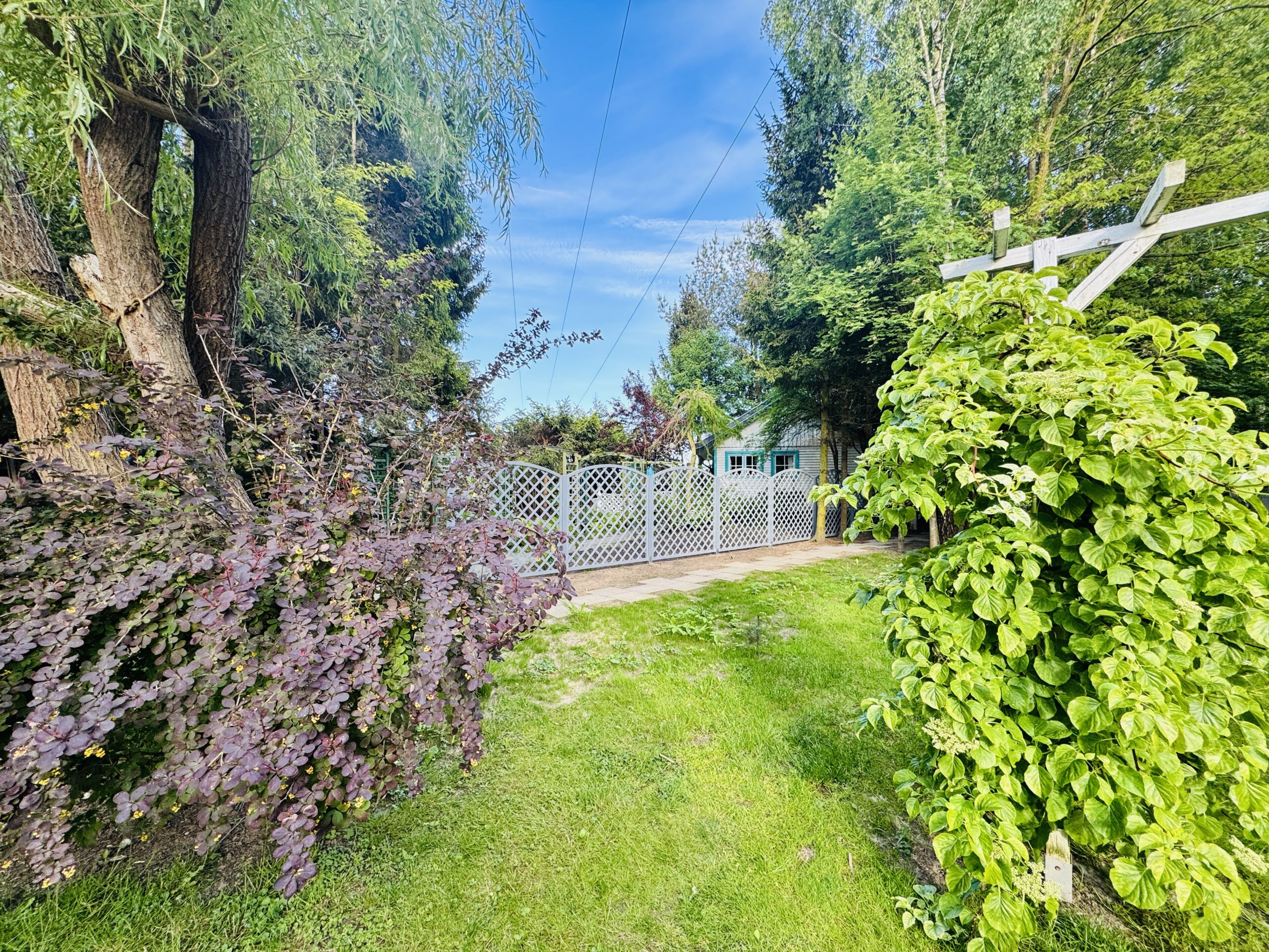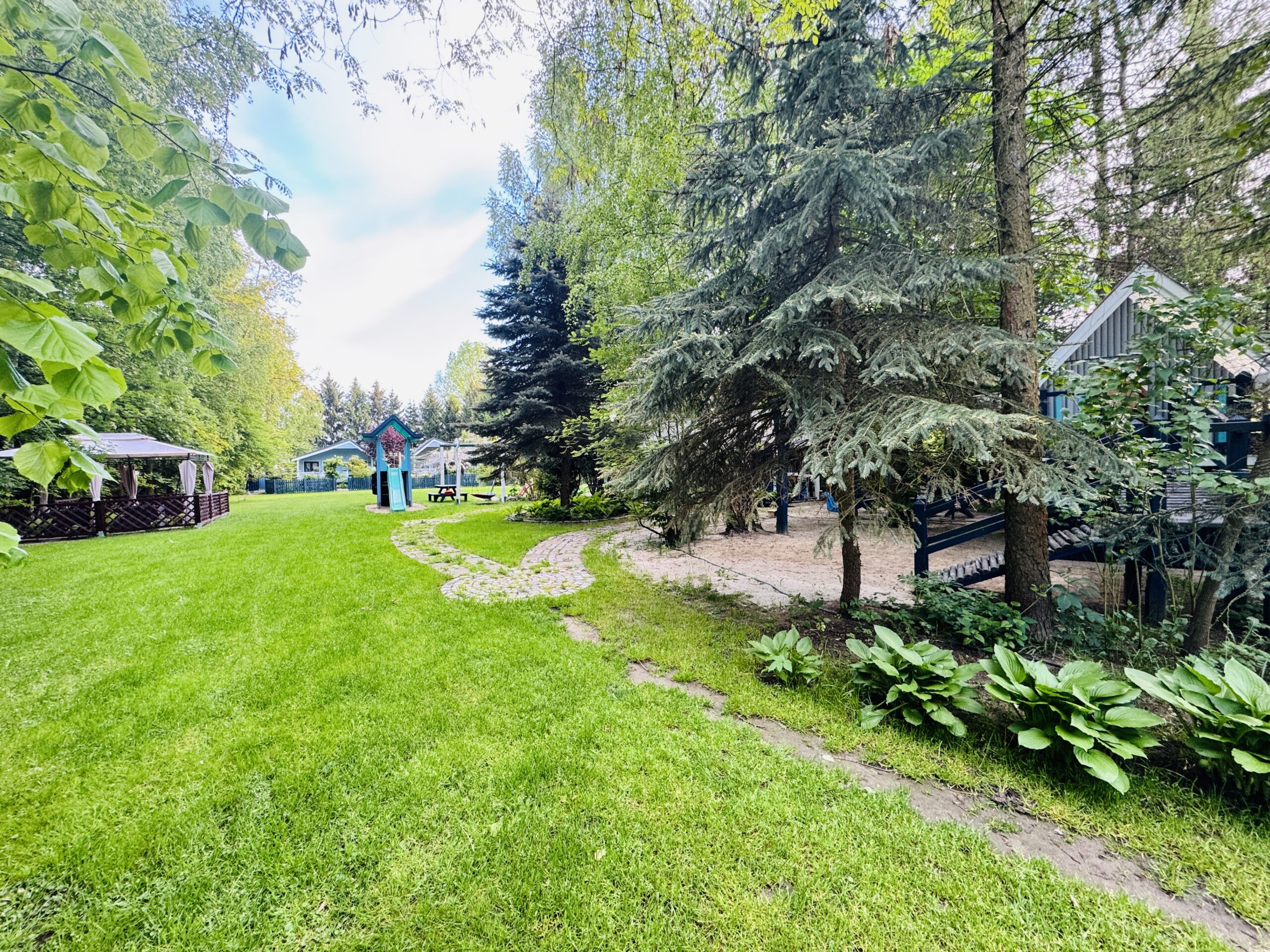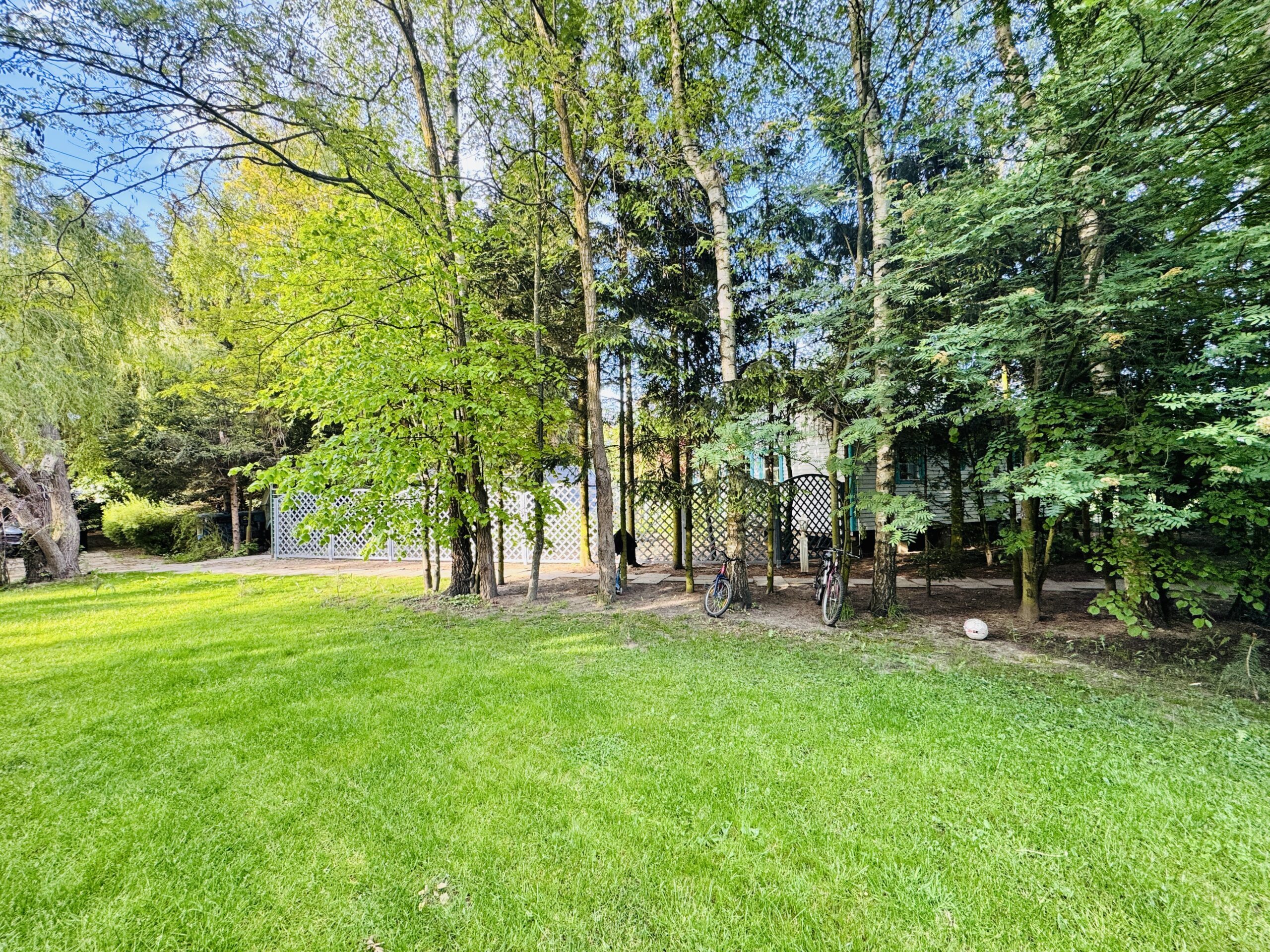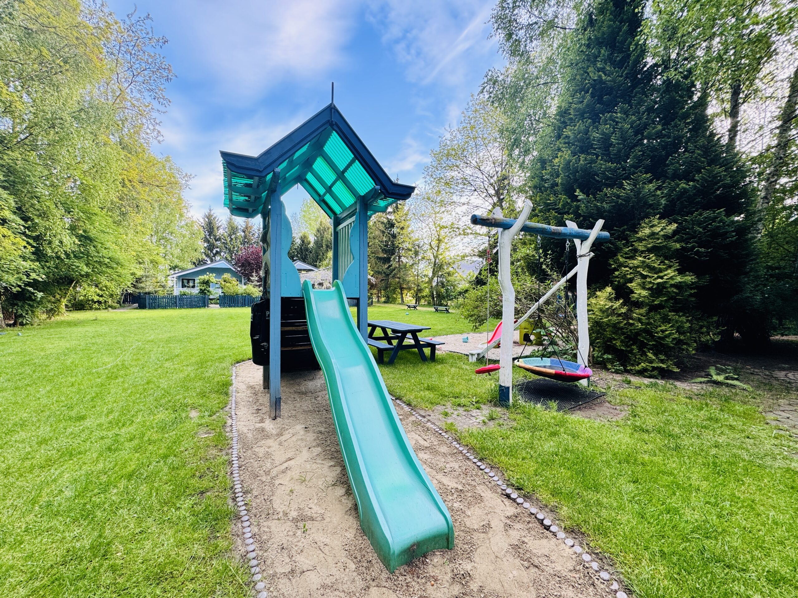 Dla każdej części domku do dyspozycji gości własny stół z parasolem w ogrodzie oraz miejsce do grillowania. Ukryty od pozostałej części ogrodu przez oddzielenie zielenią.