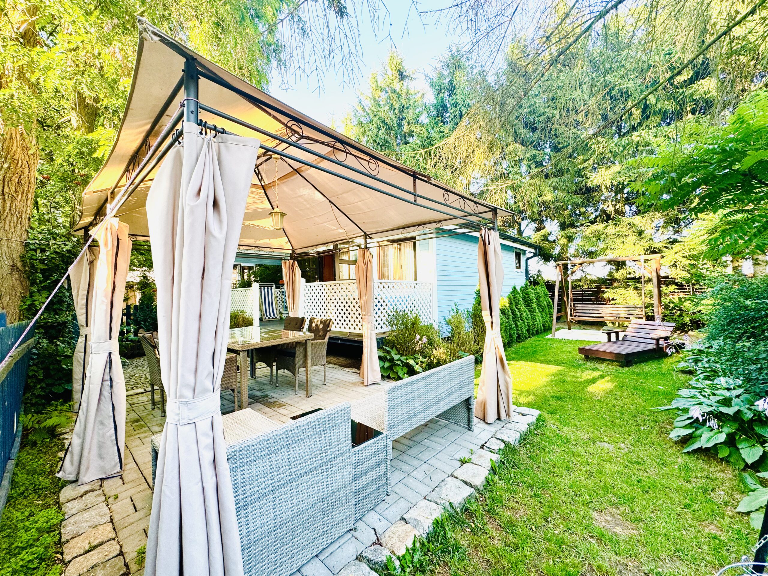 Odkryj domek „Prowansja II” na ośrodku „Zielono Mi” w Stegnie, gdzie mistyczna enklawa romantyzmu czeka, by otulić Cię swoim urokiem. Ten wyjątkowy domek, osadzony w sercu malowniczej oazy, zaprasza do świata, gdzie słoneczne promienie delikatnie przenikają przez okna, tworząc sielską atmosferę pełną ciepła i spokoju.