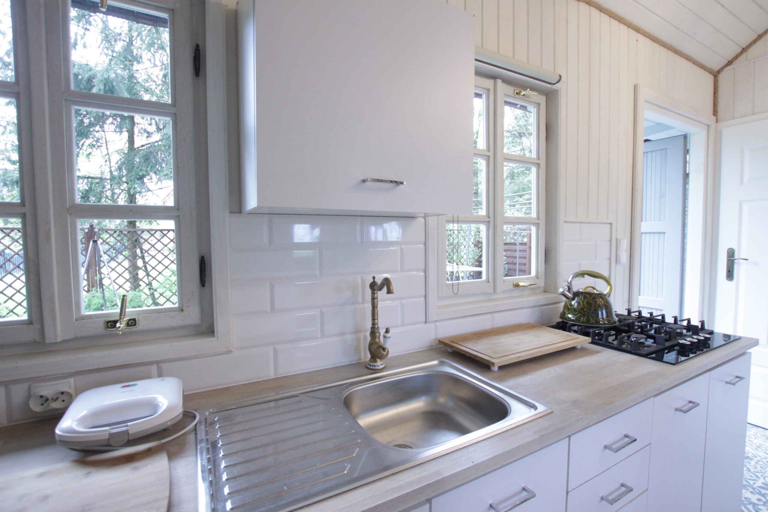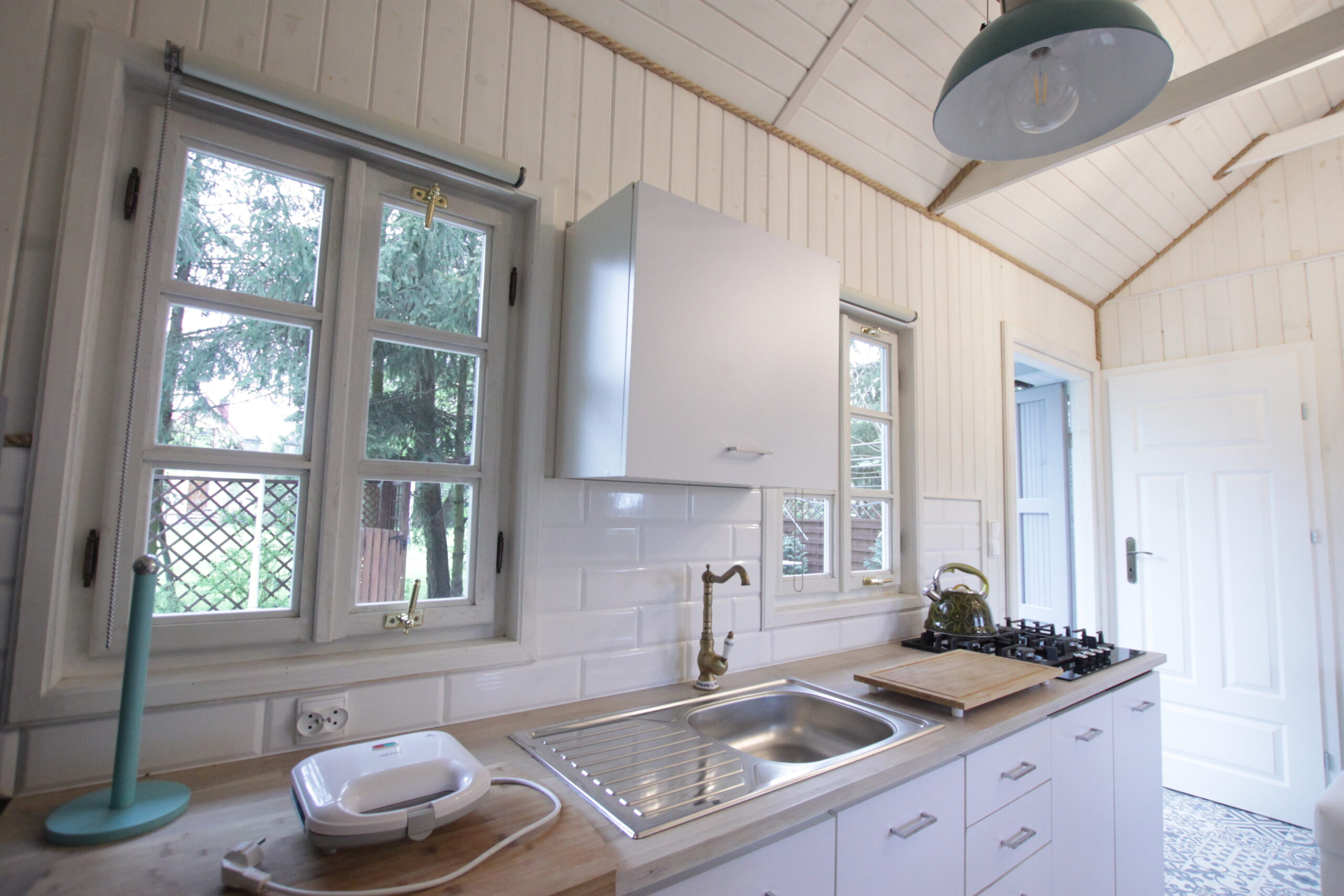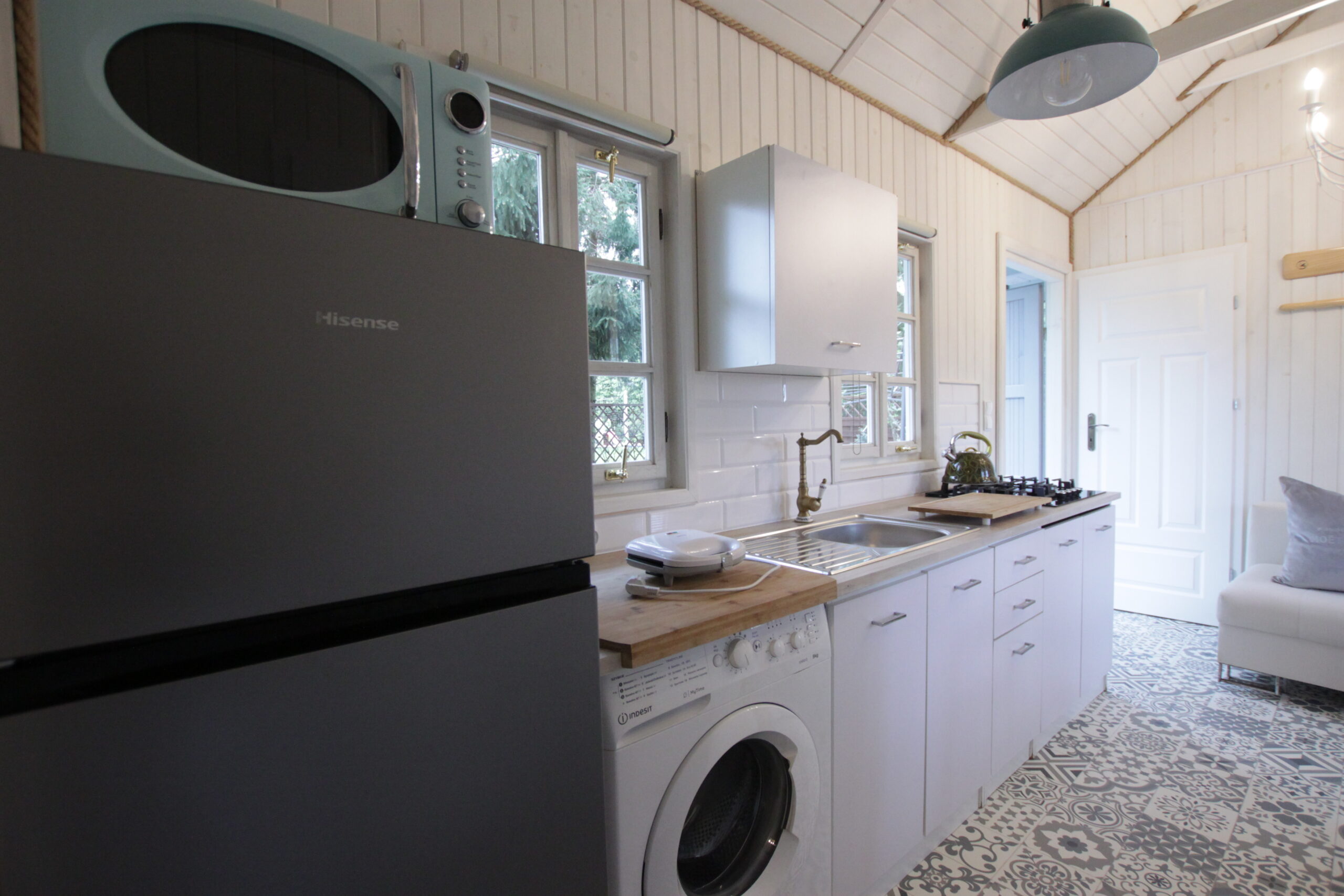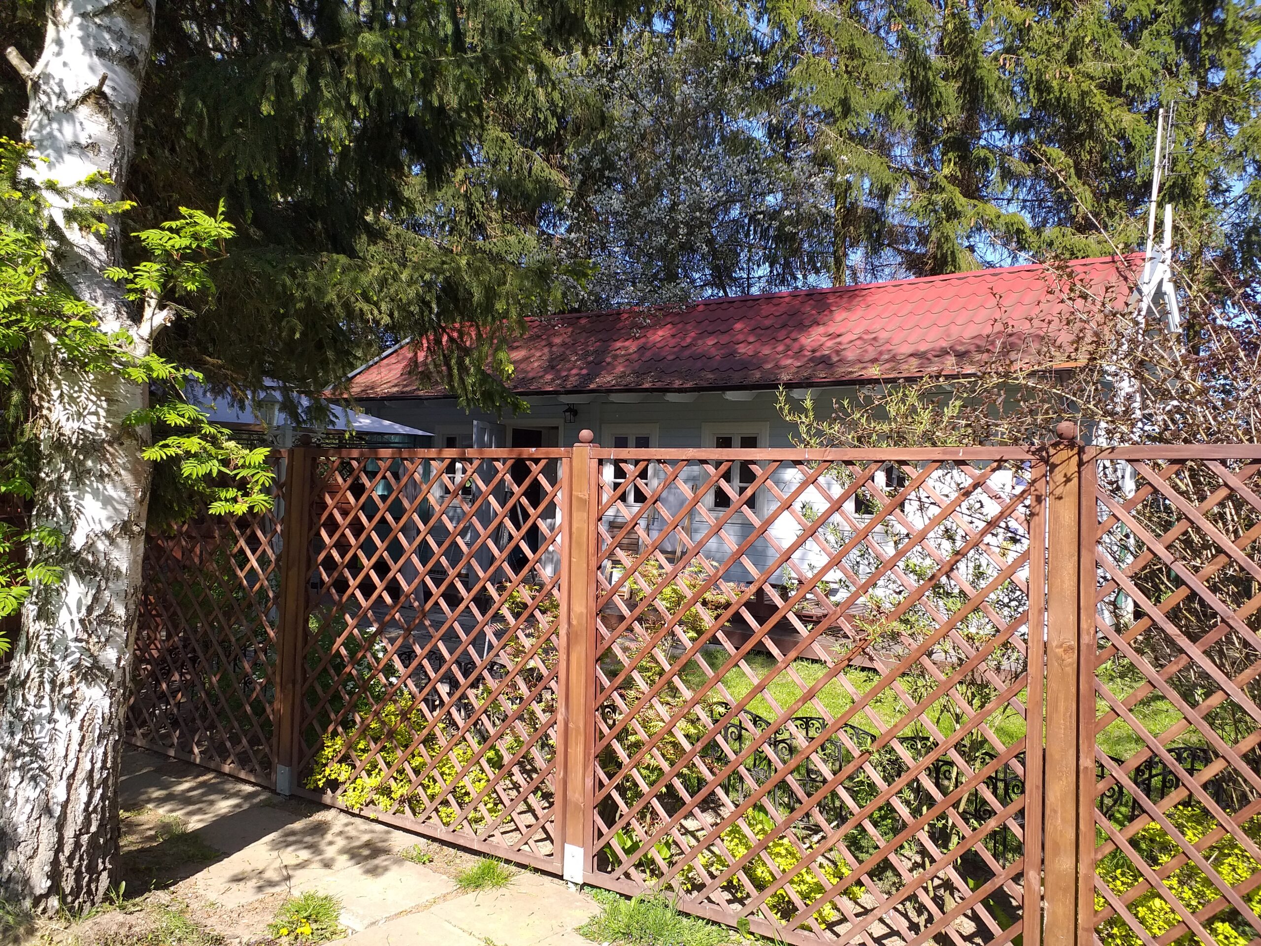Kuchnia w pełni wyposażona. Łazienka z prysznicem, pralka. Otoczenie pełne bujnej zieleni w zacisznym zakątku ogrodu. Szczególnie dobrze dostosowany do pobytu z dużym psem!