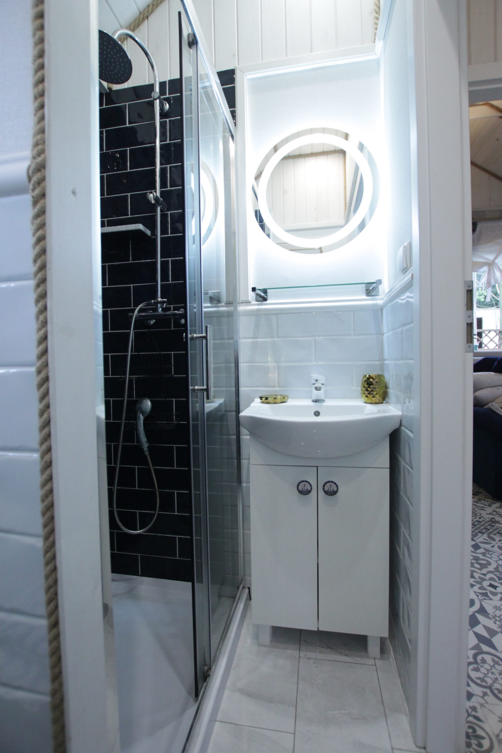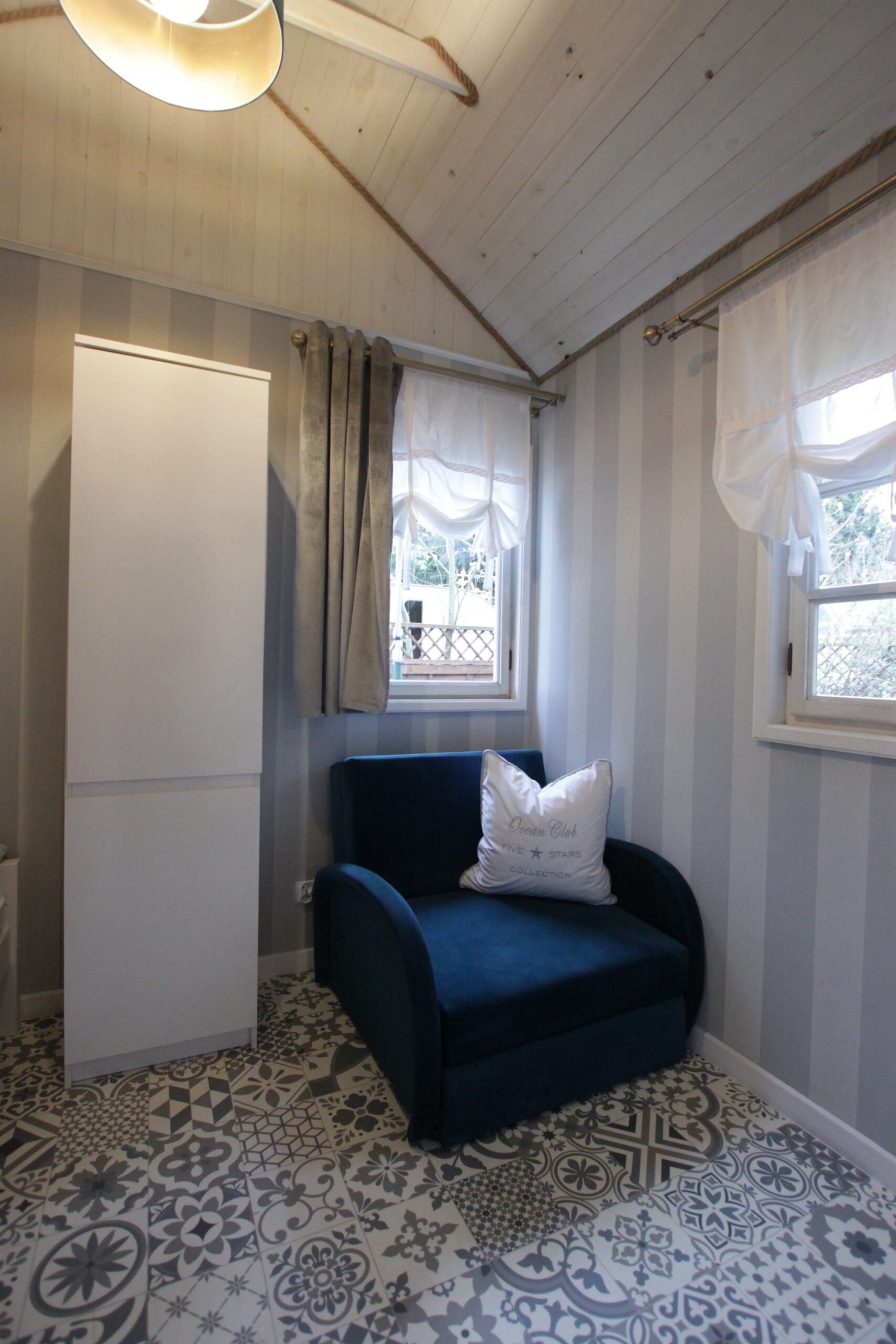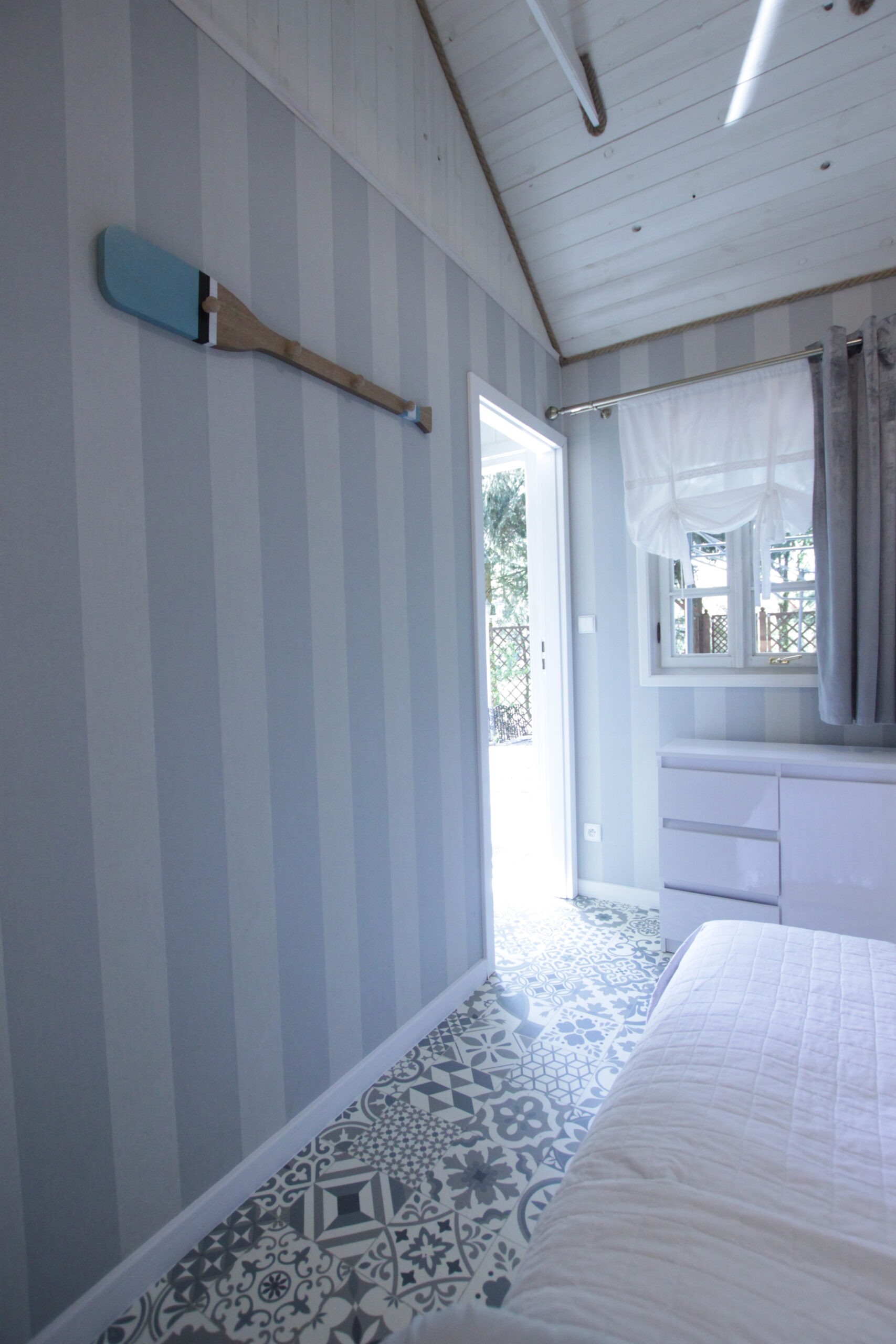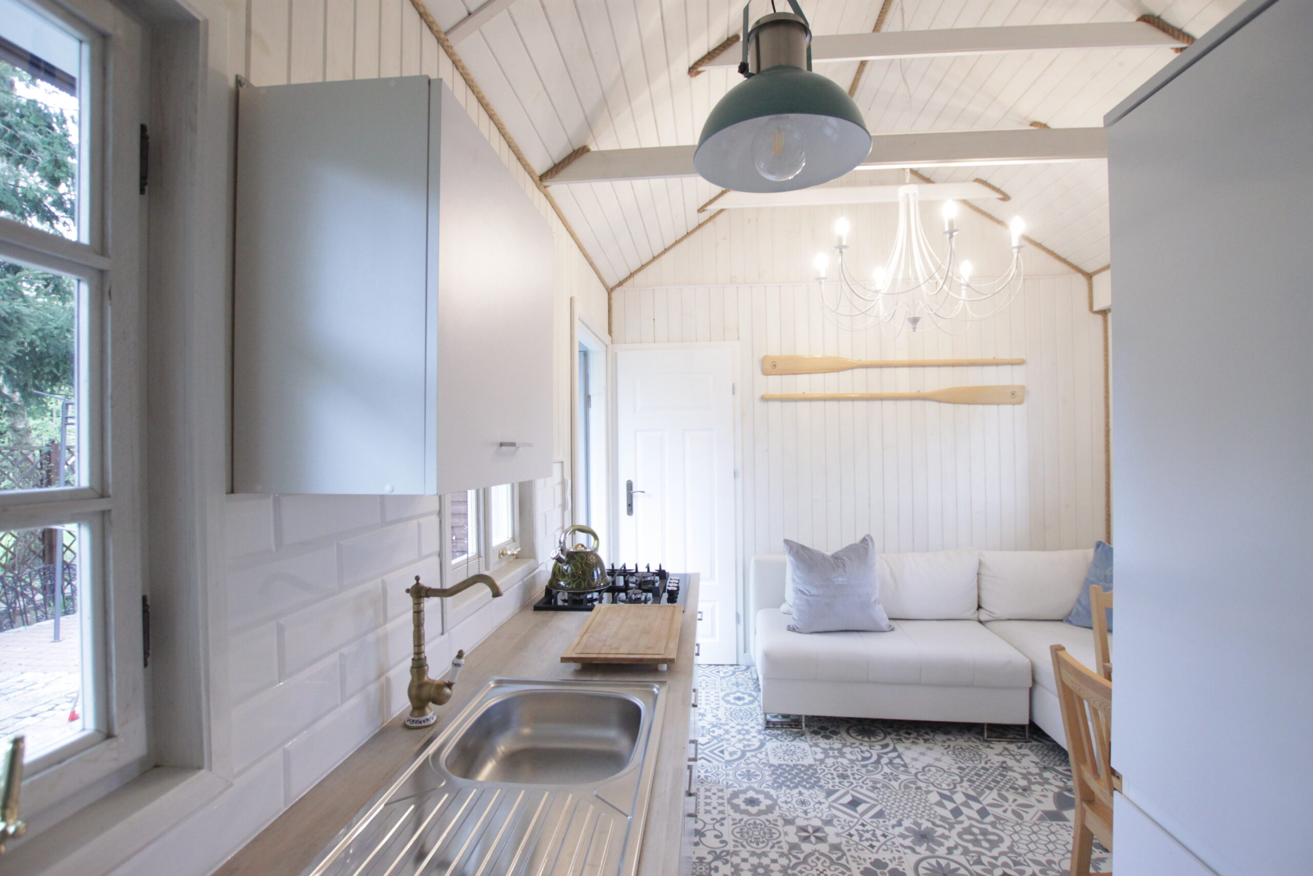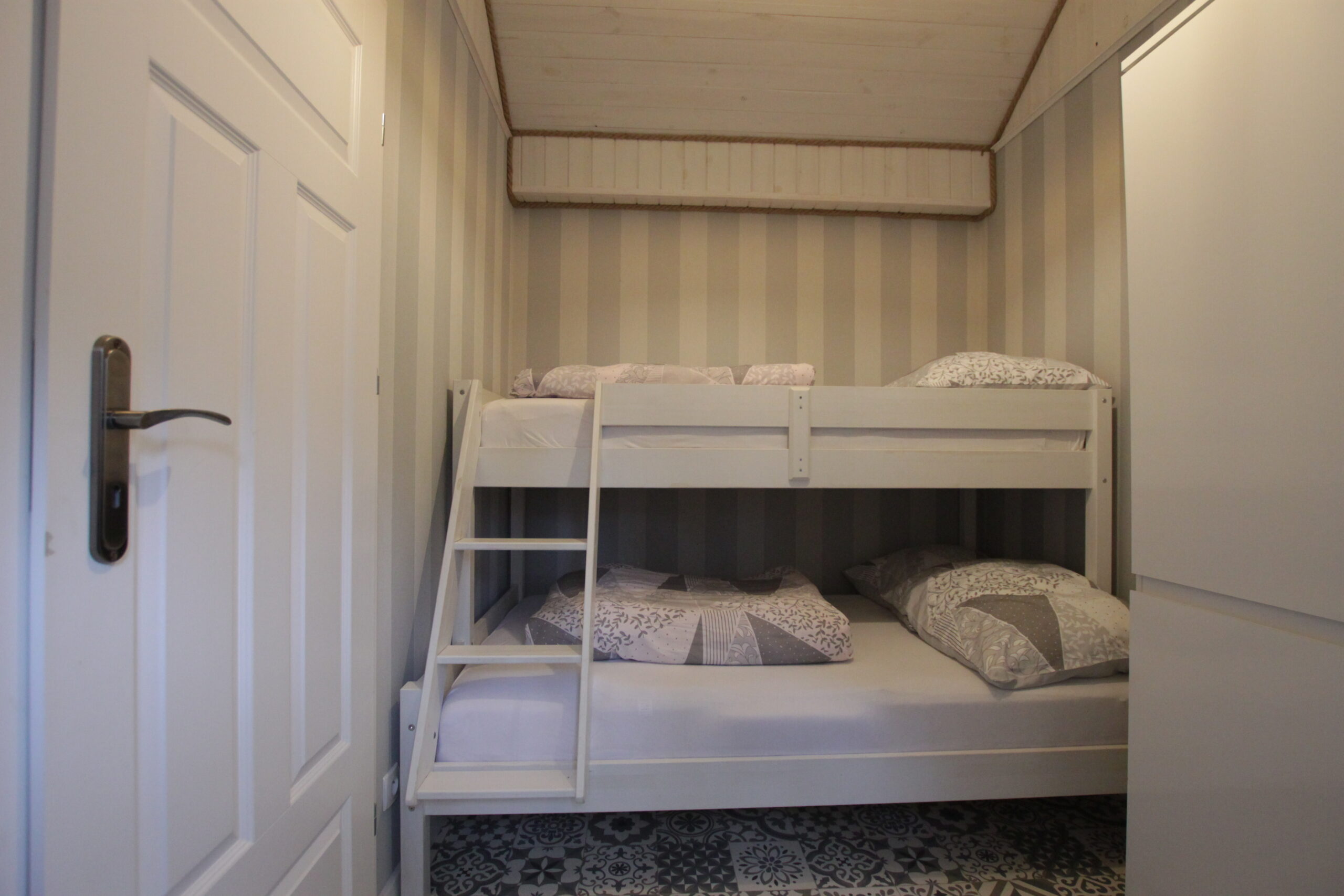 W domku są dwie sypialnie: Jedna – 2-osobowa z dużym łożem małżeńskim, druga – 3 osobowa z możliwością spania 1 dodatkowej osoby na rozkładanej sofce. Salonik z aneksem kuchennym pełniący funkcję pomieszczenia do dziennego pobytu oraz możliwość noclegu dla kolejnych 2 osób – kanapa narożna z funkcja spania.